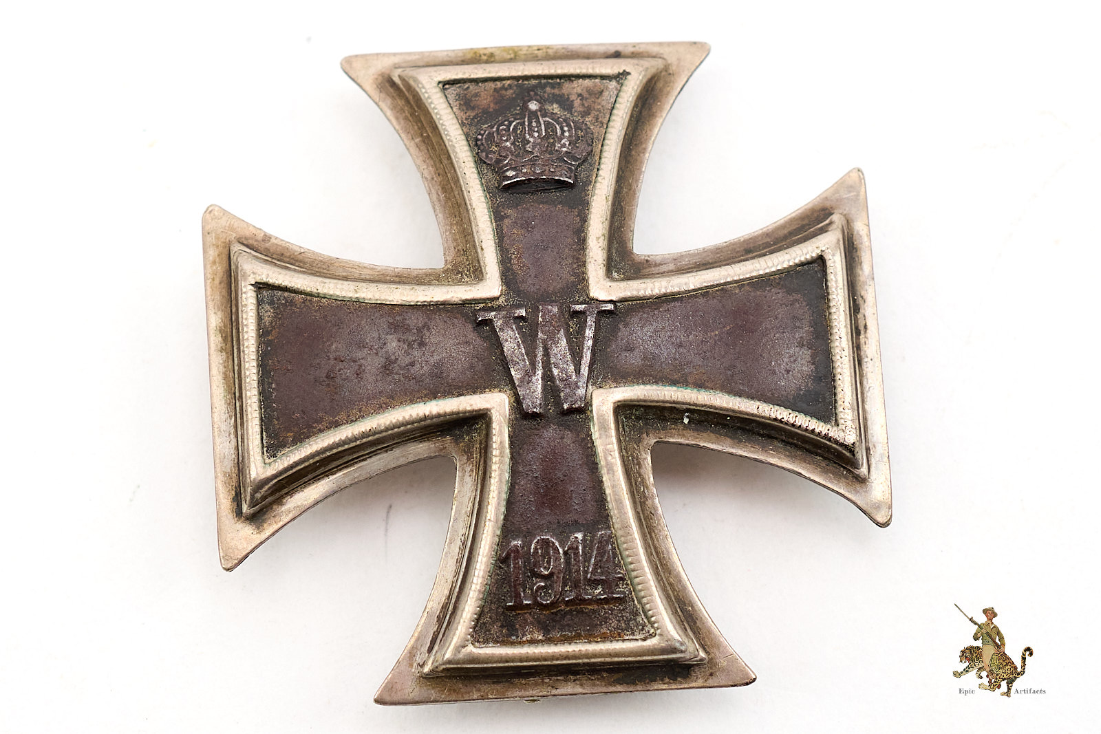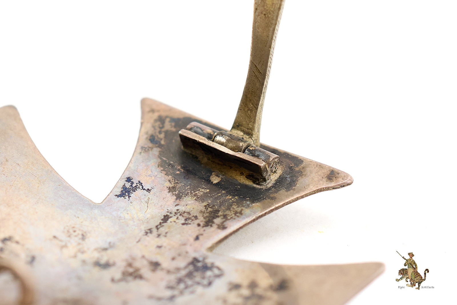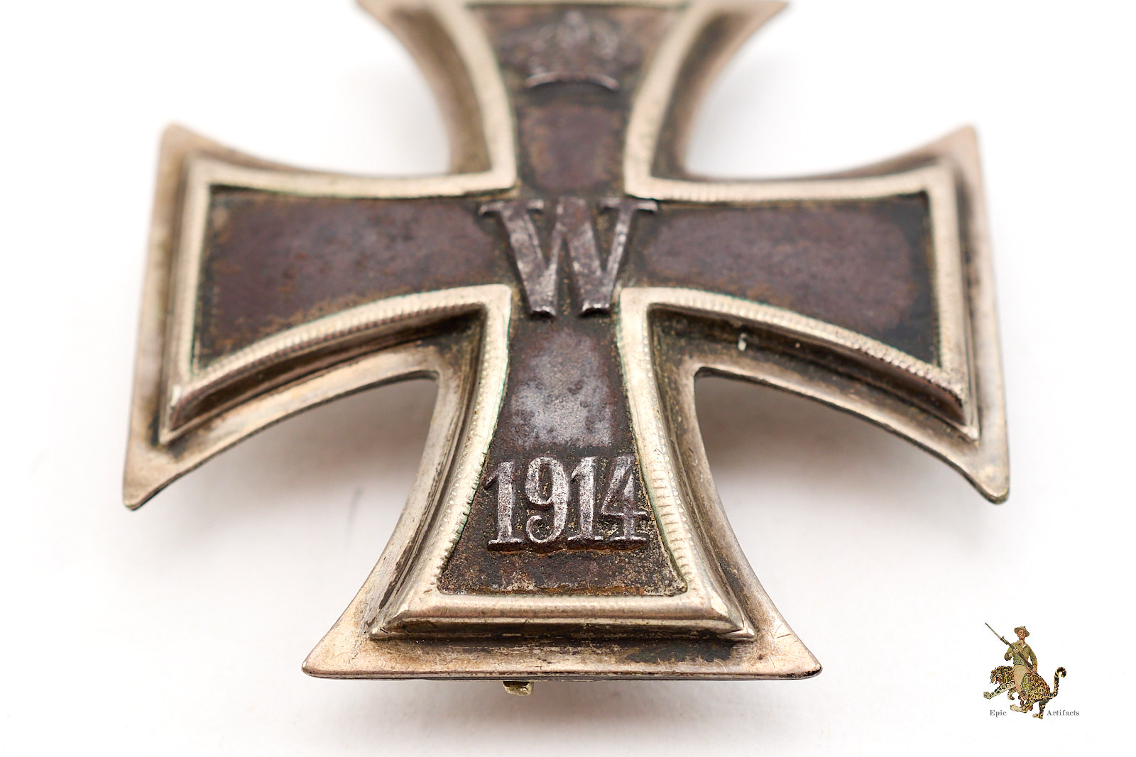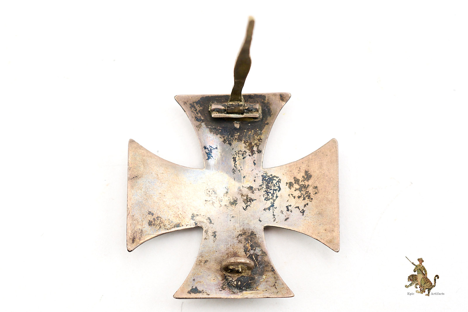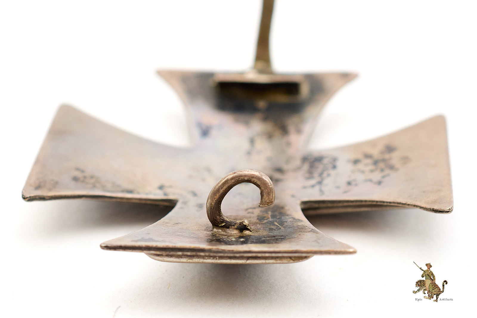 Product Description: A desirable original 1914 EK1 Imperial Iron Cross 1st Class – 800, exhibiting classic construction features including a nice vaulted appearance. The obverse retains almost all of its original black paint, with visible wear consistent with age and honest handling. The silver frame and beadwork display a pleasing, even patina, lending the piece a distinguished period appearance.
