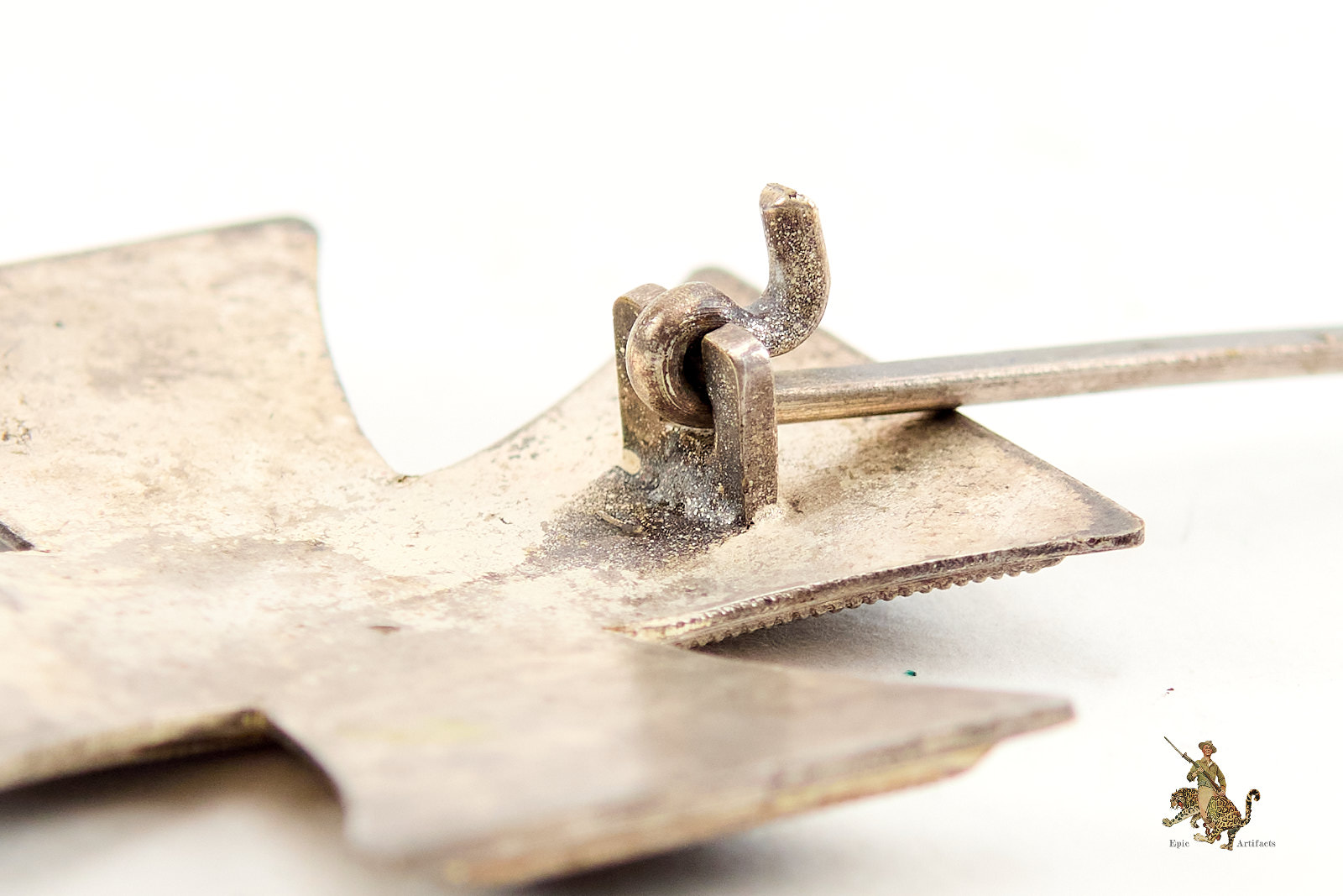 Unmarked, as often encountered, the piece is nevertheless clearly attributable to Petz & Lorenz by its distinctive construction style and correct period hardware. The reverse exhibits pleasing, even toning to the silvered surface and is fitted with the characteristic half-round wire pin, sheet-metal hinge, and clasp, all intact and well preserved. Combining aesthetic appeal, assured attribution, and historical significance, this 1914 Iron Cross 1st Class – Petz & Lorenz is offered in excellent overall condition and represents a compelling acquisition for the discerning collector.