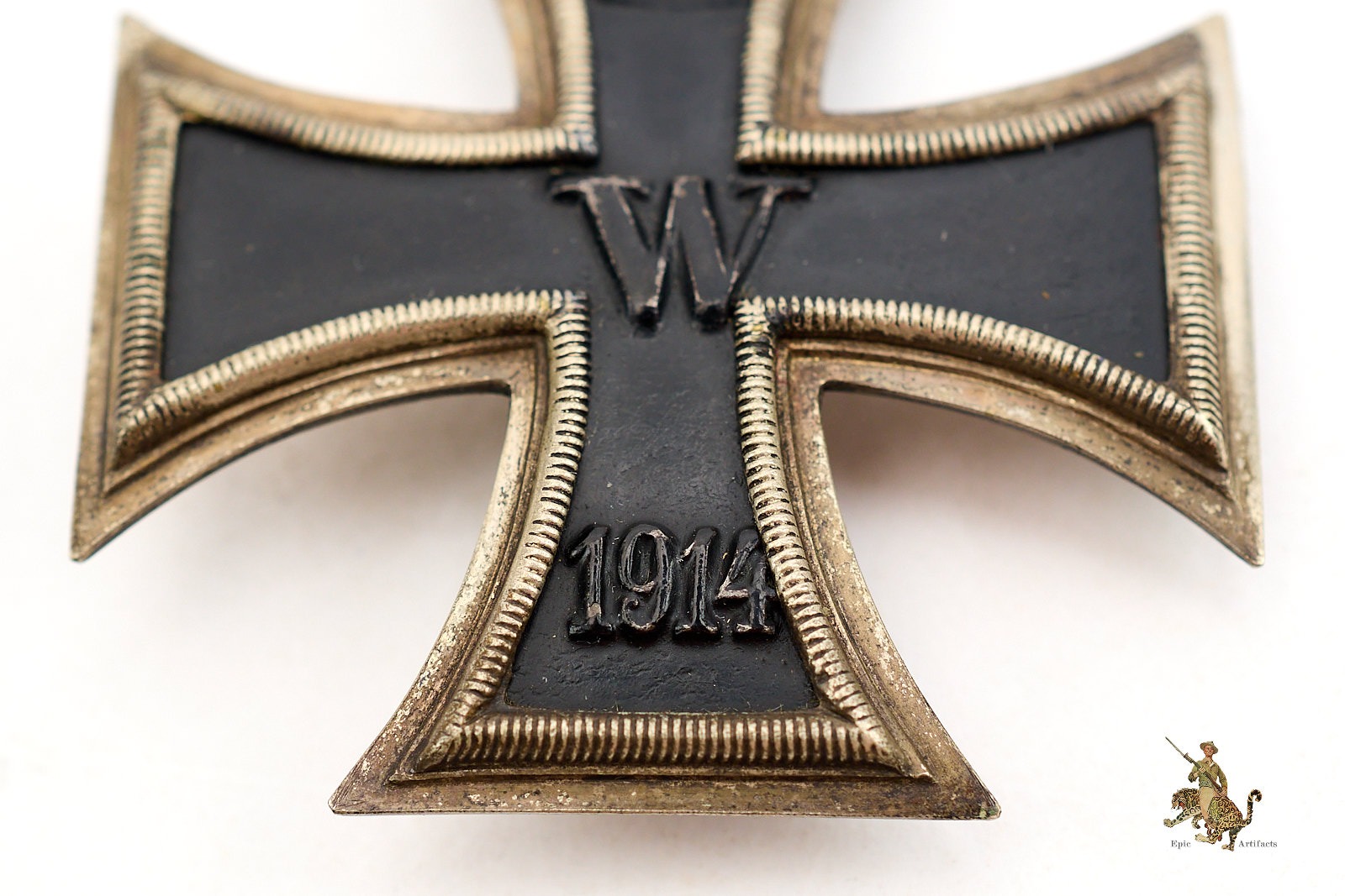 Historical Description: There is no more iconic German military award than the Iron Cross. The long history of this order began during the Napoleonic Wars. King Friedrich Wilhelm III of Prussia instituted the “Eisernes Kreuz” (Iron Cross) in March of 1813. The award criteria changed somewhat with time, but generally speaking, Iron Crosses could be awarded for individual acts of bravery, or for leadership achievements on the battlefield. The design was created by a Karl Friedrich Schinkel, his choice of the black cross with silver outline was derived from the heraldic emblem of the Teutonic Knights. There were a number of different type and grades of Iron Cross awards throughout its long history, but the basic details of the most widely awarded grades: The Iron Cross 1st Class and Iron Cross 2nd Class- remained the same. The first-class award was a breast badge, with fittings on the reverse to allow it to be worn on the uniform. These fittings varied widely over time and from maker to maker, and could be a simple in and catch, a screw post and retaining disc, or more elaborate setups. The second-class award was suspended from a ribbon, originally in the Prussian colors of black and white, later in the Reich colors of black, red and white. On the original versions of these crosses, in 1813, the front of the iron core of each grade was bare, and only the second-class award had ornamentation: a crown over the initials “FW” representing the King, a sprig of oak leaves, and the date 1813. The core was redesigned in 1870, when the cross was re-instituted during the Franco-Prussian War. The reverse ornamentation on the Iron Cross 2nd Class remained the same, but the front of the core on both grades now bore another crown, a “W” representing Kaiser Wilhelm, and the date 1870. This pattern repeated again when the cross was reinstituted for WWI- everything stayed the same, only the date 1870 was replaced with 1914. The final reinstitution of the cross came in 1939. For this version, the front of the core for both grades bore a swastika and the date 1939. The oak leaves, crown and royal initials were removed from the reverse, with only the date 1813 remaining as a reminder of the legacy of this award. In WWII, hundreds of thousands of Iron Cross First Class awards were bestowed, and four and a half million Iron Cross Second Class awards. Iron Crosses were made by a large number of authorized manufacturers Some variants of these awards were mass produced in huge numbers. Others were made in very limited quantities.