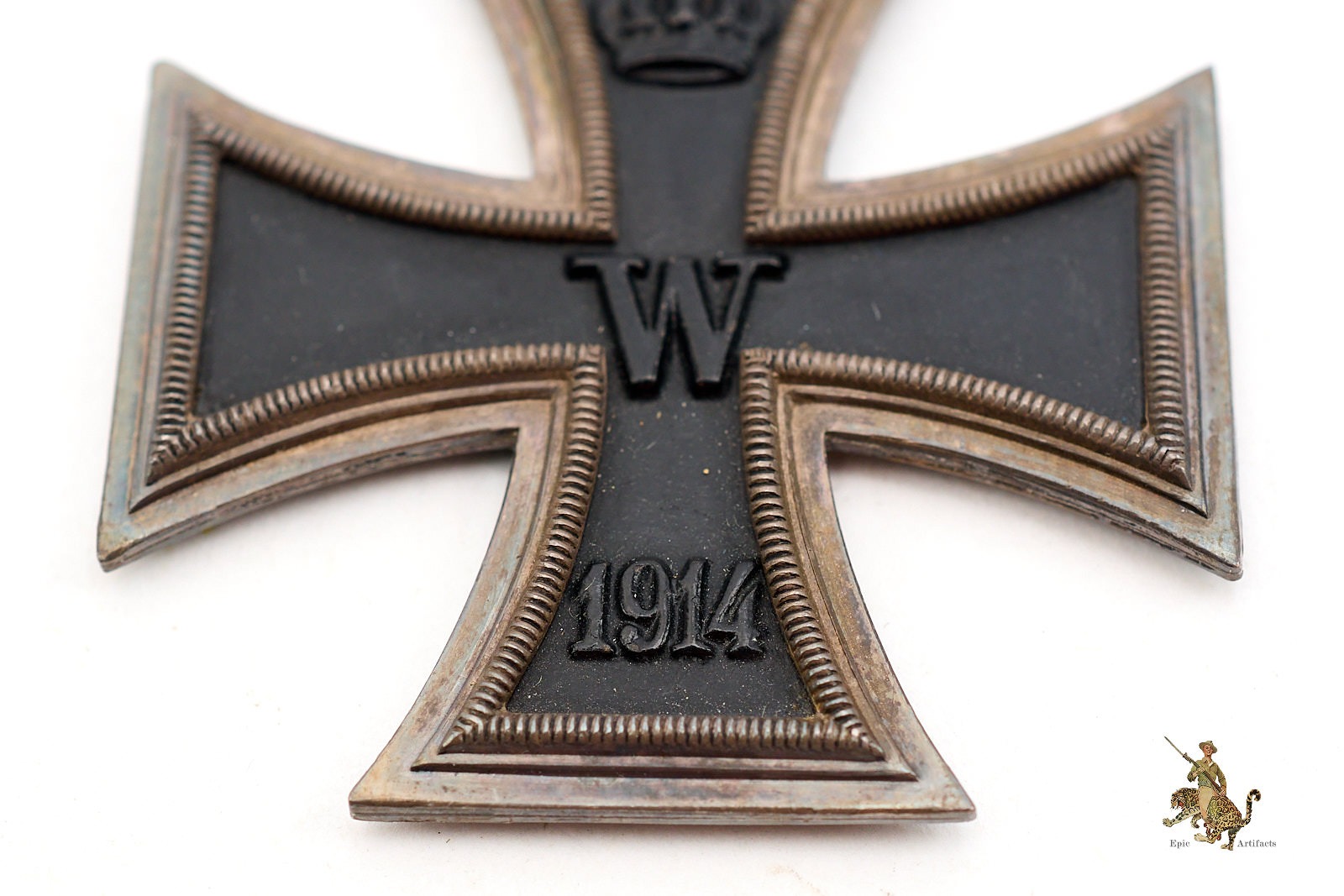 Historical Description: There is no more iconic German military award than the Iron Cross. The long history of this order began during the Napoleonic Wars. King Friedrich Wilhelm III of Prussia instituted the “Eisernes Kreuz” (Iron Cross) in March of 1813. The award criteria changed somewhat with time, but generally speaking, Iron Crosses could be awarded for individual acts of bravery, or for leadership achievements on the battlefield. The design was created by a Karl Friedrich Schinkel, his choice of the black cross with silver outline was derived from the heraldic emblem of the Teutonic Knights. There were a number of different type and grades of Iron Cross awards throughout its long history, but the basic details of the most widely awarded grades: The Iron Cross 1st Class and Iron Cross 2nd Class- remained the same. The first-class award was a breast badge, with fittings on the reverse to allow it to be worn on the uniform. These fittings varied widely over time and from maker to maker, and could be a simple in and catch, a screw post and retaining disc, or more elaborate setups. The second-class award was suspended from a ribbon, originally in the Prussian colors of black and white, later in the Reich colors of black, red and white. On the original versions of these crosses, in 1813, the front of the iron core of each grade was bare, and only the second-class award had ornamentation: a crown over the initials “FW” representing the King, a sprig of oak leaves, and the date 1813. The core was redesigned in 1870, when the cross was re-instituted during the Franco-Prussian War. The reverse ornamentation on the Iron Cross 2nd Class remained the same, but the front of the core on both grades now bore another crown, a “W” representing Kaiser Wilhelm, and the date 1870. This pattern repeated again when the cross was reinstituted for WWI- everything stayed the same, only the date 1870 was replaced with 1914. The final reinstitution of the cross came in 1939. For this version, the front of the core for both grades bore a swastika and the date 1939. The oak leaves, crown and royal initials were removed from the reverse, with only the date 1813 remaining as a reminder of the legacy of this award. In WWII, hundreds of thousands of Iron Cross First Class awards were bestowed, and four and a half million Iron Cross Second Class awards. Iron Crosses were made by a large number of authorized manufacturers Some variants of these awards were mass produced in huge numbers. Others were made in very limited quantities.