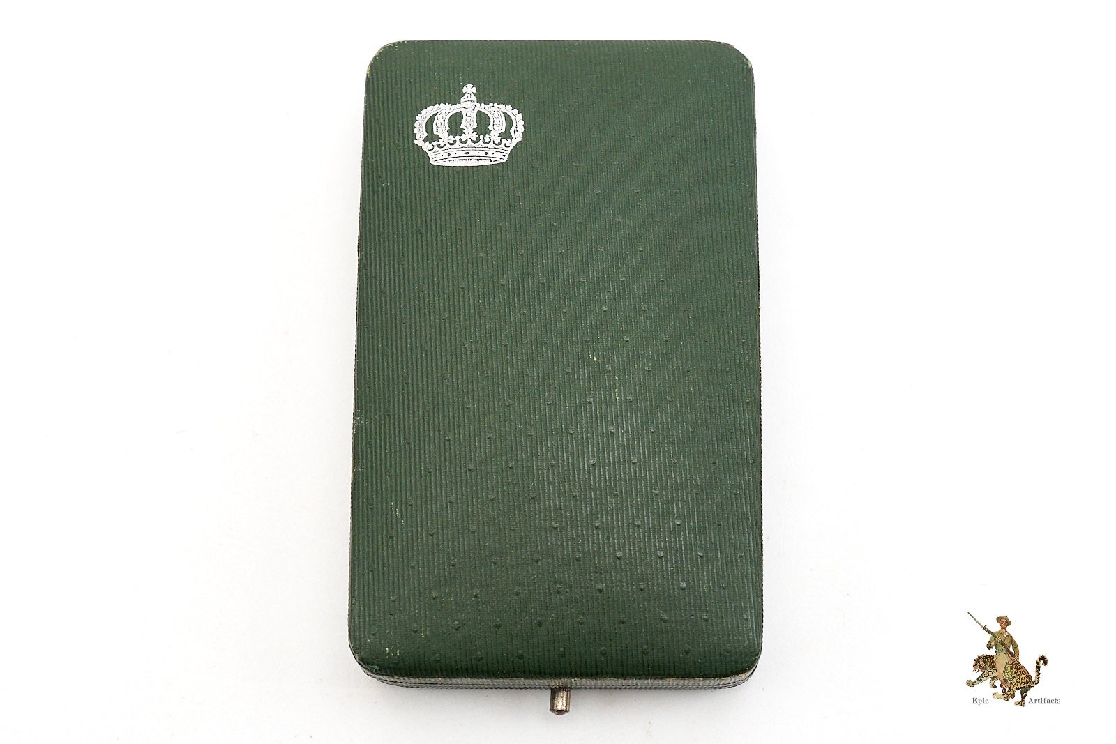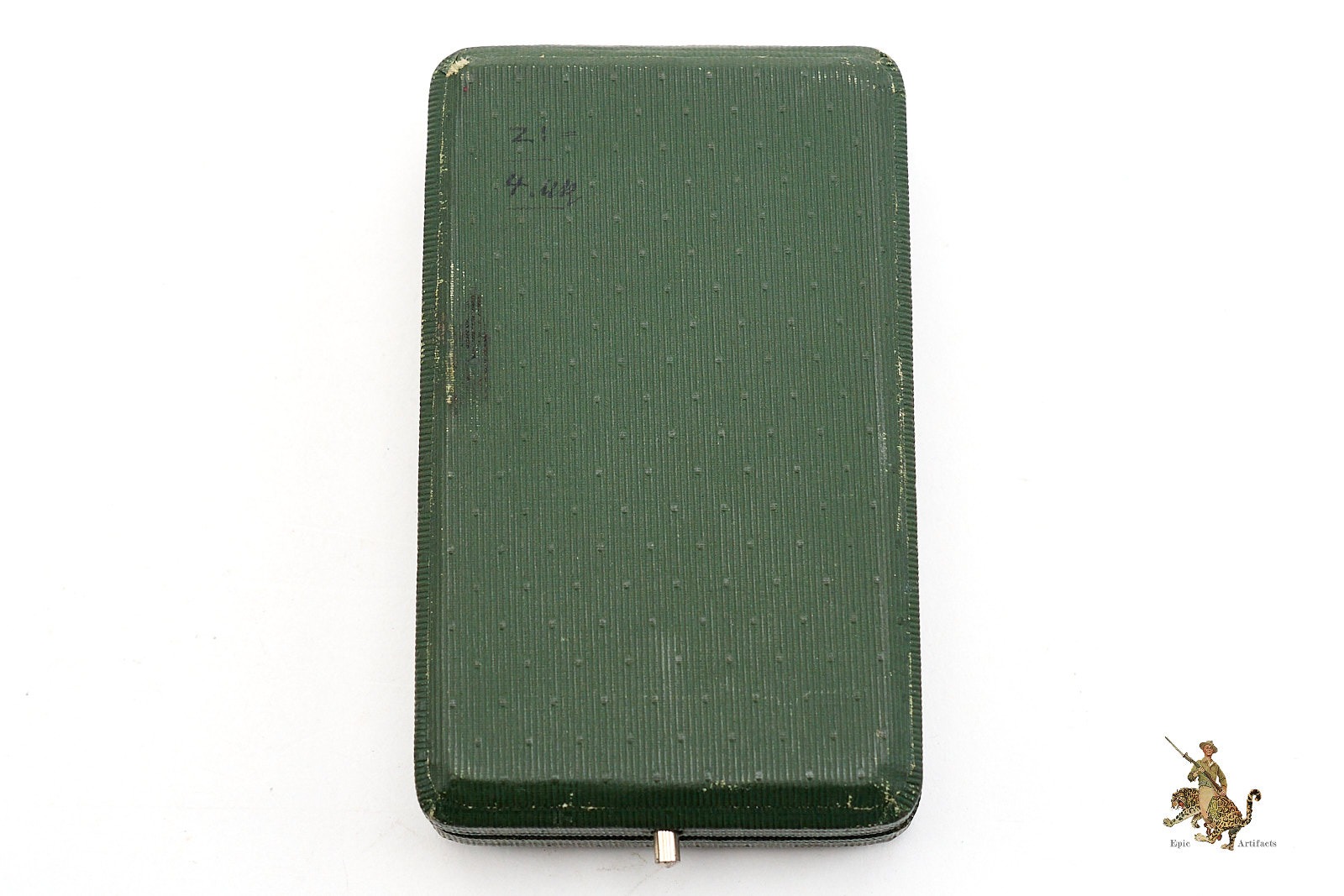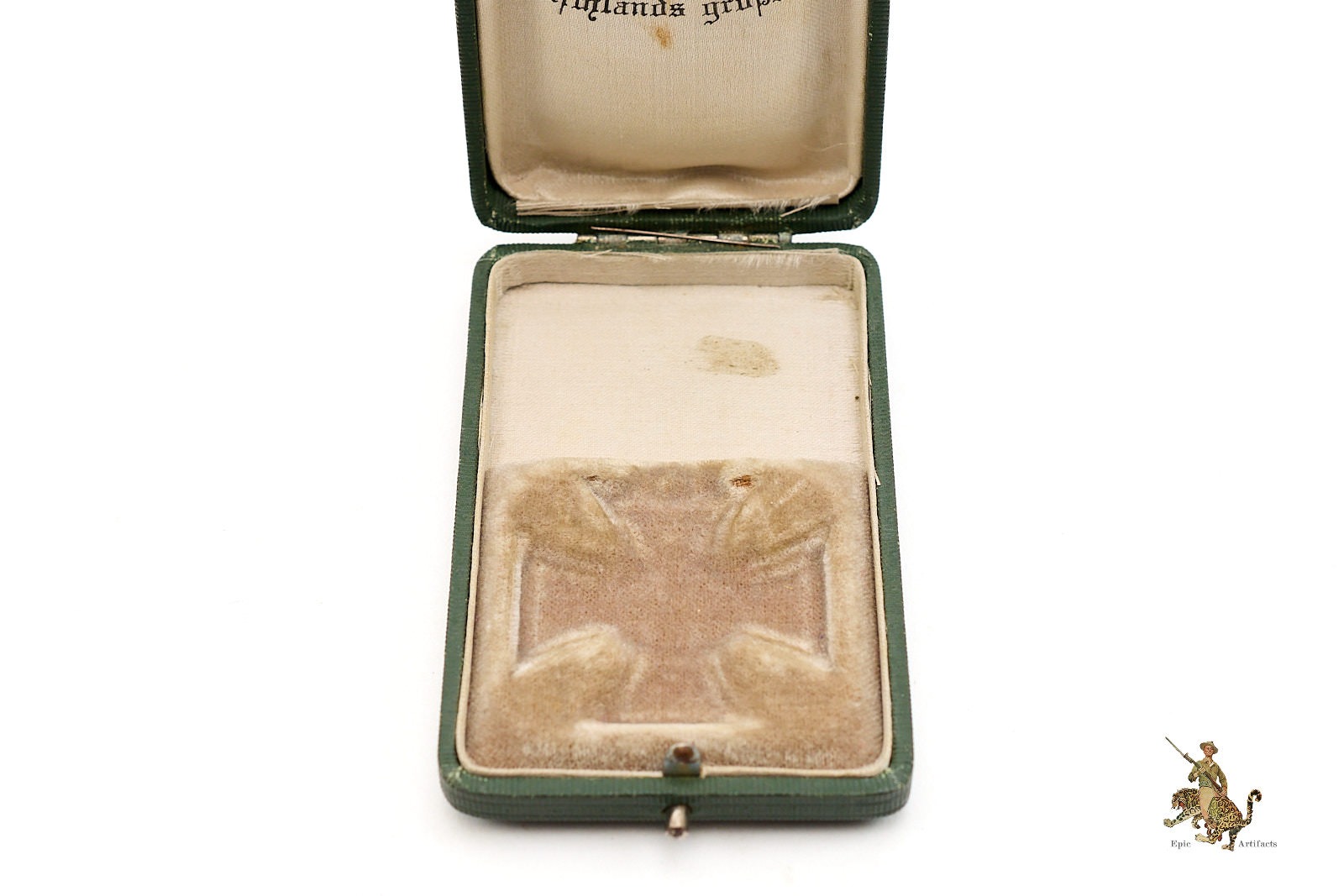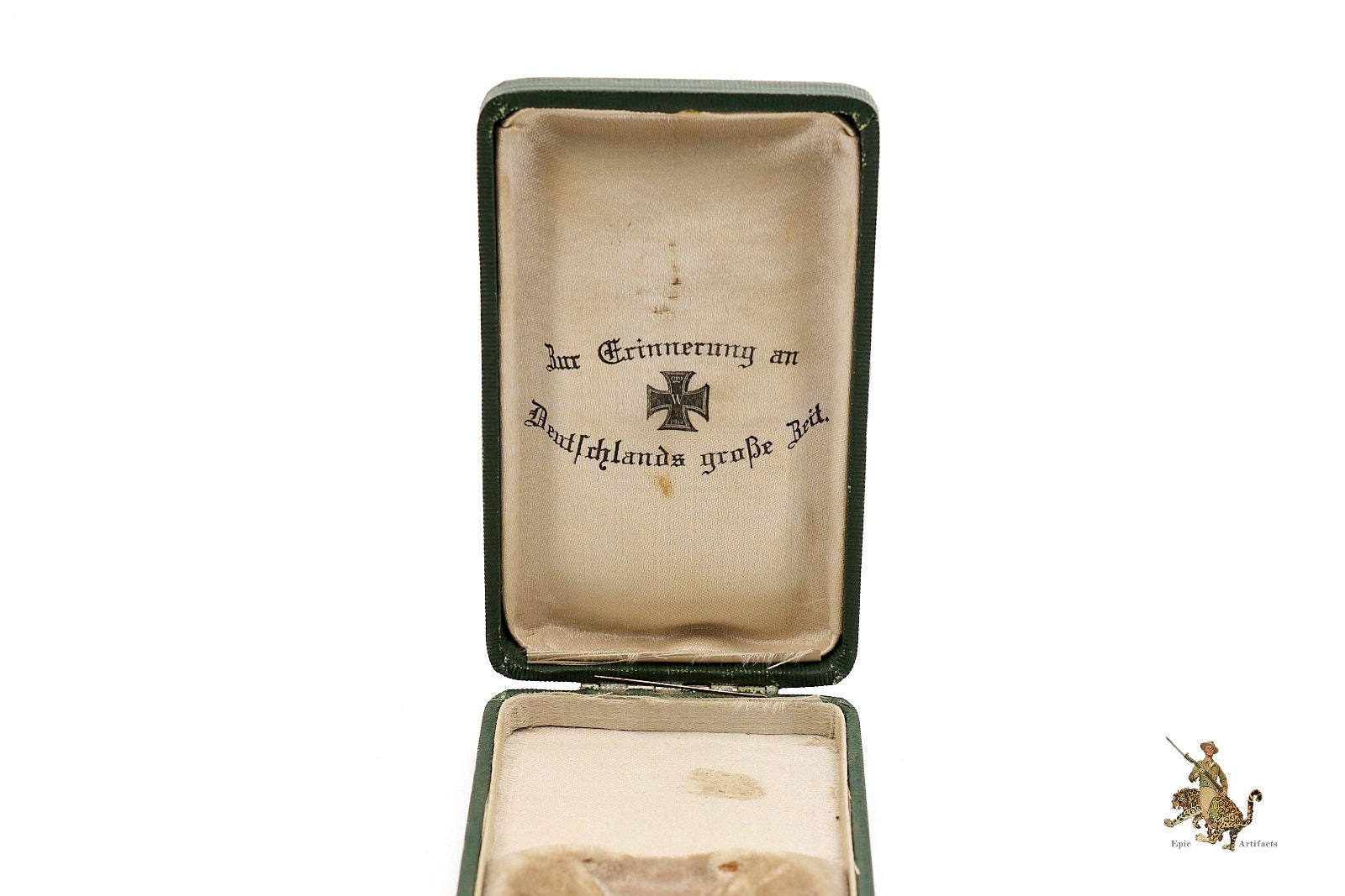 Housed in its original leatherette covered presentation case, the award is further distinguished by the presence of a fully functional metal push button latch. The case shows only minimal handling wear, primarily to the bottom panel, and remains structurally sound with a clean interior. A superbly preserved and highly desirable WWI-era award, this EK2 offers both historical significance and exceptional display quality, ideal for the discerning collector of Imperial German decorations.