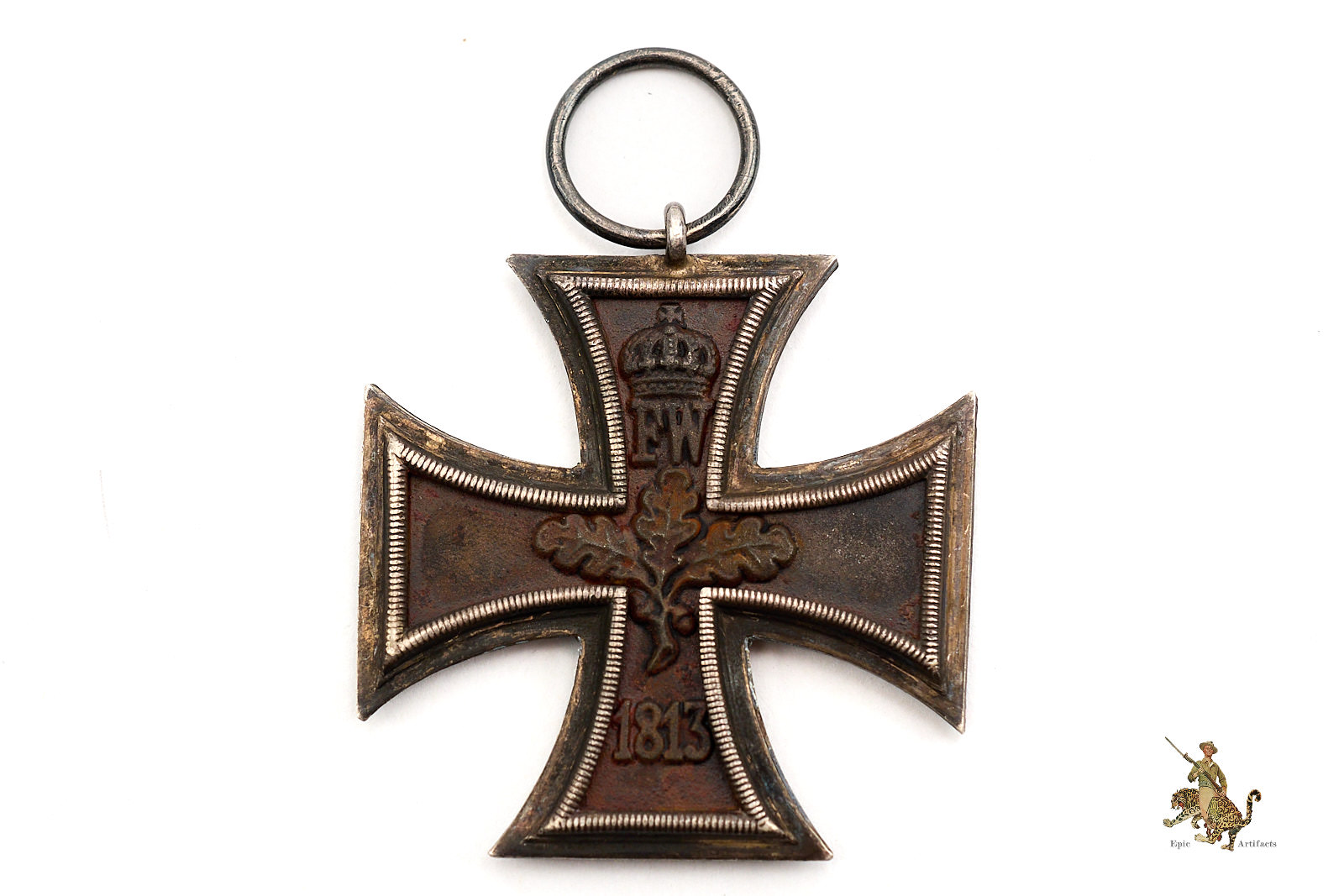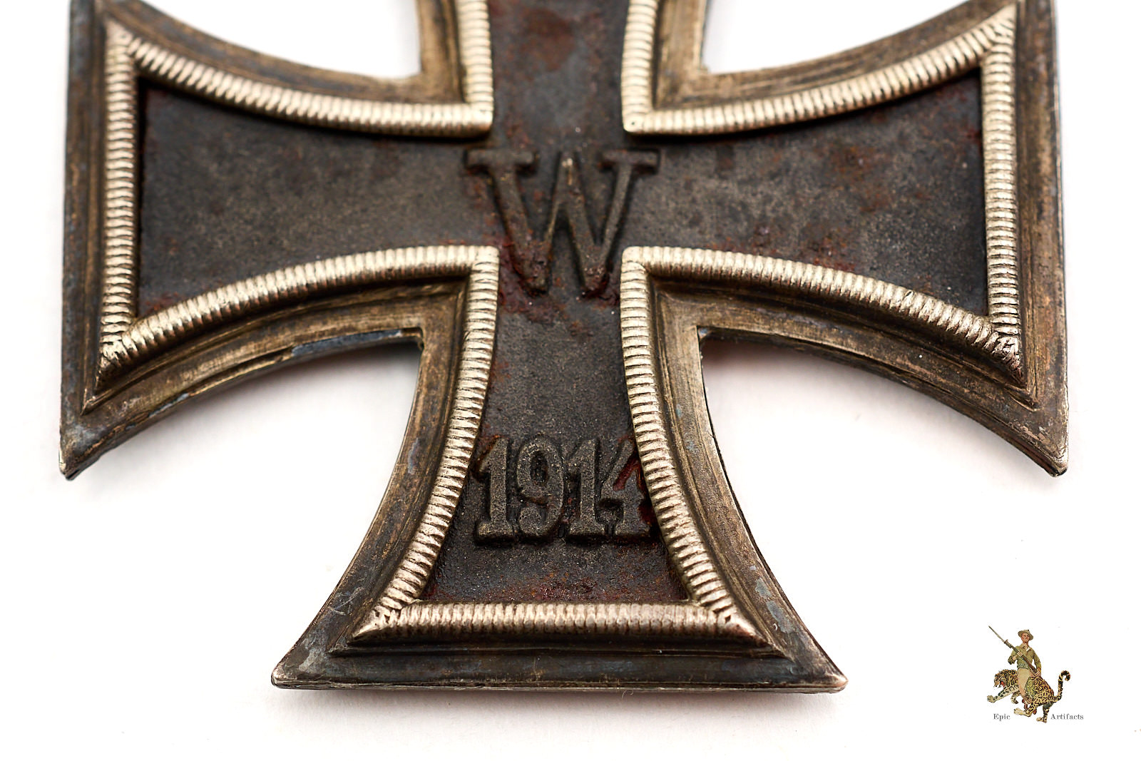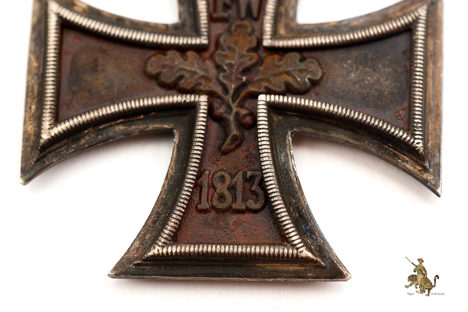 Historical Description: There is no more iconic German military award than the Iron Cross. The long history of this order began during the Napoleonic Wars. King Friedrich Wilhelm III of Prussia instituted the “Eisernes Kreuz” (Iron Cross) in March of 1813. The award criteria changed somewhat with time, but generally speaking, Iron Crosses could be awarded for individual acts of bravery, or for leadership achievements on the battlefield. The design was created by a Karl Friedrich Schinkel, his choice of the black cross with silver outline was derived from the heraldic emblem of the Teutonic Knights. There were a number of different type and grades of Iron Cross awards throughout its long history, but the basic details of the most widely awarded grades: The Iron Cross 1st Class and Iron Cross 2nd Class- remained the same. The first-class award was a breast badge, with fittings on the reverse to allow it to be worn on the uniform. These fittings varied widely over time and from maker to maker, and could be a simple in and catch, a screw post and retaining disc, or more elaborate setups. The second-class award was suspended from a ribbon, originally in the Prussian colors of black and white, later in the Reich colors of black, red and white. On the original versions of these crosses, in 1813, the front of the iron core of each grade was bare, and only the second-class award had ornamentation: a crown over the initials “FW” representing the King, a sprig of oak leaves, and the date 1813. The core was redesigned in 1870, when the cross was re-instituted during the Franco-Prussian War. The reverse ornamentation on the Iron Cross 2nd Class remained the same, but the front of the core on both grades now bore another crown, a “W” representing Kaiser Wilhelm, and the date 1870. This pattern repeated again when the cross was reinstituted for WWI- everything stayed the same, only the date 1870 was replaced with 1914. The final reinstitution of the cross came in 1939. For this version, the front of the core for both grades bore a swastika and the date 1939. The oak leaves, crown and royal initials were removed from the reverse, with only the date 1813 remaining as a reminder of the legacy of this award. In WWII, hundreds of thousands of Iron Cross First Class awards were bestowed, and four and a half million Iron Cross Second Class awards. Iron Crosses were made by a large number of authorized manufacturers Some variants of these awards were mass produced in huge numbers. Others were made in very limited quantities.