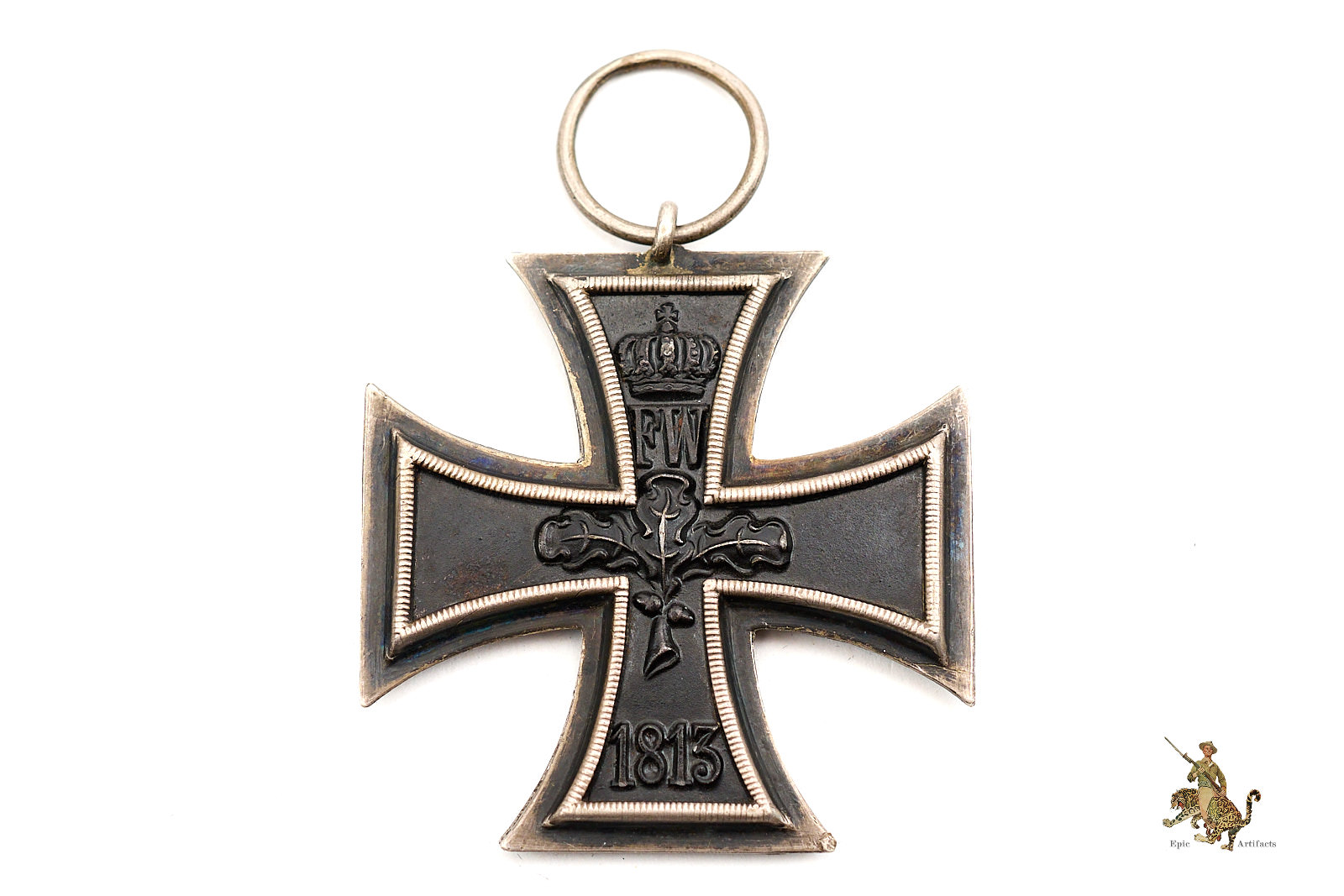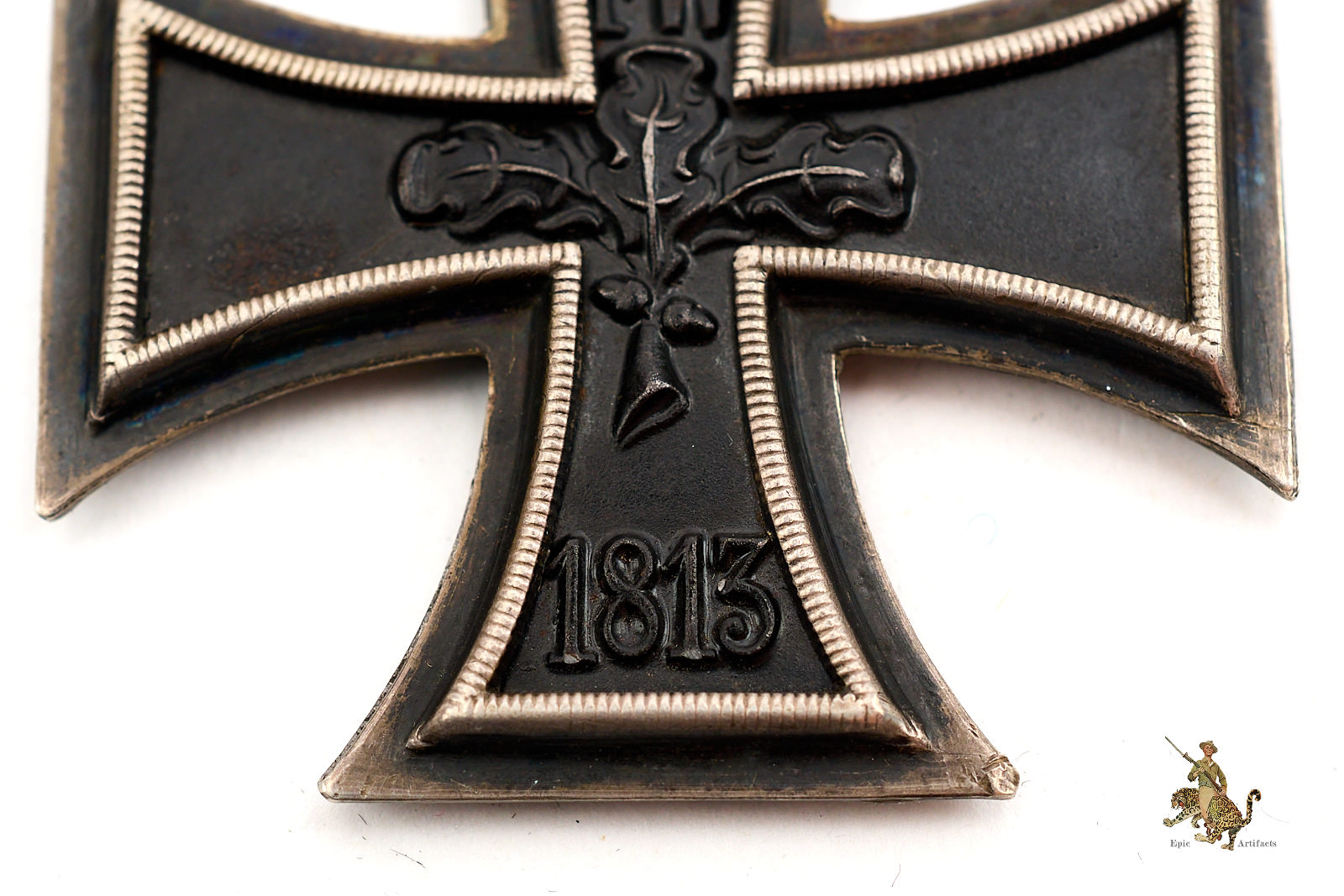 Historical Description: There is no more iconic German military award than the Iron Cross. The long history of this order began during the Napoleonic Wars. King Friedrich Wilhelm III of Prussia instituted the “Eisernes Kreuz” (Iron Cross) in March of 1813. The award criteria changed somewhat with time, but generally speaking, Iron Crosses could be awarded for individual acts of bravery, or for leadership achievements on the battlefield. The design was created by a Karl Friedrich Schinkel, his choice of the black cross with silver outline was derived from the heraldic emblem of the Teutonic Knights. There were a number of different type and grades of Iron Cross awards throughout its long history, but the basic details of the most widely awarded grades: The Iron Cross 1st Class and Iron Cross 2nd Class- remained the same. The first-class award was a breast badge, with fittings on the reverse to allow it to be worn on the uniform. These fittings varied widely over time and from maker to maker, and could be a simple in and catch, a screw post and retaining disc, or more elaborate setups. The second-class award was suspended from a ribbon, originally in the Prussian colors of black and white, later in the Reich colors of black, red and white. On the original versions of these crosses, in 1813, the front of the iron core of each grade was bare, and only the second-class award had ornamentation: a crown over the initials “FW” representing the King, a sprig of oak leaves, and the date 1813. The core was redesigned in 1870, when the cross was re-instituted during the Franco-Prussian War. The reverse ornamentation on the Iron Cross 2nd Class remained the same, but the front of the core on both grades now bore another crown, a “W” representing Kaiser Wilhelm, and the date 1870. This pattern repeated again when the cross was reinstituted for WWI- everything stayed the same, only the date 1870 was replaced with 1914. The final reinstitution of the cross came in 1939. For this version, the front of the core for both grades bore a swastika and the date 1939. The oak leaves, crown and royal initials were removed from the reverse, with only the date 1813 remaining as a reminder of the legacy of this award. In WWII, hundreds of thousands of Iron Cross First Class awards were bestowed, and four and a half million Iron Cross Second Class awards. Iron Crosses were made by a large number of authorized manufacturers Some variants of these awards were mass produced in huge numbers. Others were made in very limited quantities.