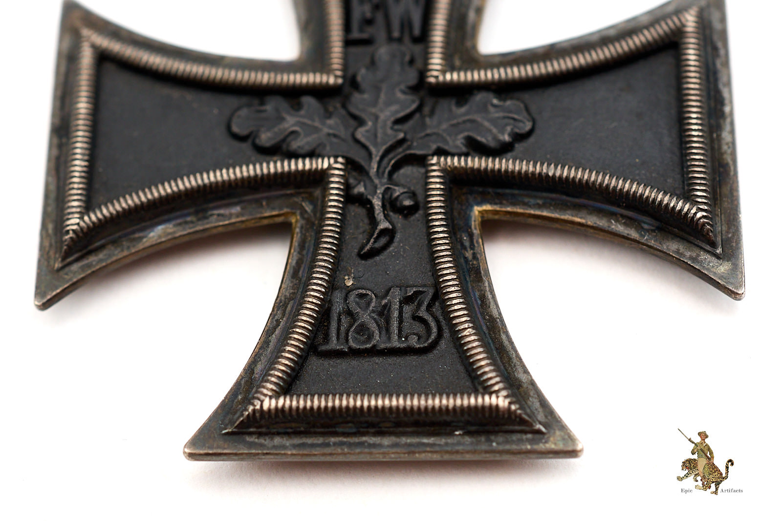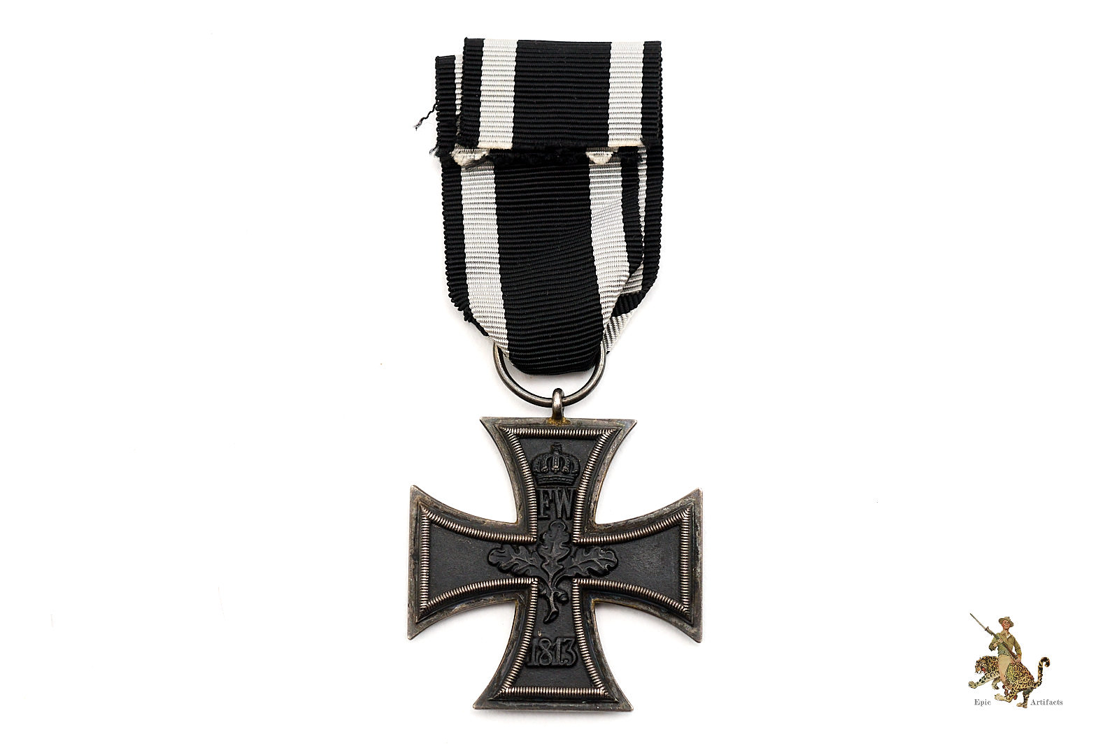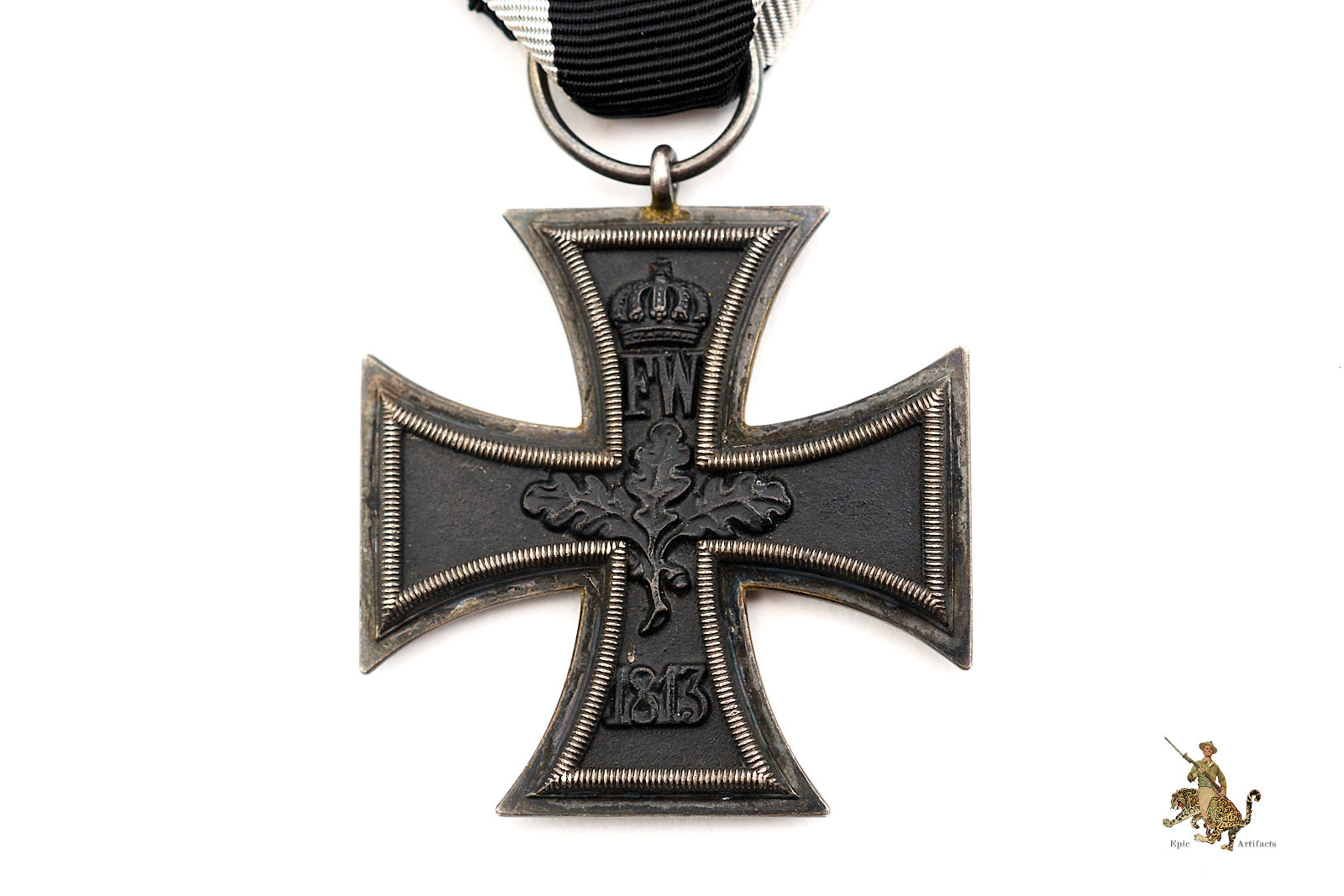 Historical Description: There is no more iconic German military award than the Iron Cross. The long history of this order began during the Napoleonic Wars. King Friedrich Wilhelm III of Prussia instituted the “Eisernes Kreuz” (Iron Cross) in March of 1813. The award criteria changed somewhat with time, but generally speaking, Iron Crosses could be awarded for individual acts of bravery, or for leadership achievements on the battlefield. The design was created by a Karl Friedrich Schinkel, his choice of the black cross with silver outline was derived from the heraldic emblem of the Teutonic Knights. There were a number of different type and grades of Iron Cross awards throughout its long history, but the basic details of the most widely awarded grades: The Iron Cross 1st Class and Iron Cross 2nd Class- remained the same. The first-class award was a breast badge, with fittings on the reverse to allow it to be worn on the uniform. These fittings varied widely over time and from maker to maker, and could be a simple in and catch, a screw post and retaining disc, or more elaborate setups. The second-class award was suspended from a ribbon, originally in the Prussian colors of black and white, later in the Reich colors of black, red and white. On the original versions of these crosses, in 1813, the front of the iron core of each grade was bare, and only the second-class award had ornamentation: a crown over the initials “FW” representing the King, a sprig of oak leaves, and the date 1813. The core was redesigned in 1870, when the cross was re-instituted during the Franco-Prussian War. The reverse ornamentation on the Iron Cross 2nd Class remained the same, but the front of the core on both grades now bore another crown, a “W” representing Kaiser Wilhelm, and the date 1870. This pattern repeated again when the cross was reinstituted for WWI- everything stayed the same, only the date 1870 was replaced with 1914. The final reinstitution of the cross came in 1939. For this version, the front of the core for both grades bore a swastika and the date 1939. The oak leaves, crown and royal initials were removed from the reverse, with only the date 1813 remaining as a reminder of the legacy of this award. In WWII, hundreds of thousands of Iron Cross First Class awards were bestowed, and four and a half million Iron Cross Second Class awards. Iron Crosses were made by a large number of authorized manufacturers Some variants of these awards were mass produced in huge numbers. Others were made in very limited quantities.