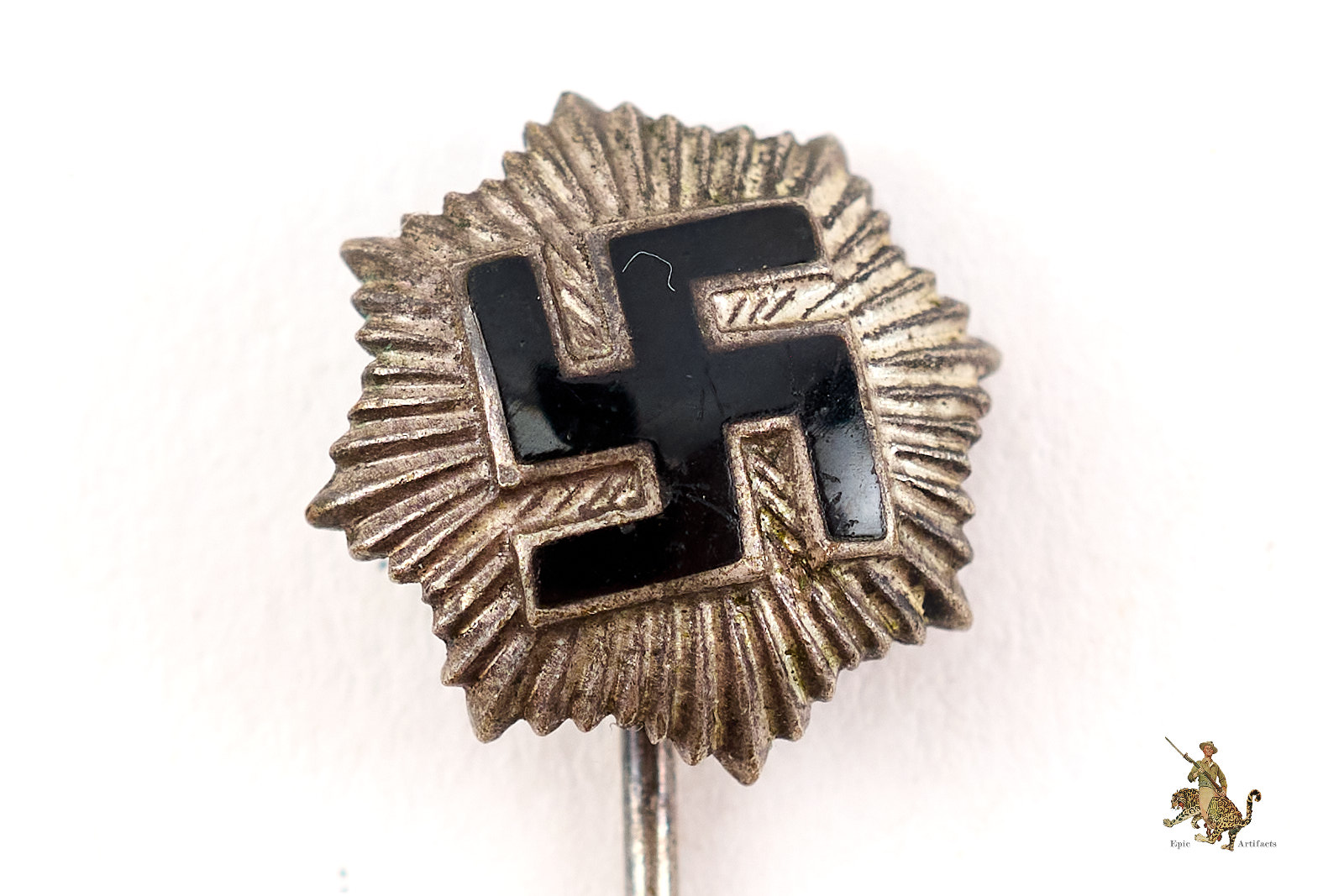 Historical Description:In Germany, during and between the World Wars, stickpins were generally made for wear on civilian clothing, by either men or women. Whereas most civil and military awards intended for uniform wear were in the form of medals or pin-on badges, the simple stickpins were mostly for adorning lapels of suits. A huge variety of these stickpins were produced. There were pins that anyone could buy, that were patriotic or showed support for some specific cause. There were also various membership pins for military, paramilitary, civil and political organizations. Military and civil awards were also produced in stickpin versions. These took the form of miniature versions of the awards, and could either show one individual award, or all the awards that one individual had received. In many cases, German stickpins were made with the same standard of quality as the full-size medals and badges.