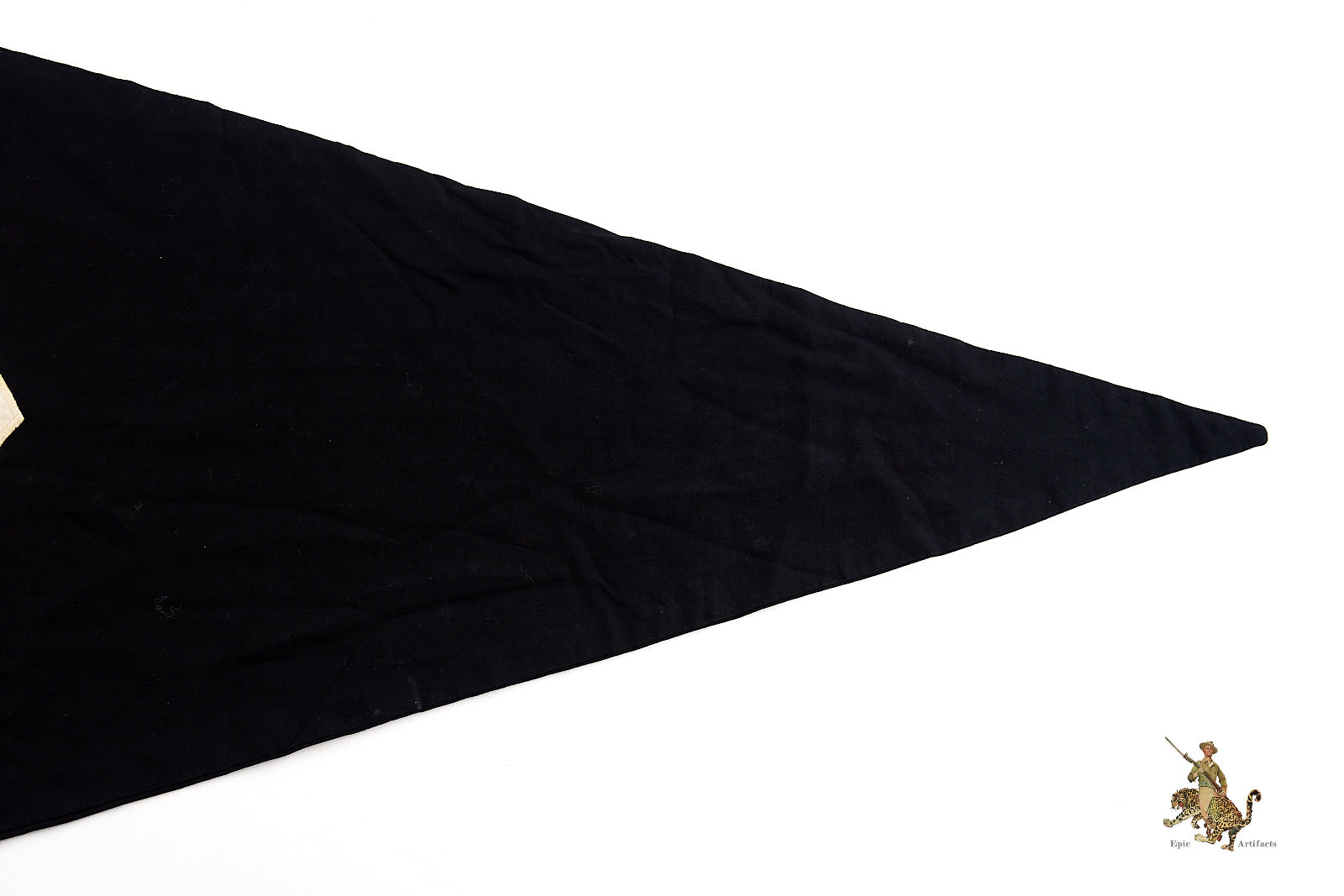 The pennant remains in excellent condition, free from tears, rips, or discoloration, and displays only the lightest signs of age. The attachment clips are absent, yet the textile retains its original form and integrity. Measuring approximately 33 inches in length and 21 inches in height, this BDM Young Girls Pennant, Black represents an early and increasingly scarce example of pre-war youth organization insignia, notable for its craftsmanship and historical context.