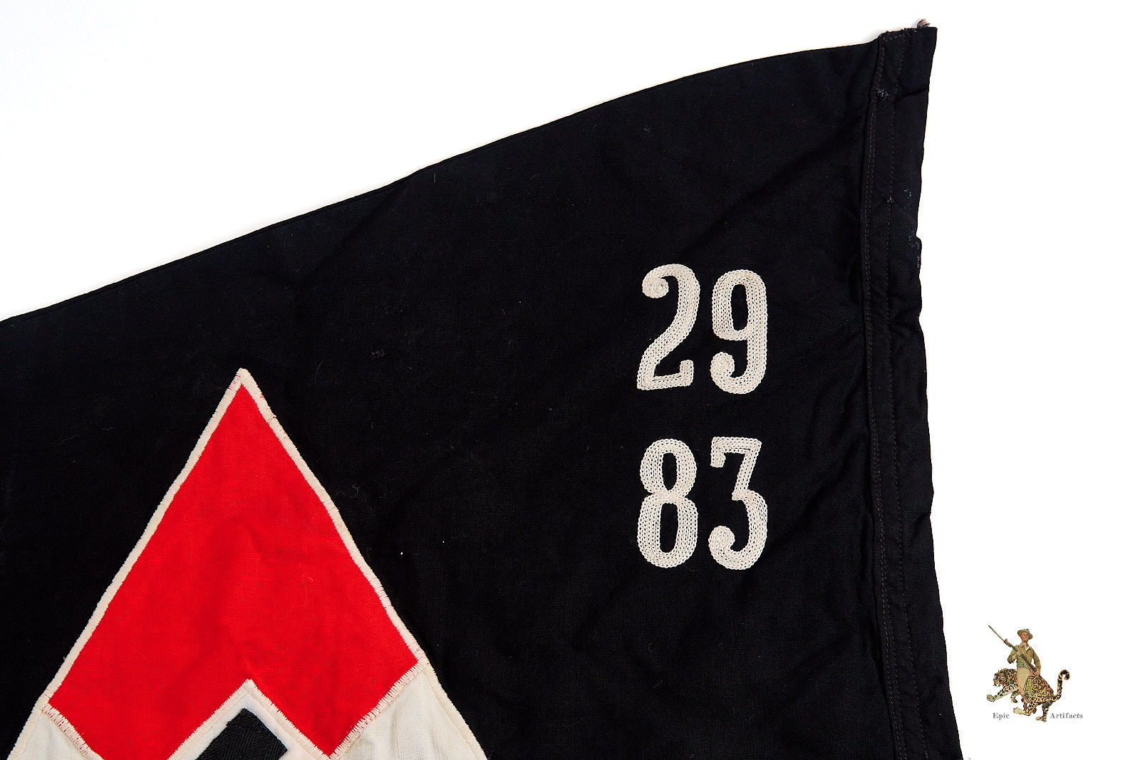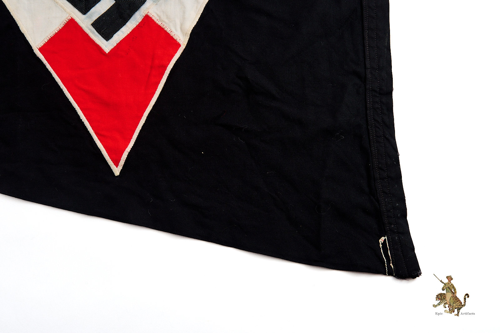 Historical Description: During the Third Reich and WWII, a wide variety of flags and pennants were used on German cars and vehicles. In the military, vehicle flags and pennants were used to indicate branch or rank, or specific command roles. The various civilian organizations also had vehicle flags and pennants for members of their organization or to denote the vehicles of officers, leaders or people in specific roles. Even political leaders had their own flags which were often rank specific. Some of the flags, especially military ones, were simply printed, and some were machine woven or stitched, while the flags for political leaders and the highest ranking military personnel were more decorative and often elaborately hand embroidered in bullion wire. Some vehicle flags were mass produced, including simple national flag type swastika emblem pennants that could have been bought by any patriotic supporter. Others were unique. These flags were attractive souvenirs for GI troops at the end of the war, and are eagerly collected today.