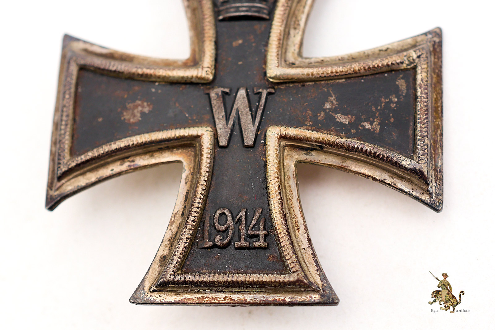 Historical Description: There is no more iconic German military award than the Iron Cross. The long history of this order began during the Napoleonic Wars. King Friedrich Wilhelm III of Prussia instituted the “Eisernes Kreuz” (Iron Cross) in March of 1813. The award criteria changed somewhat with time, but generally speaking, Iron Crosses could be awarded for individual acts of bravery, or for leadership achievements on the battlefield. The design was created by a Karl Friedrich Schinkel, his choice of the black cross with silver outline was derived from the heraldic emblem of the Teutonic Knights. There were a number of different type and grades of Iron Cross awards throughout its long history, but the basic details of the most widely awarded grades: The Iron Cross 1st Class and Iron Cross 2nd Class- remained the same. The first-class award was a breast badge, with fittings on the reverse to allow it to be worn on the uniform. These fittings varied widely over time and from maker to maker, and could be a simple in and catch, a screw post and retaining disc, or more elaborate setups. The second-class award was suspended from a ribbon, originally in the Prussian colors of black and white, later in the Reich colors of black, red and white. On the original versions of these crosses, in 1813, the front of the iron core of each grade was bare, and only the second-class award had ornamentation: a crown over the initials “FW” representing the King, a sprig of oak leaves, and the date 1813. The core was redesigned in 1870, when the cross was re-instituted during the Franco-Prussian War. The reverse ornamentation on the Iron Cross 2nd Class remained the same, but the front of the core on both grades now bore another crown, a “W” representing Kaiser Wilhelm, and the date 1870. This pattern repeated again when the cross was reinstituted for WWI- everything stayed the same, only the date 1870 was replaced with 1914. The final reinstitution of the cross came in 1939. For this version, the front of the core for both grades bore a swastika and the date 1939. The oak leaves, crown and royal initials were removed from the reverse, with only the date 1813 remaining as a reminder of the legacy of this award. In WWII, hundreds of thousands of Iron Cross First Class awards were bestowed, and four and a half million Iron Cross Second Class awards. Iron Crosses were made by a large number of authorized manufacturers Some variants of these awards were mass produced in huge numbers. Others were made in very limited quantities.