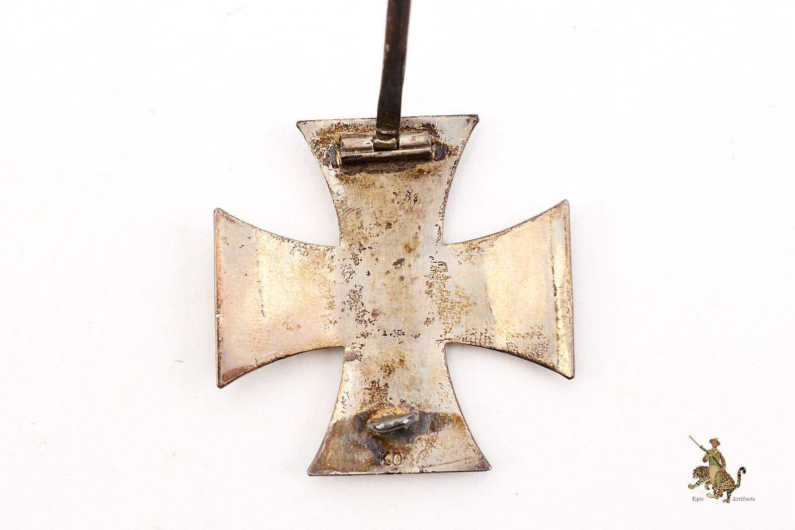 The reverse showcases attractive toning to the silver, and is fitted with a round wire catch, block hinge, and flat pin—hallmarks of quality manufacturing. The maker’s mark “KO” is clearly stamped beneath the C catch, confirming production by the firm of Königliches Münzamt (Royal Mint), Berlin. This Imperial Iron Cross 1st Class EK1 – KO is a fine and well-preserved example, combining strong visual appeal with historical significance. This EK1 condition rates as excellent.