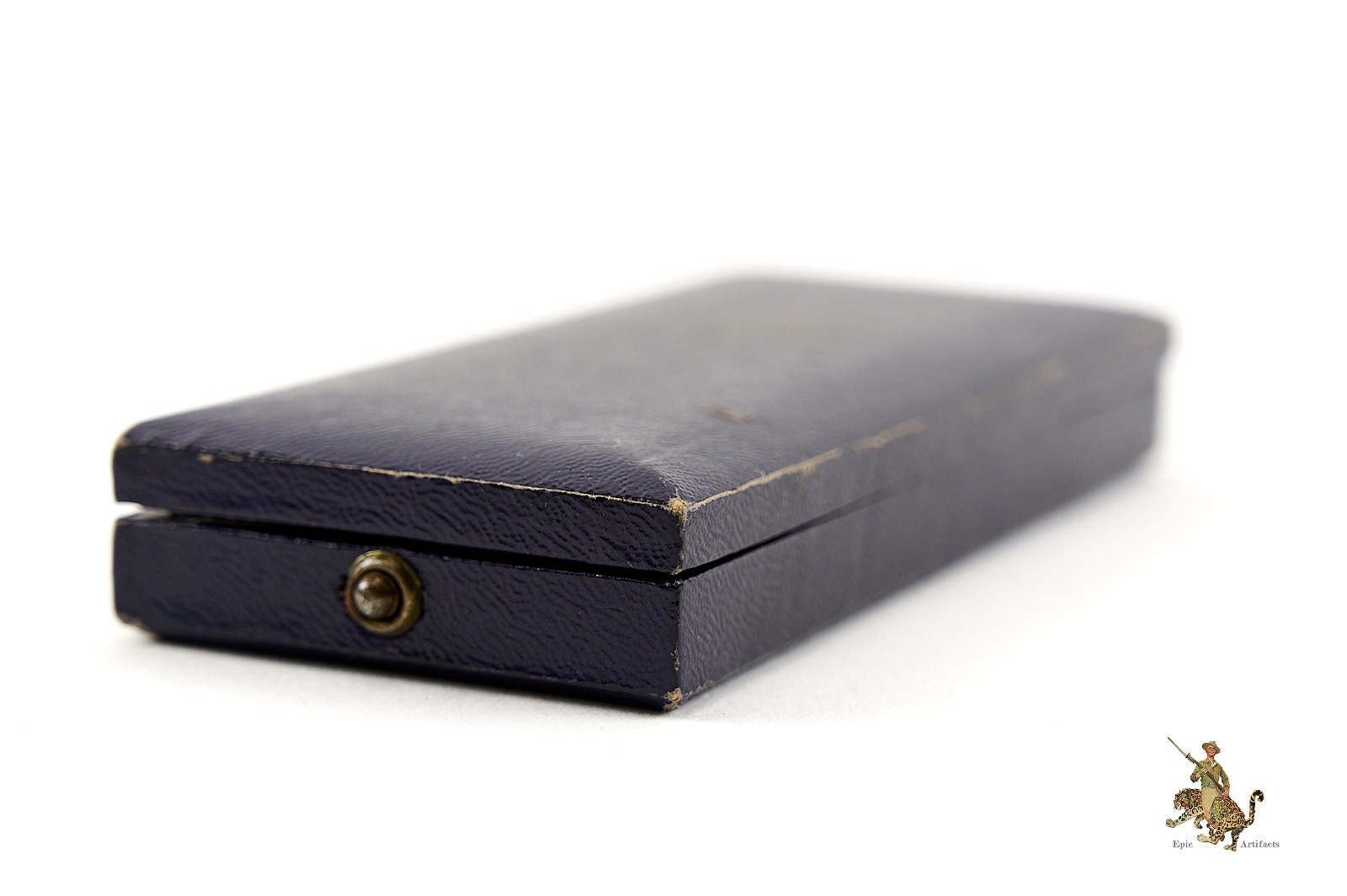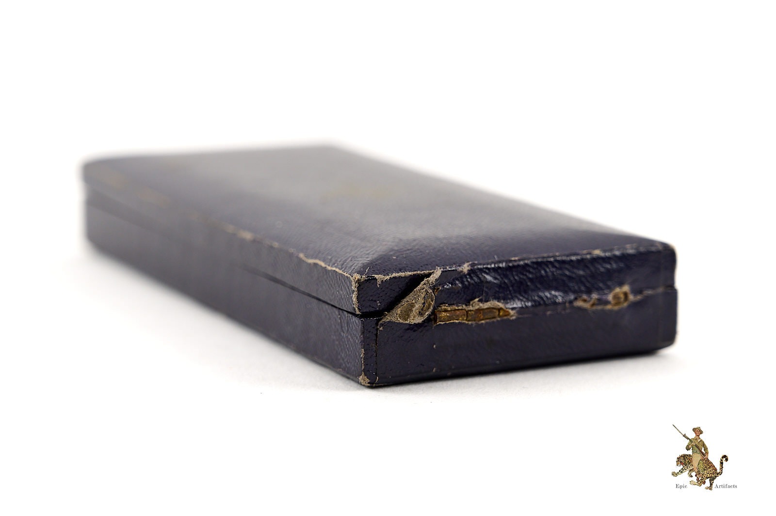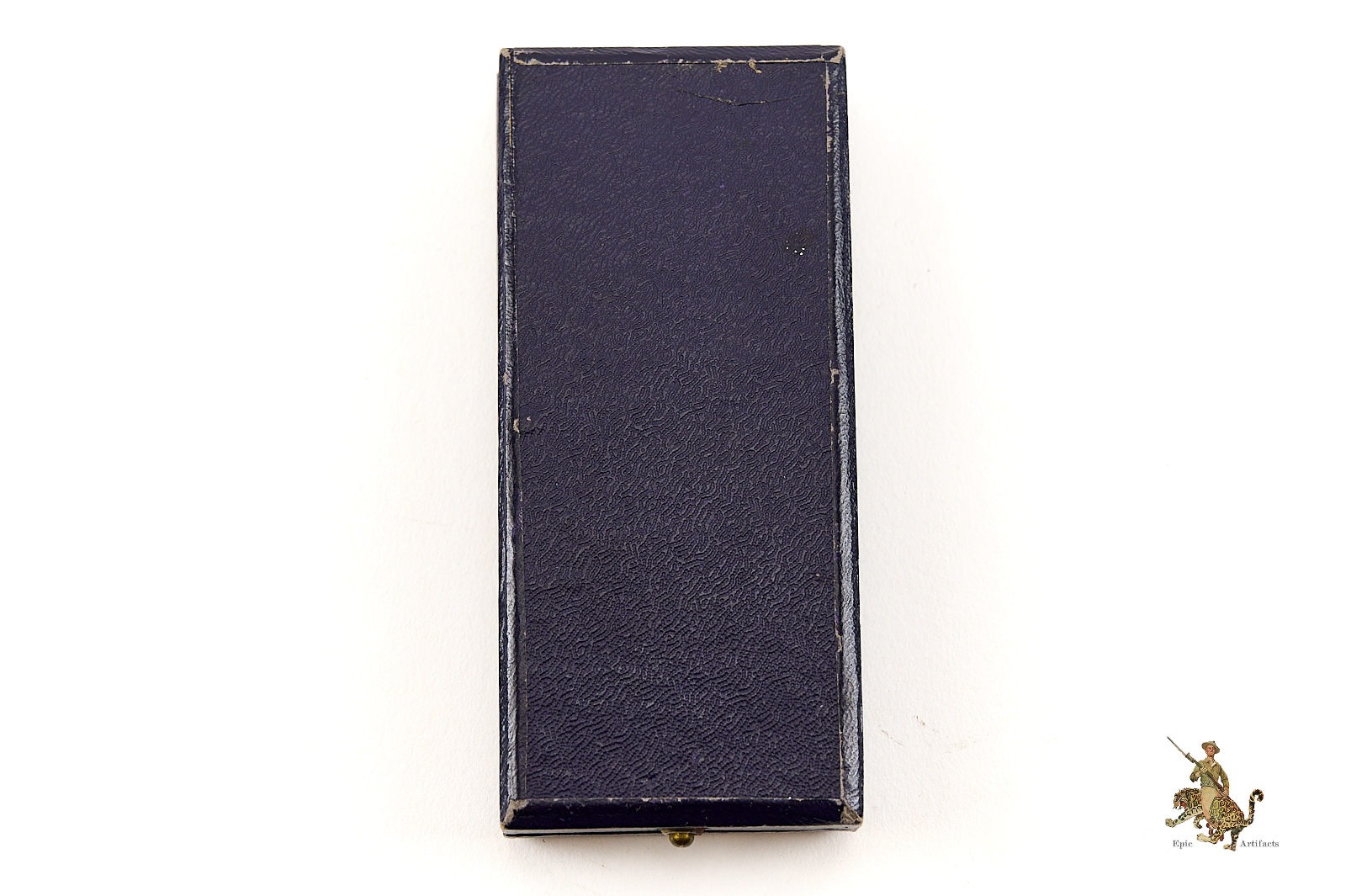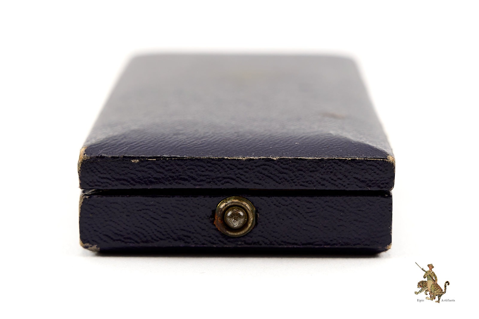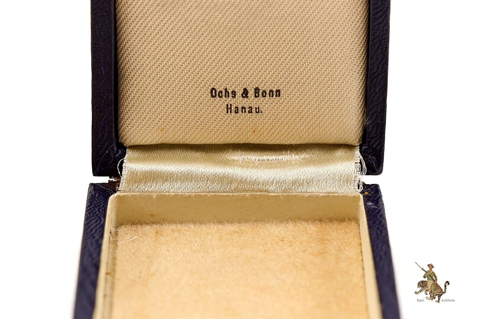 Product Description: This is an outstanding example of the Cased Mothers Cross in Gold – Ochs & Bonn Hanau, the highest grade of this award. The medal is in excellent condition and very attractive. The original gilding is very close to 100 percent intact, is still bright, and contrasts beautifully with the flawless original enamel. There are no chips or cracks to the enamel. The medal is complete with its original full length neck ribbon. The award and ribbon are housed in their original case of issue, which is of course the correct case for this badge. The exterior of the case bears an embossed representation of the Mothers Cross, in gold leaf. The case shows some wear from handling and decades of storage. The corners are worn, and there are some minor abrasions to the artificial leather, but the case remains complete and intact, with a functional metal hinge and push-button closure. Inside the case, the award rests on a cream-colored flocked insert. The lid is lined with silk, which bears the manufacturer stamp “Ochs & Bonn Hanau” This cased Mothers Cross in Gold is impressive, and displays great.