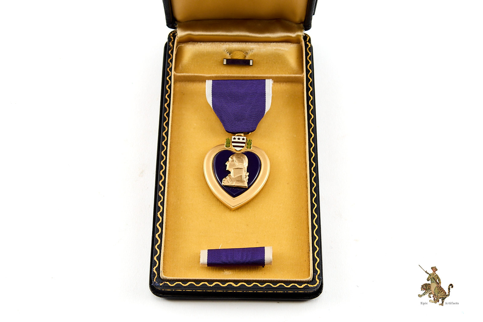 First established in 1782 and revived in 1932, the Purple Heart remains one of the most revered decorations in U.S. military history. This is a choice WWII example with strong collector appeal.
