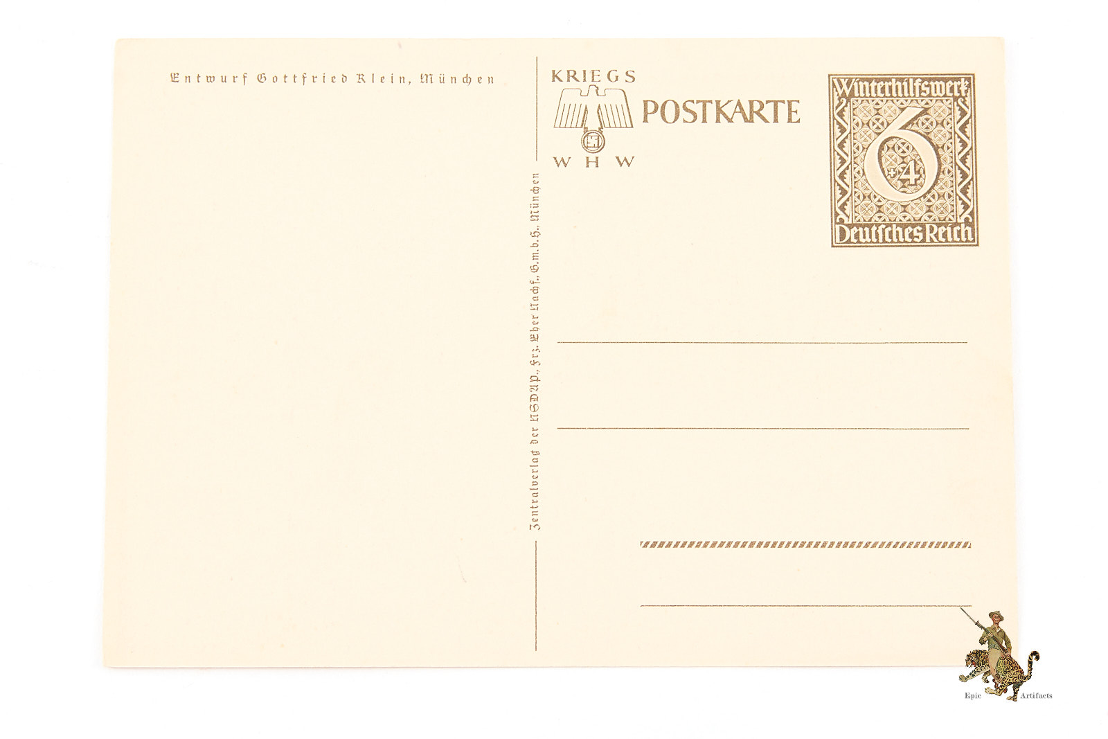 Historical Description: A WWII German postcard represents a small but historically significant artifact of wartime communication and visual culture during the Second World War (1939–1945). Produced in large quantities, these postcards served both as an inexpensive means of correspondence and as a vehicle for patriotic and propagandistic imagery. Many feature military subjects, national symbolism, or scenes depicting members of the German armed forces, reflecting the themes and messaging promoted during the period through institutions such as the Reich Ministry of Public Enlightenment and Propaganda under Joseph Goebbels.