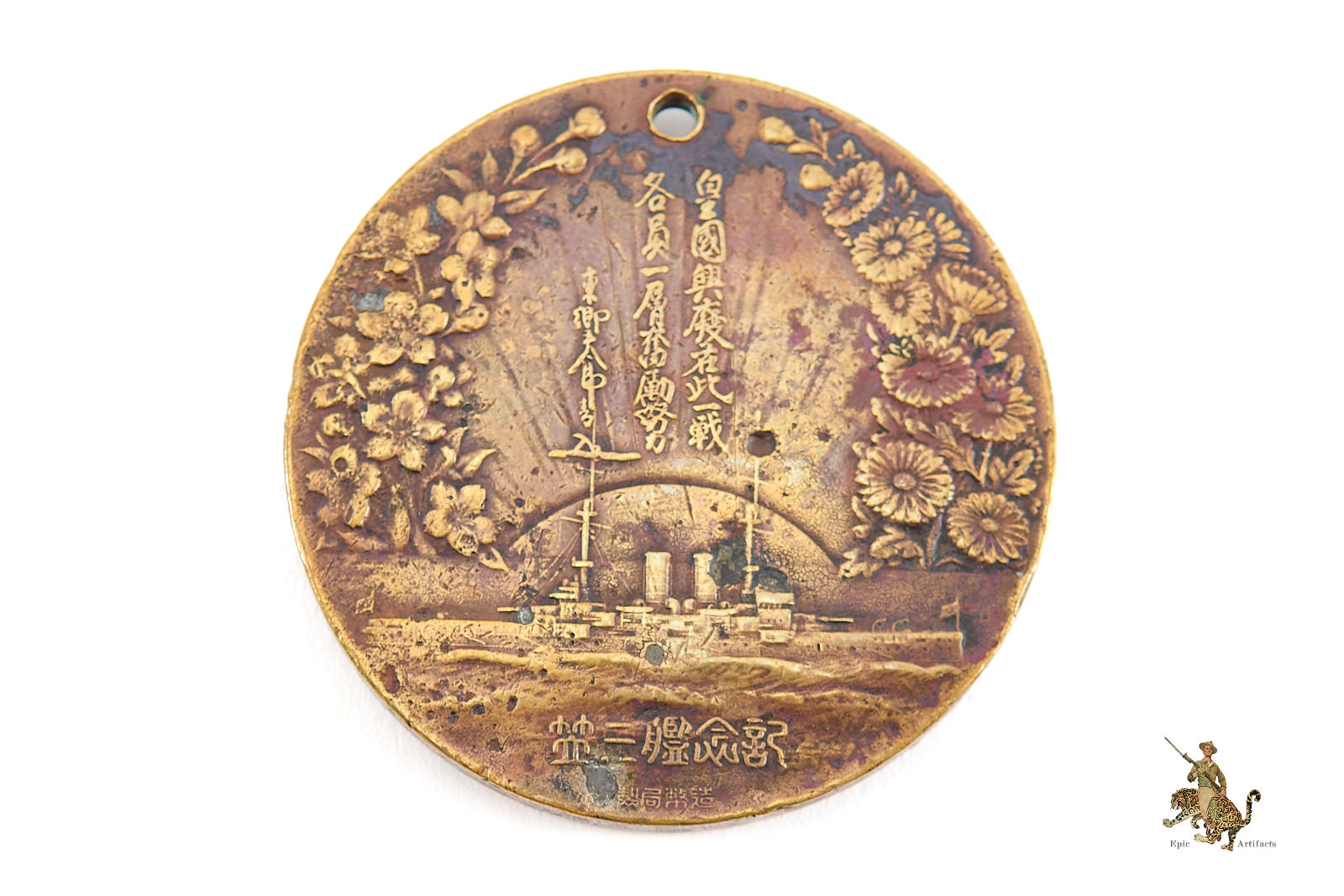 Tōgō’s international renown was cemented during the Russo-Japanese War, when as Commander-in-Chief of the Combined Fleet he led Japan to decisive victory at the Battle of Tsushima in 1905—an engagement often cited as one of the most consequential naval battles in history. His defeat of the Russian Baltic Fleet reshaped the global balance of power and established Japan as a major naval force. Following the war, Tōgō continued to serve as an advisor to the Imperial Household and mentor to future naval leaders. His death in 1934 prompted widespread national commemoration, and objects produced in his honor, such as the Death of Admiral Heihachiro Togo Table Medal, remain significant relics of Japan’s early modern naval heritage.