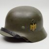 Historical Description: When the German Army first marched into war in 1914 it went to the front lines wearing the traditional “Picklehaube” helmets. The war soon developed to necessitate the need for an improved headgear to protect the wearer. The German Army developed the M16 helmet in 1915 and began issuing it in mass quantity to its fighting troops in 1916. The M16 underwent changes to bring about the next model, the M18. Both the M16 and M18 saw use by the German Army during WW1, as well as the interwar years by the Reichswehr and Freikorps. In 1931, a new liner system was developed. The M16 and M18 helmets were in mass supply right up to the time the Nazi Party took control of the German government. During Adolf Hitler’s rearming of the German military in the early 1930’s, the M16 and M18 helmets saw extensive refitting with the newer liner system, fresh paint, and the addition of a centralized decal system for the newly formed Wehrmacht’s respective branches. Decals were generally placed on each side of the helmet, one side being the branch and the other the national colors shield or party shield. In 1935, the M35 helmet was introduced. This new design was lighter and more streamlined than the older style helmets and is what the world now recognizes as the iconic helmet of the German Military. M35 helmets can most easily be identified from the separate rivet ventholes and rolled eadges. With the outbreak of war, some changes were made to bring in a new model, the M40. The changes made to this new model was the use of a more matte field grey finish and the vent holes were now integral to the helmets shell. In 1940, the national colors decals and party shields were ordered to be removed. It should be noted that many M35 helmets were brought up to date by repainting them with the matte field grey finish and/or other modifications if necessary. These refitted helmets are what collectors now term “reissue helmets”. The next model helmet to evolve was the M42. The model M42 has the same features of the M40 with the exception of the edges of the helmet not being rolled and remain flared. This was to speed up production and lower cost as the war dragged on and the German economy began changing to a total war economy. In 1943 all decals were ordered to be removed from combat helmets.