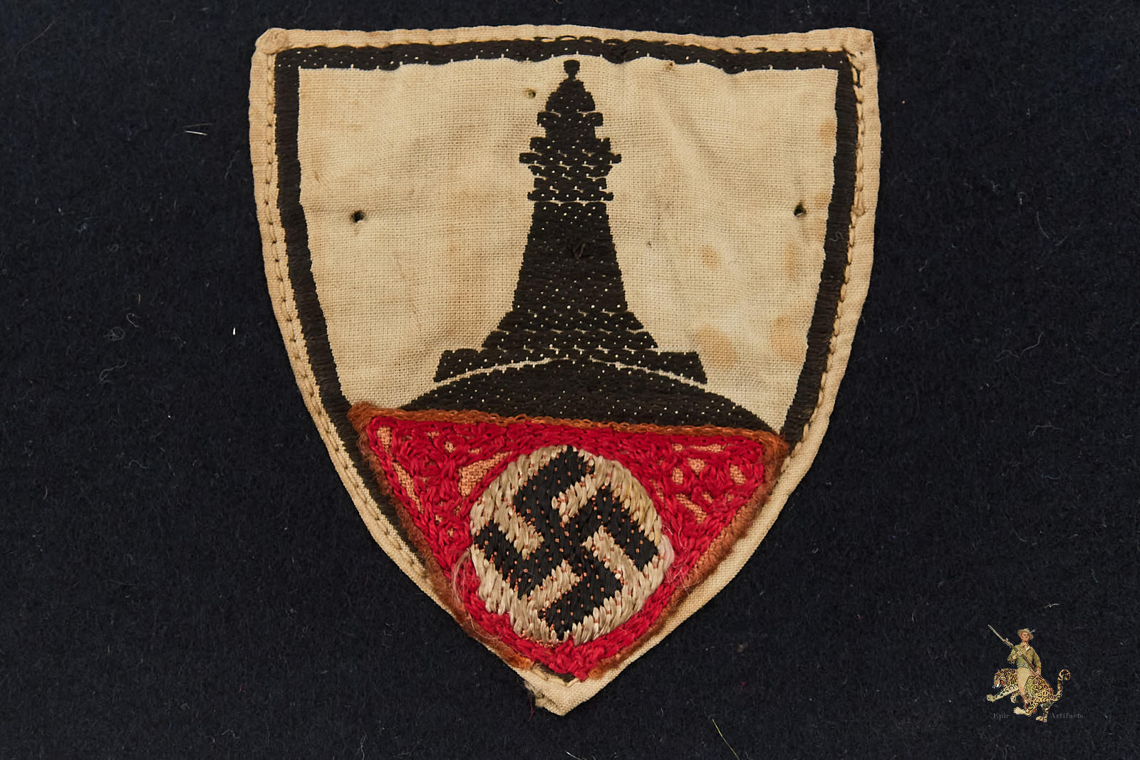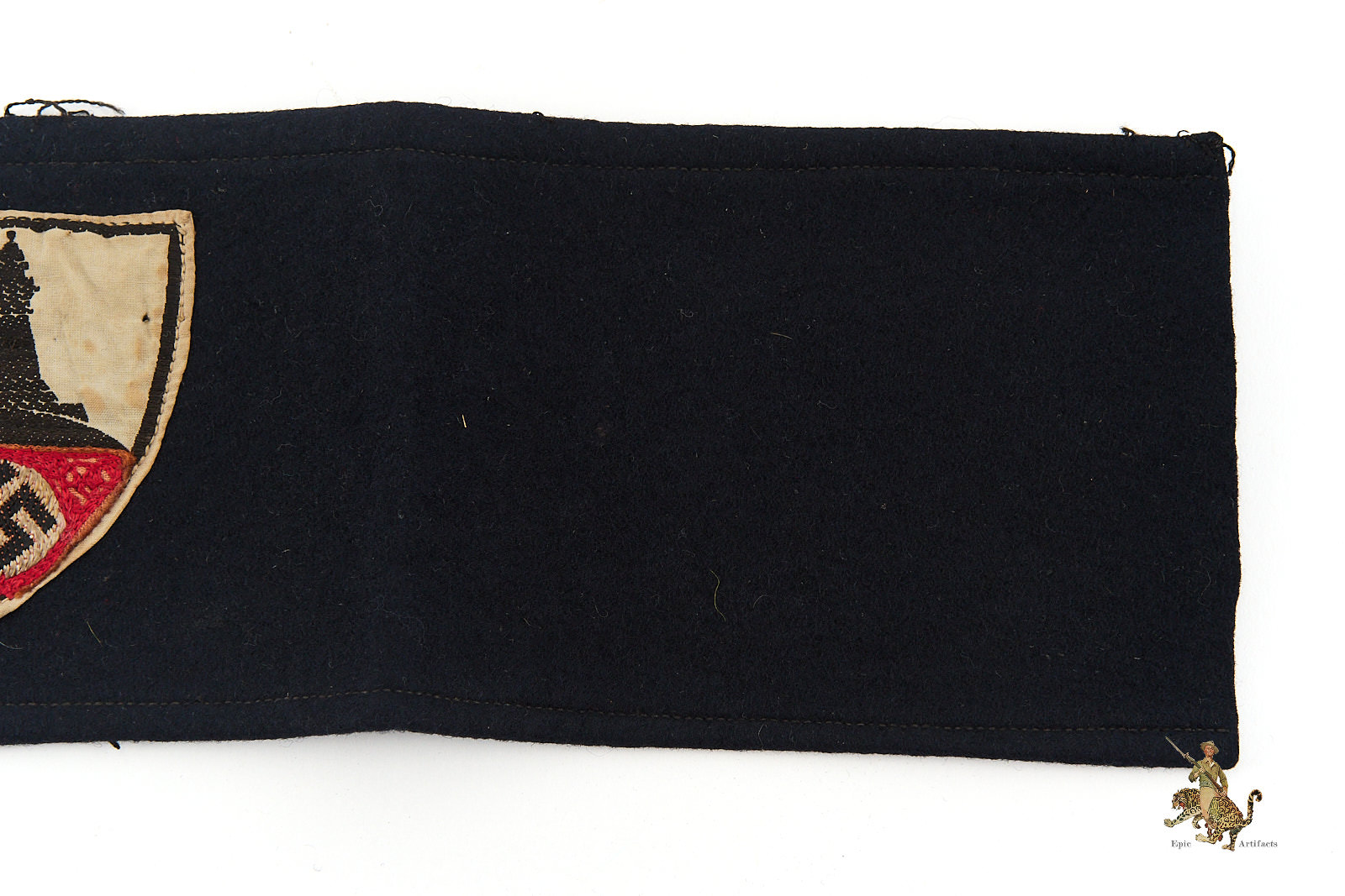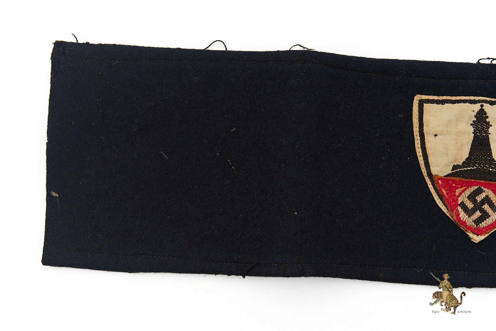 Historical Description: Nearly every military, civil, political and paramilitary organization in existence during the Third Reich used armbands. Armbands were worn on military and civilian uniforms and also on civilian clothes, from suit jackets to work clothing. They were used to denote membership in organizations, to indicate a specific role or function of the bearer, and as insignia of rank. Many organizations would change the design of their armbands over time, which added to the variety produced. These were manufactured in countless variations, ranging from simple printed bands to elaborately hand-embroidered pieces of the highest quality. Some Nazi armbands were worn by all members of large organizations and were made by the millions. Others were intended for use at a specific time and place and were unique. Many types were made in very limited numbers. Some bore metal insignia or special identifiers that indicated the wearer’s rank, unit affiliation, or nationality. Armbands were sometimes but not always marked with ink stamps by the issuing authorities.