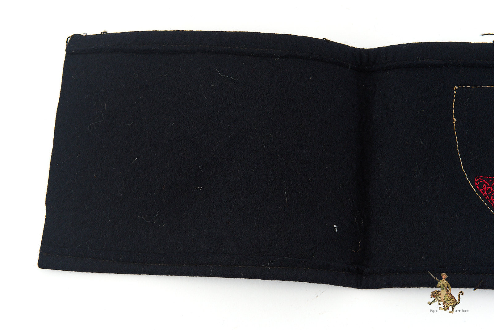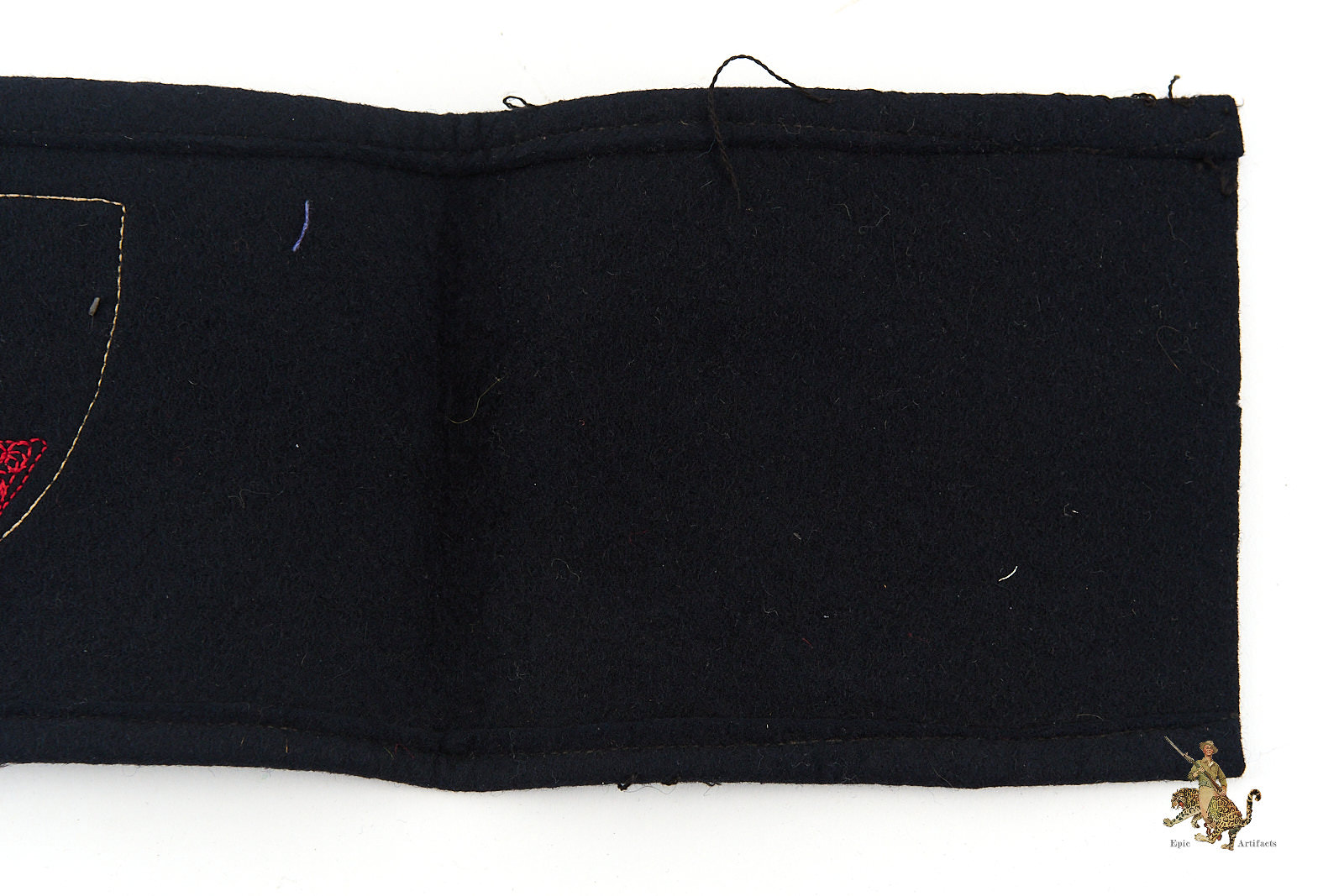 Product Description: This DRKB Veterans Organization Armband presents nicely with a BeVo machine woven insignia mounted centrally on a dark wool armband. The patch features the Kyffhäuser monument and appears to have been altered to add a BeVo swastika emblem that has been chain stitched on top. The patch is machine sewn around entirety of patch. The body of this Veterans Organization armband is made of black wool. The long edges are neatly machine sewn, while the short ends of the armband remain unattached. The overall condition of this DRKB Veterans Organization Armband is excellent, with traces of wear, and some toning.