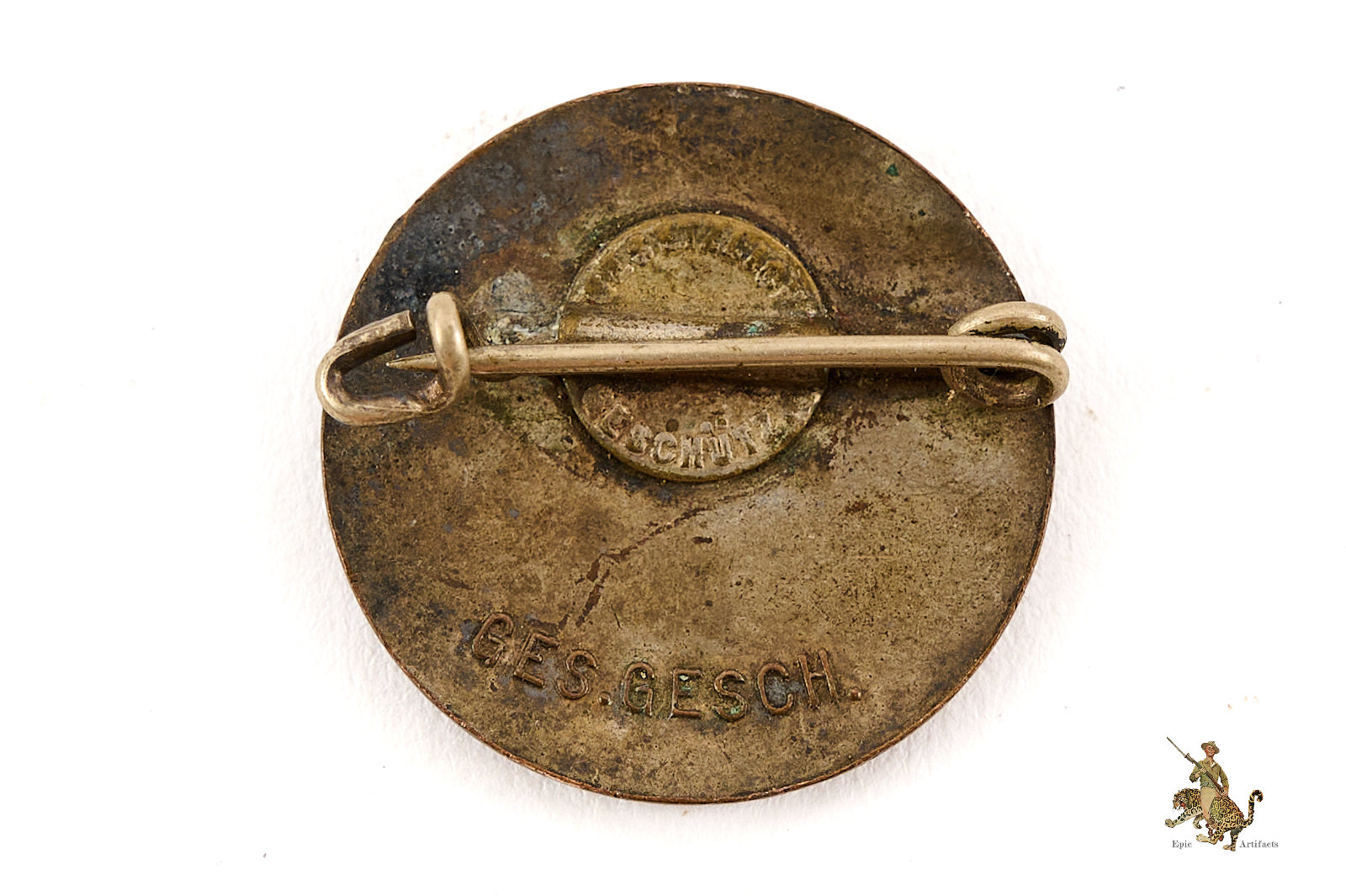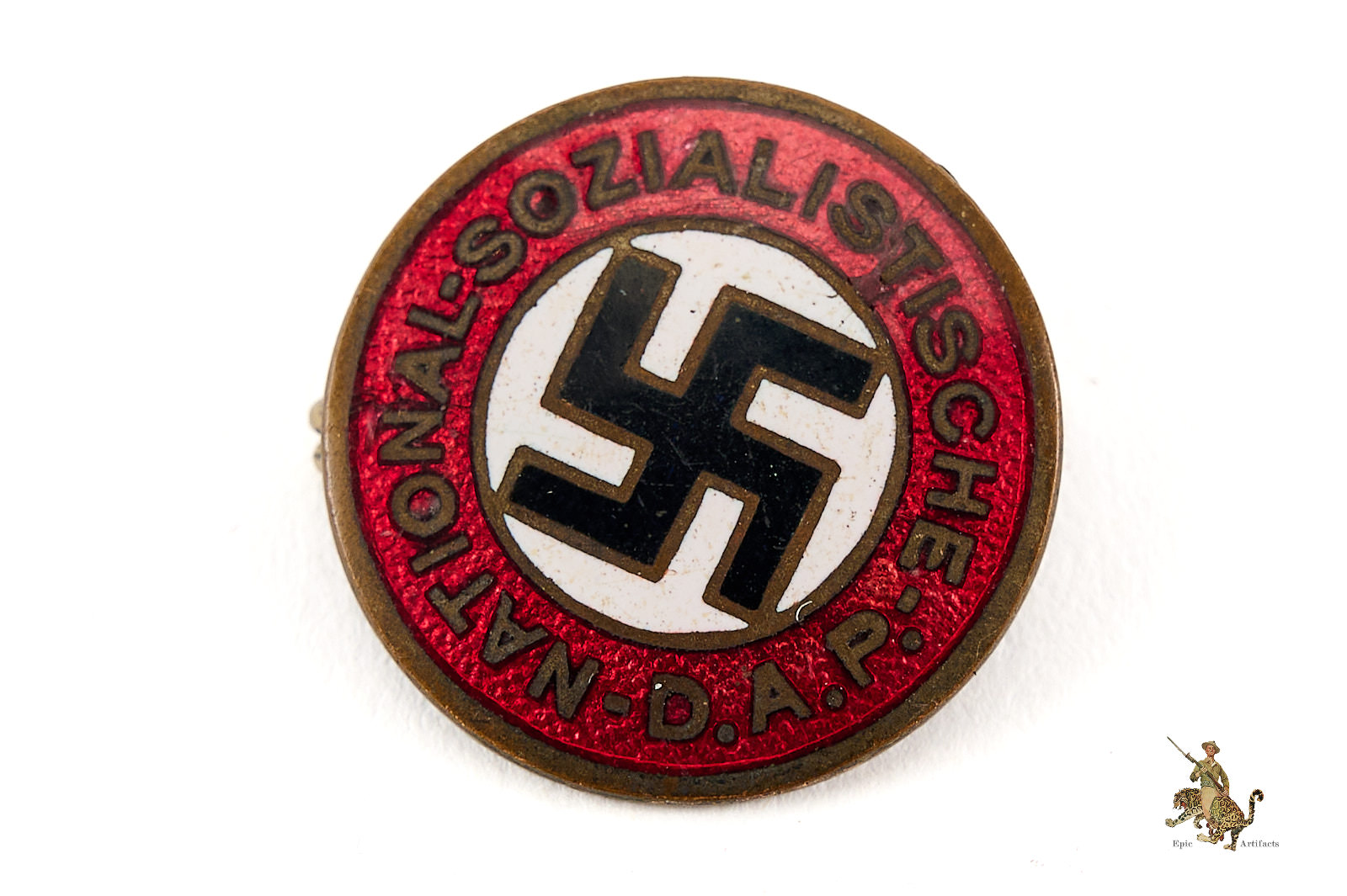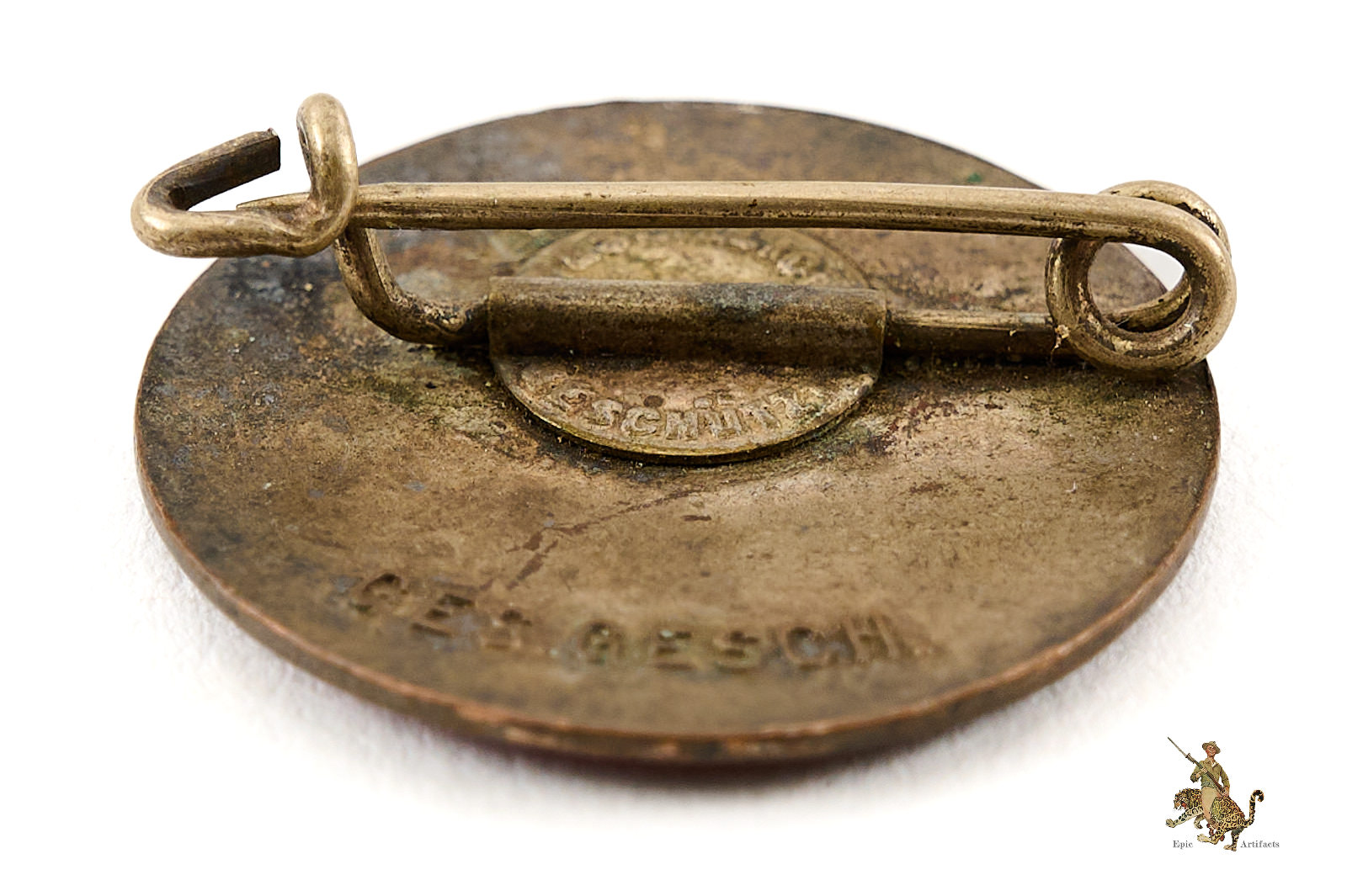 Product Description: This Early NSDAP Party Pin is a top quality, early production piece, with great eye appeal. The obverse shows beautiful, glossy enamelwork that is free of chips or cracks. This membership badge appears to have been lightly worn, with some fine surface scratches, but no damage. The metal is a brass alloy that still retains much of the original silvering on the front. The reverse of this NSDAP party pin still has nearly all of the original silver finish, with uncleaned patina and some scattered marks. It’s marked on the reverse with Ges. Gesch. The attachment pin is formed of round wire, and remains complete and functional, with light wear from honest period use. The pin is held in place with a soldered plate that shows no repairs. This all-original membership badge is a great representative example. The condition rates as excellent plus.