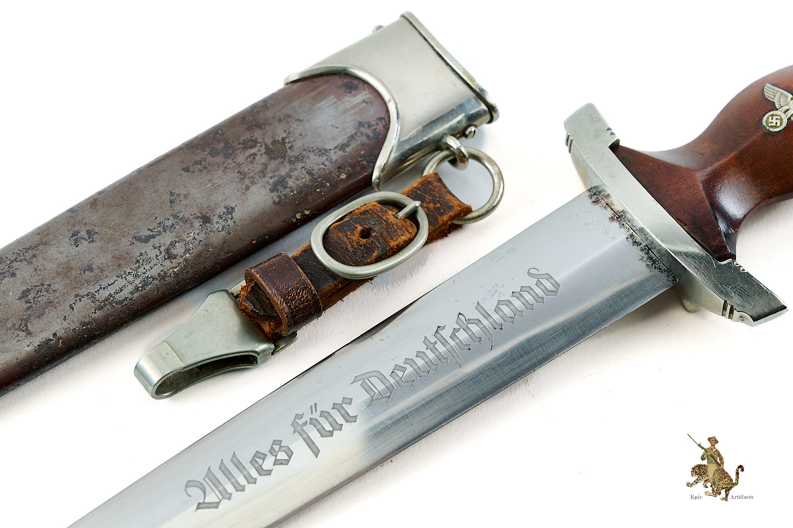 Historical Description: The Model 1933 (M33) SS dagger was first serviceable dagger produced for the SS. The design was derived from a 16thcentury Swiss hunting dagger called the “Holbein”. The M33 SS Dagger was worn by all ranks within the SS. Becoming a member of the SS was held in high respect during the Third Reich, and their daggers became a symbolic piece within its ranks. Every year on November 9th, the new SS men would pledge their full allegiance to the Führer (Adolf Hitler) in front of the Feldherrnhalle monument in Munich and receive their dagger as a symbol of that oath. The inscription on the blade “Mein Ehre Heißt Treue”, which translates to “My Honor is Loyalty”, was the motto of the SS.