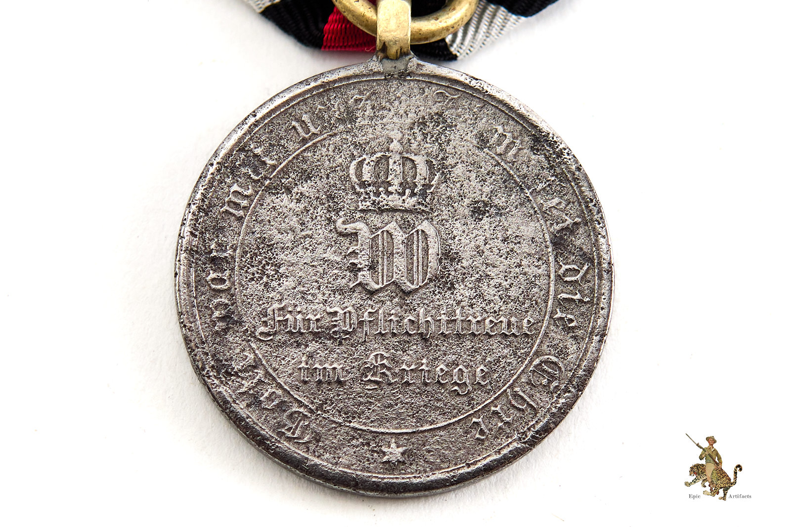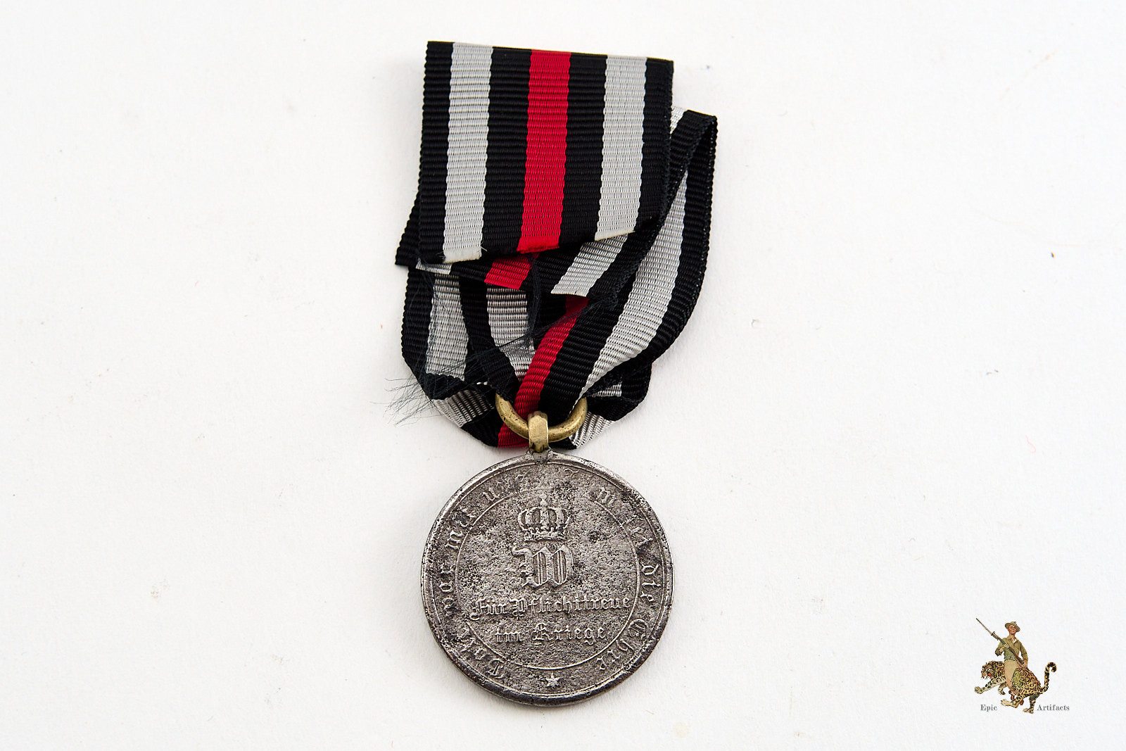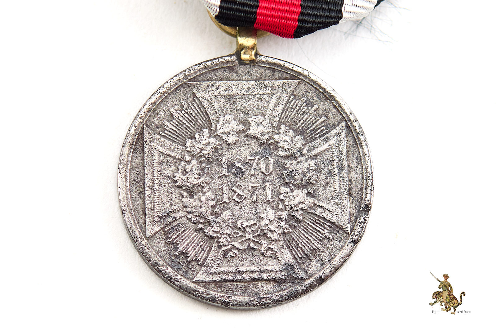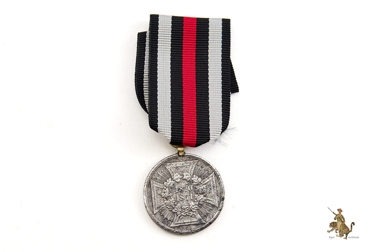 Accompanied by approximately 6 inches of original ribbon, neatly preserved, the piece displays minimal handling wear and retains strong visual presence. A well-preserved and historically resonant example of the Franco Prussian War 1870–1871 Medal, representative of the conflict that reshaped the political landscape of late 19th-century Europe.