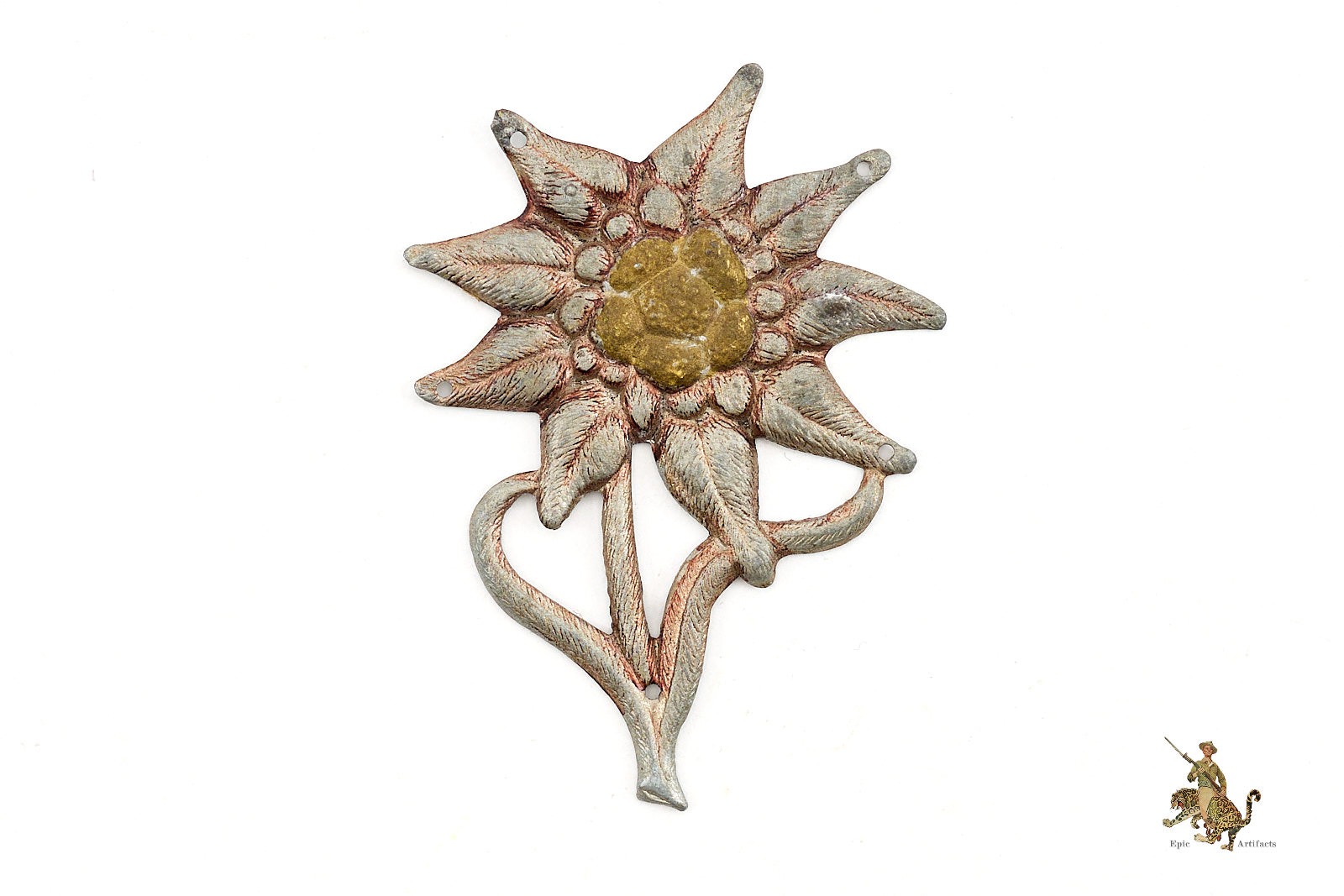 A classic and highly recognizable piece, this Gebirgsjäger Edelweiss Cap Insignia remains in excellent condition and represents an important collectible for any serious assembly of WWII German militaria.