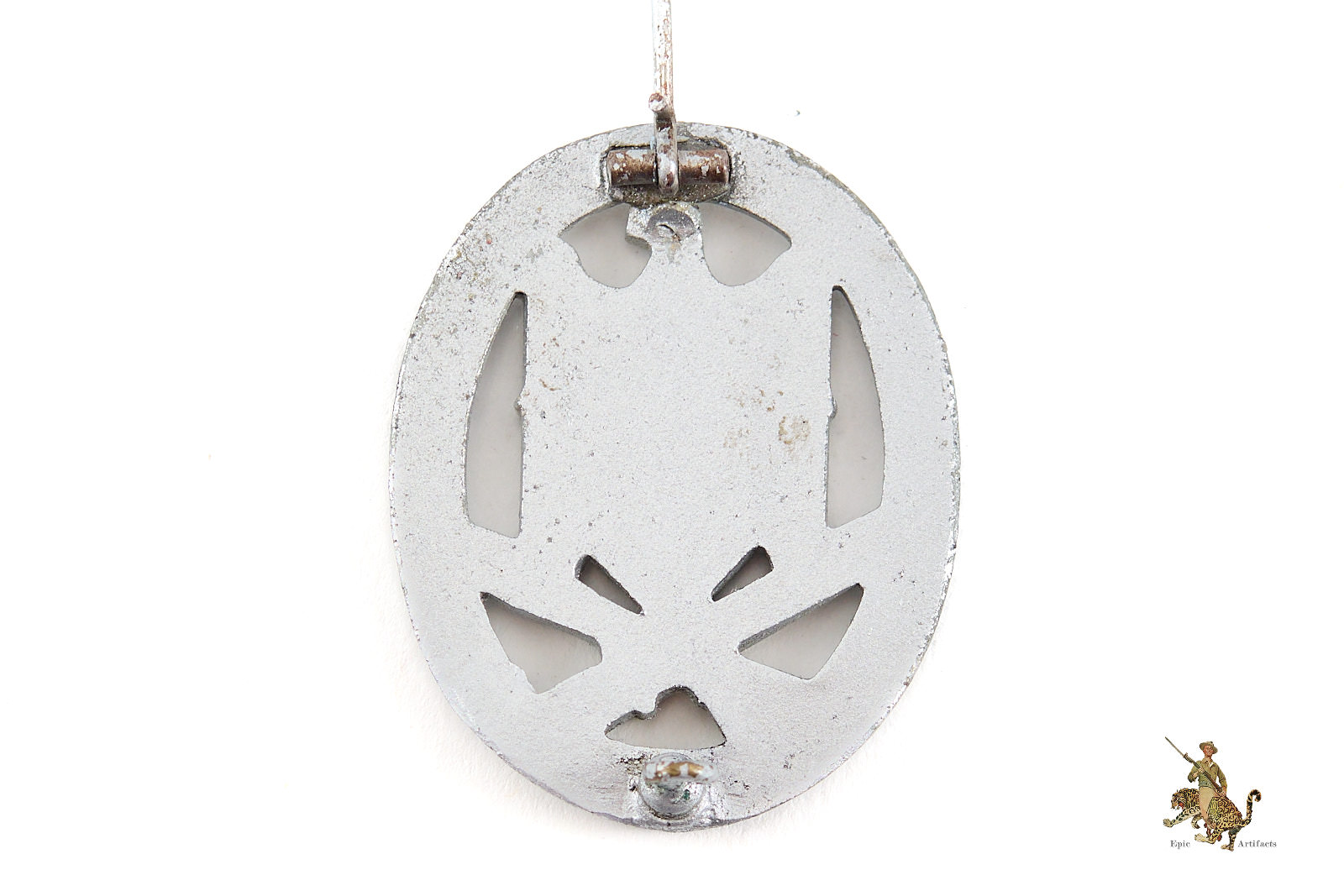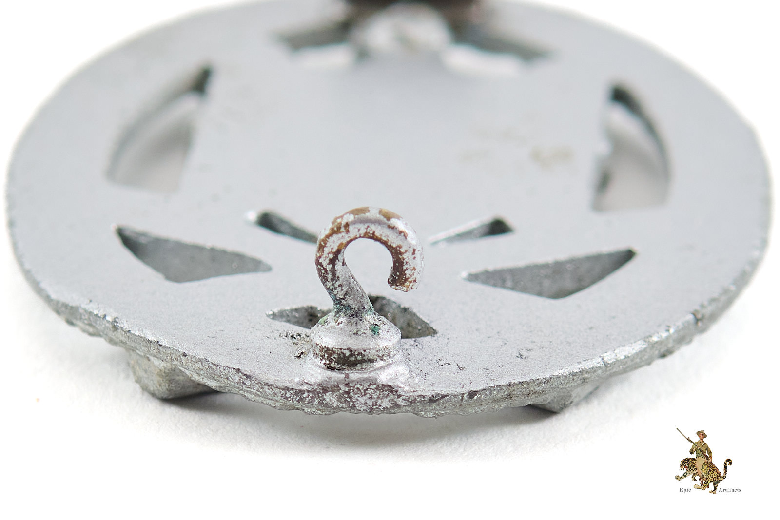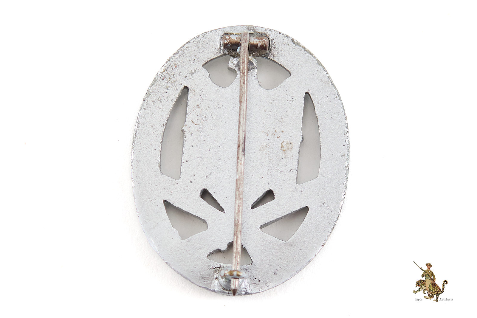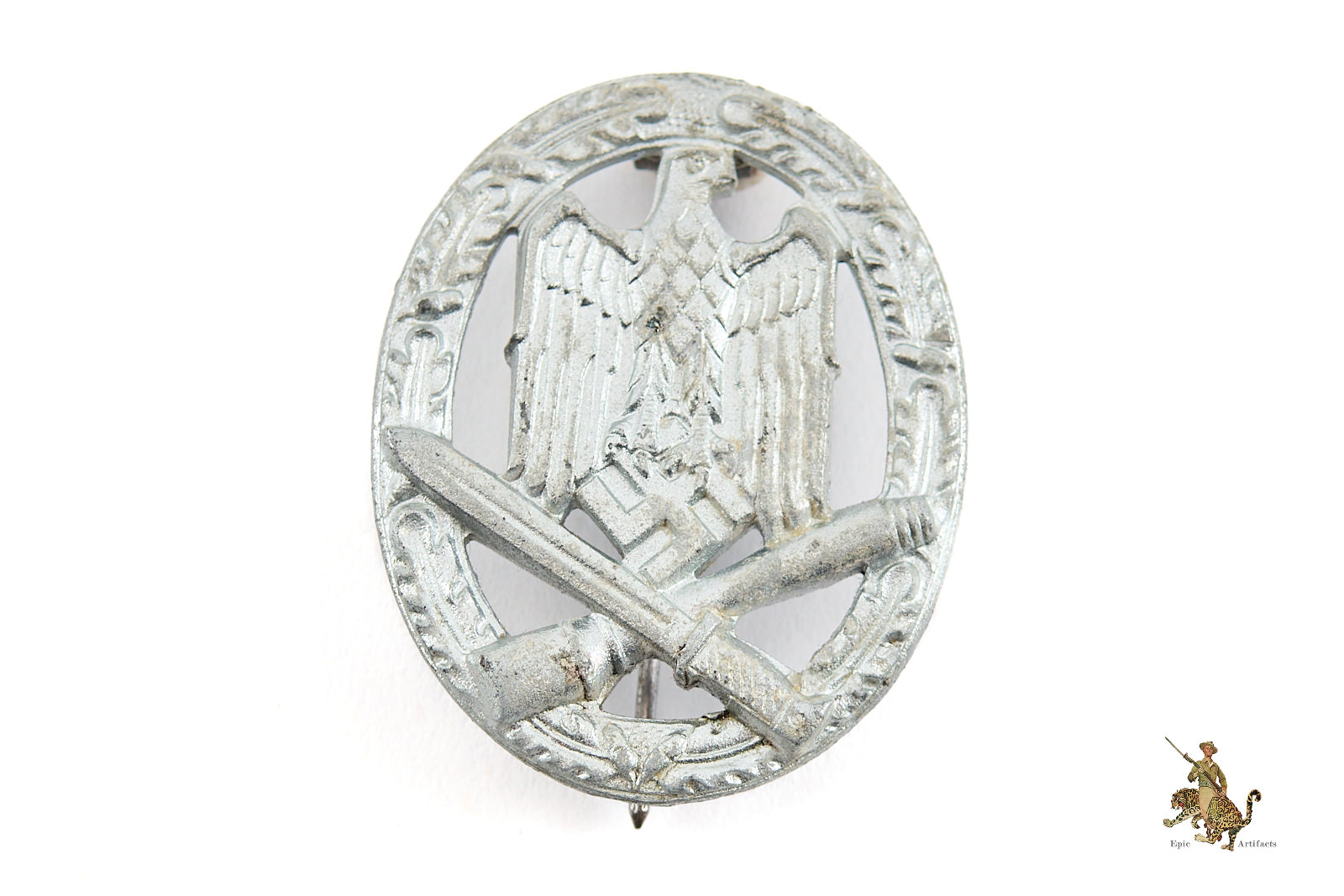 The Standard General Assault Badge consists of an Oakleaves wreath surrounding a large National Eagle grasping the swastika with crossed bayonet and stick grenade underneath. The General Assault Badge can be found in several different base metals such as Brass, Copper Coated Aluminum, Copper Coated Zinc, and Zinc. The use of the different types of base metal was directly impacted by the war as it progressed. Shortages forced manufacturers to switch from quality base metals like brass to lower quality base metals like zinc.