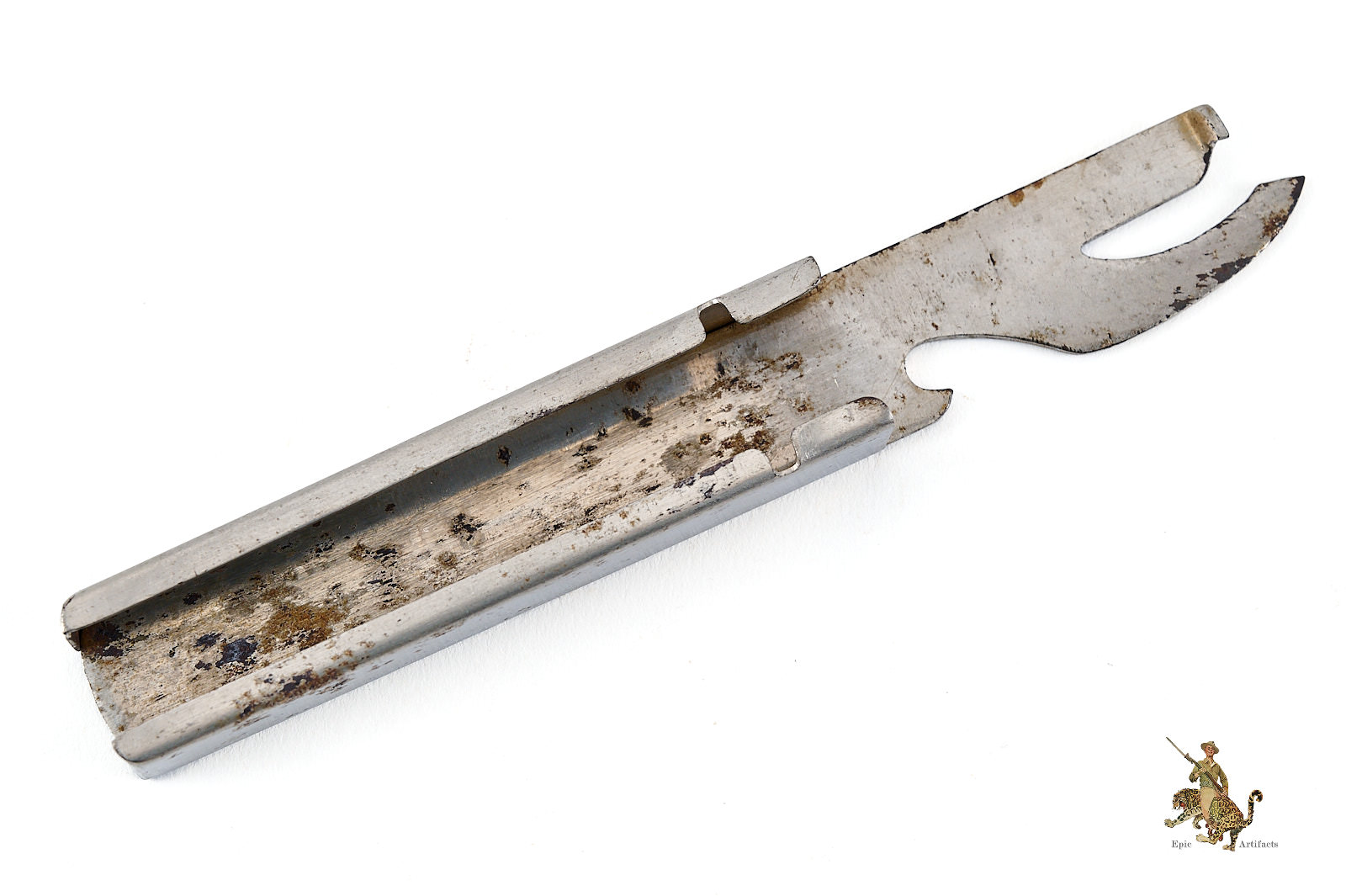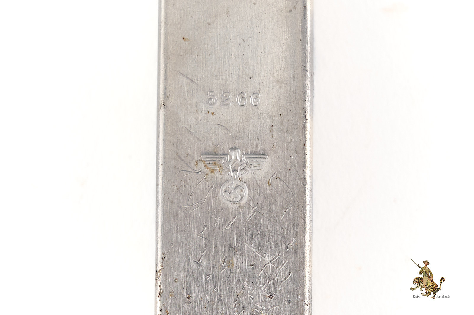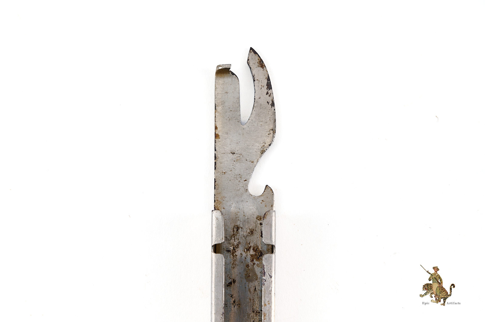 Product Description: An original German Heer Mess Utensil Can Opener marked 5266. This can opener comes from the standard issue field equipment of the German Army during the Second World War, manufactured to meet military specifications for durability and compact use.
