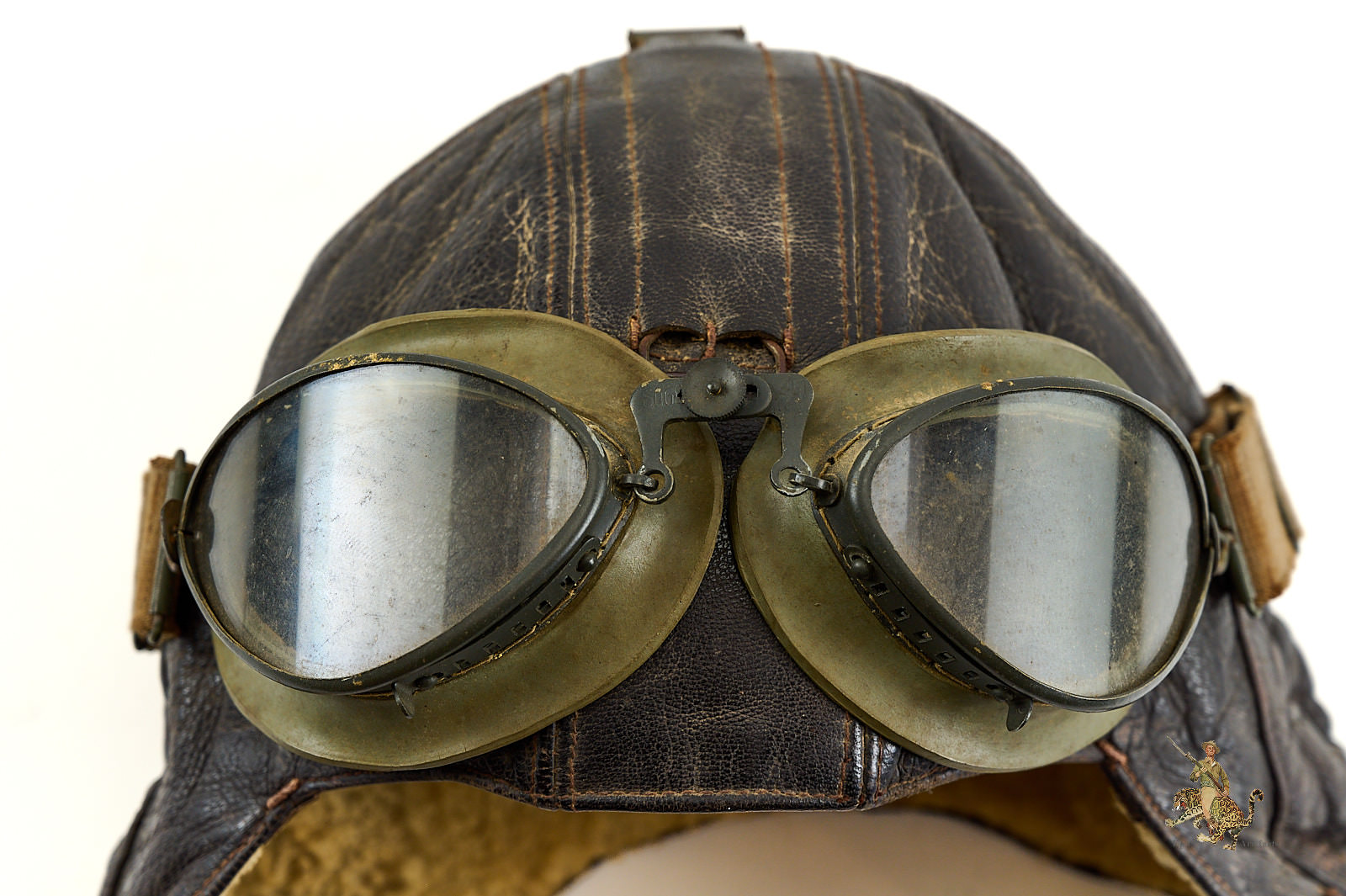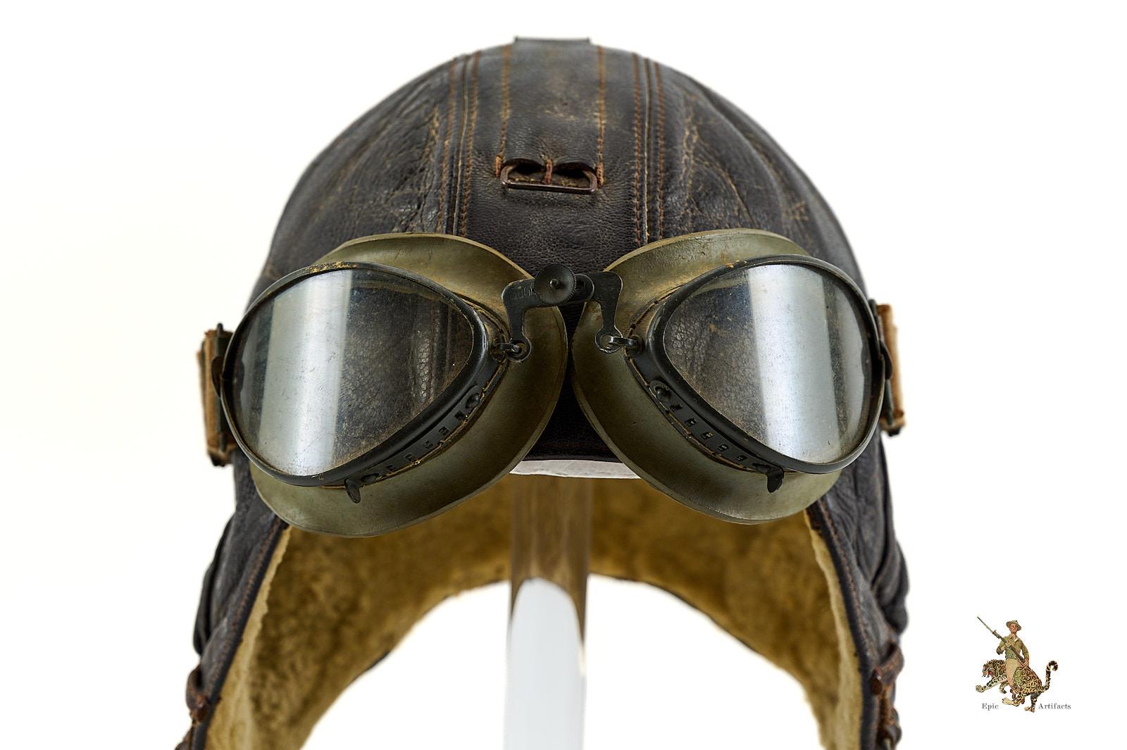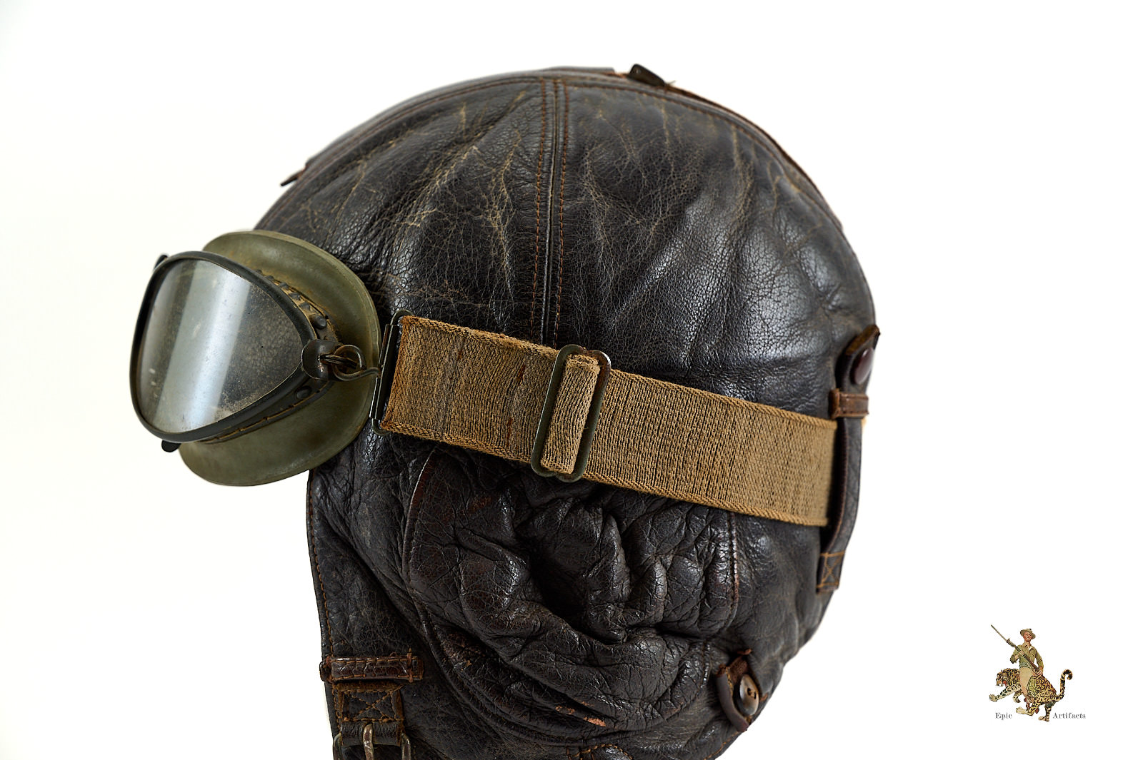 Overall, this German Leather Flight Cap with Goggles presents as a superb and highly displayable Luftwaffe flight ensemble, combining strong visual appeal with outstanding preservation.