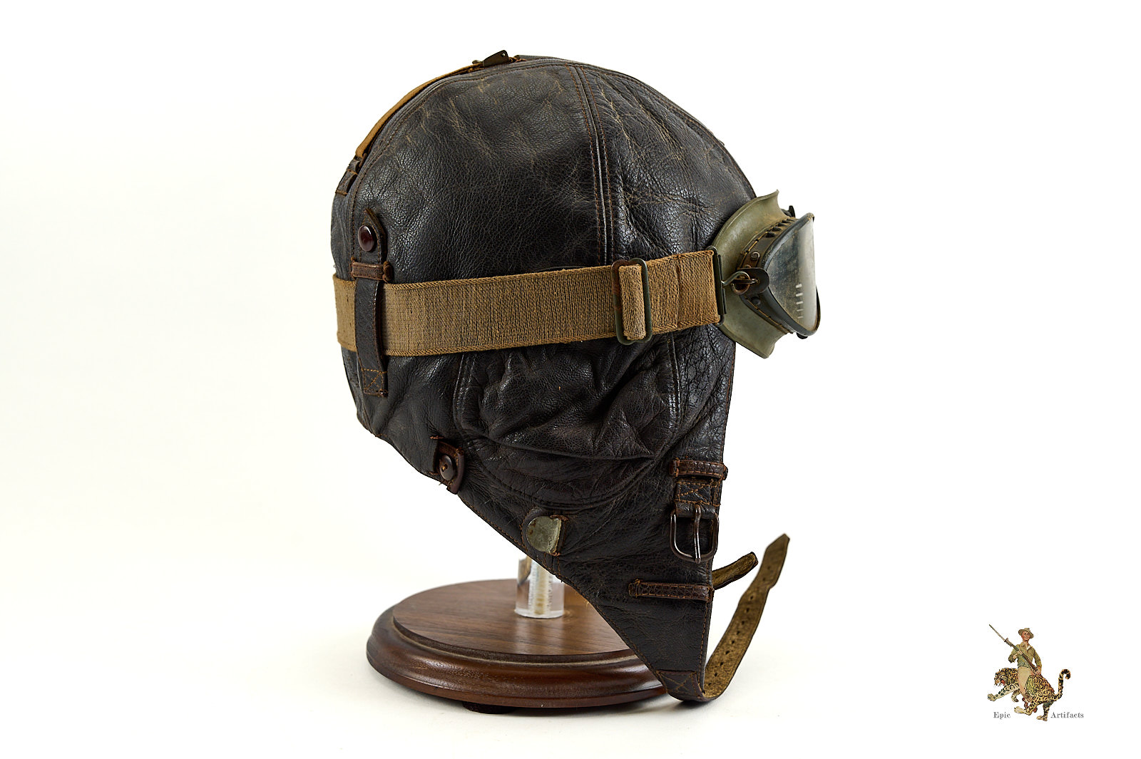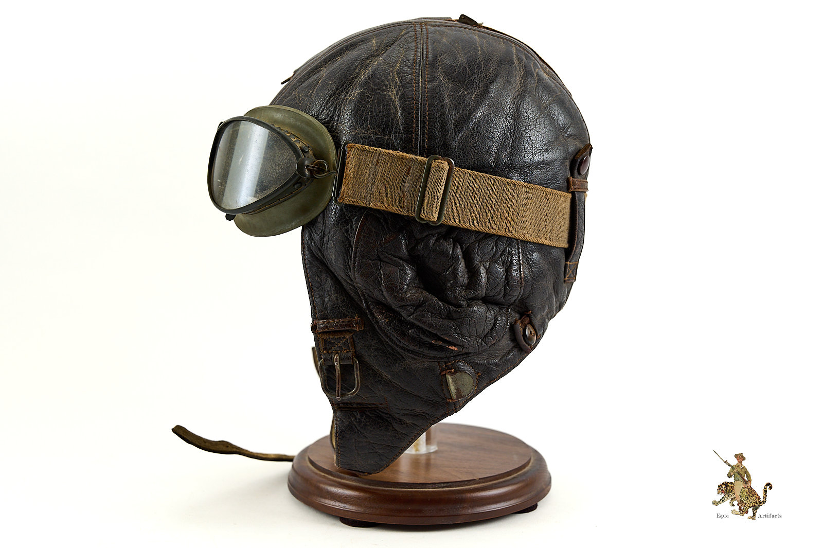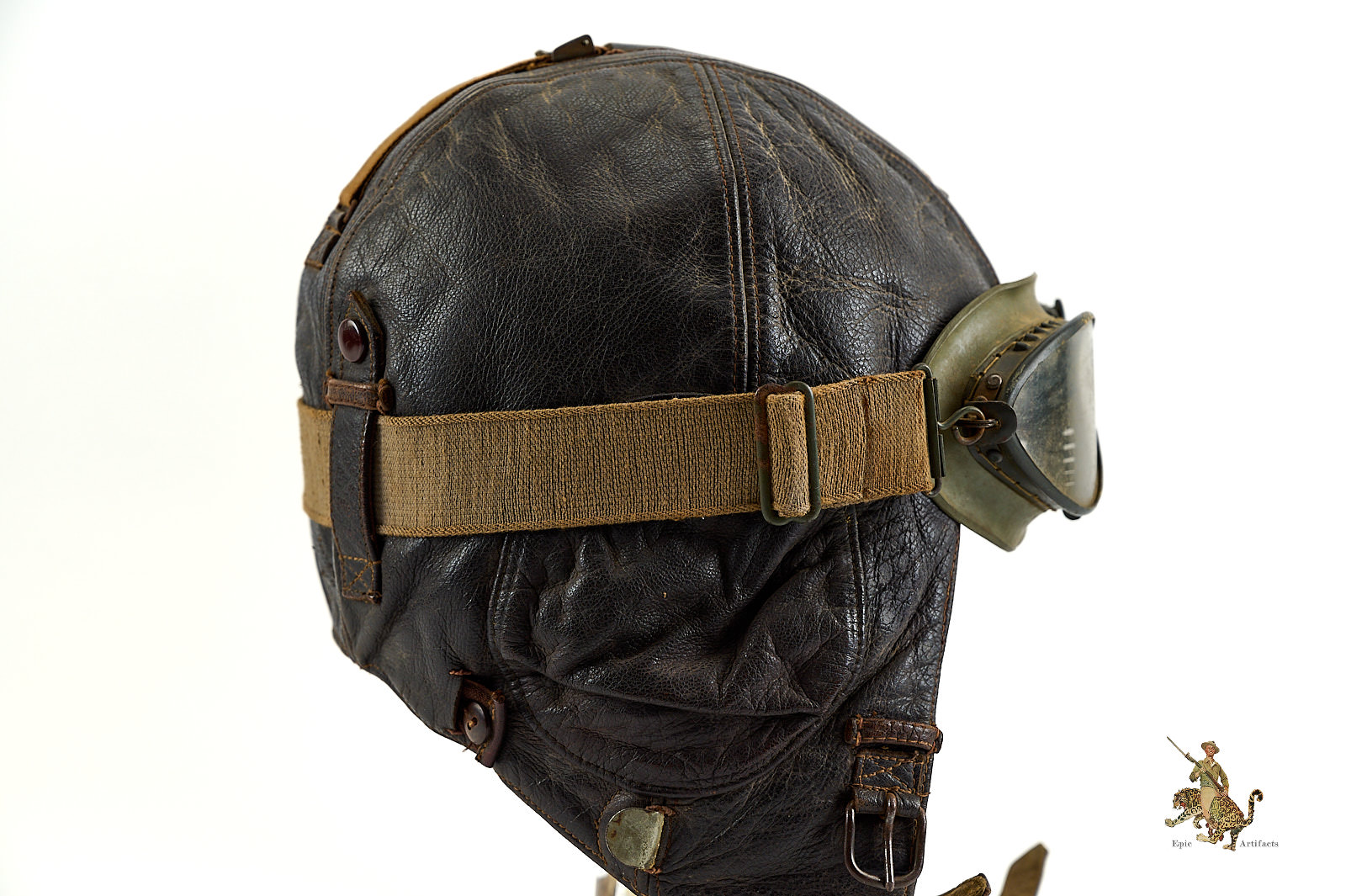 Overall, this German Leather Flight Cap with Goggles presents as a superb and highly displayable Luftwaffe flight ensemble, combining strong visual appeal with outstanding preservation.