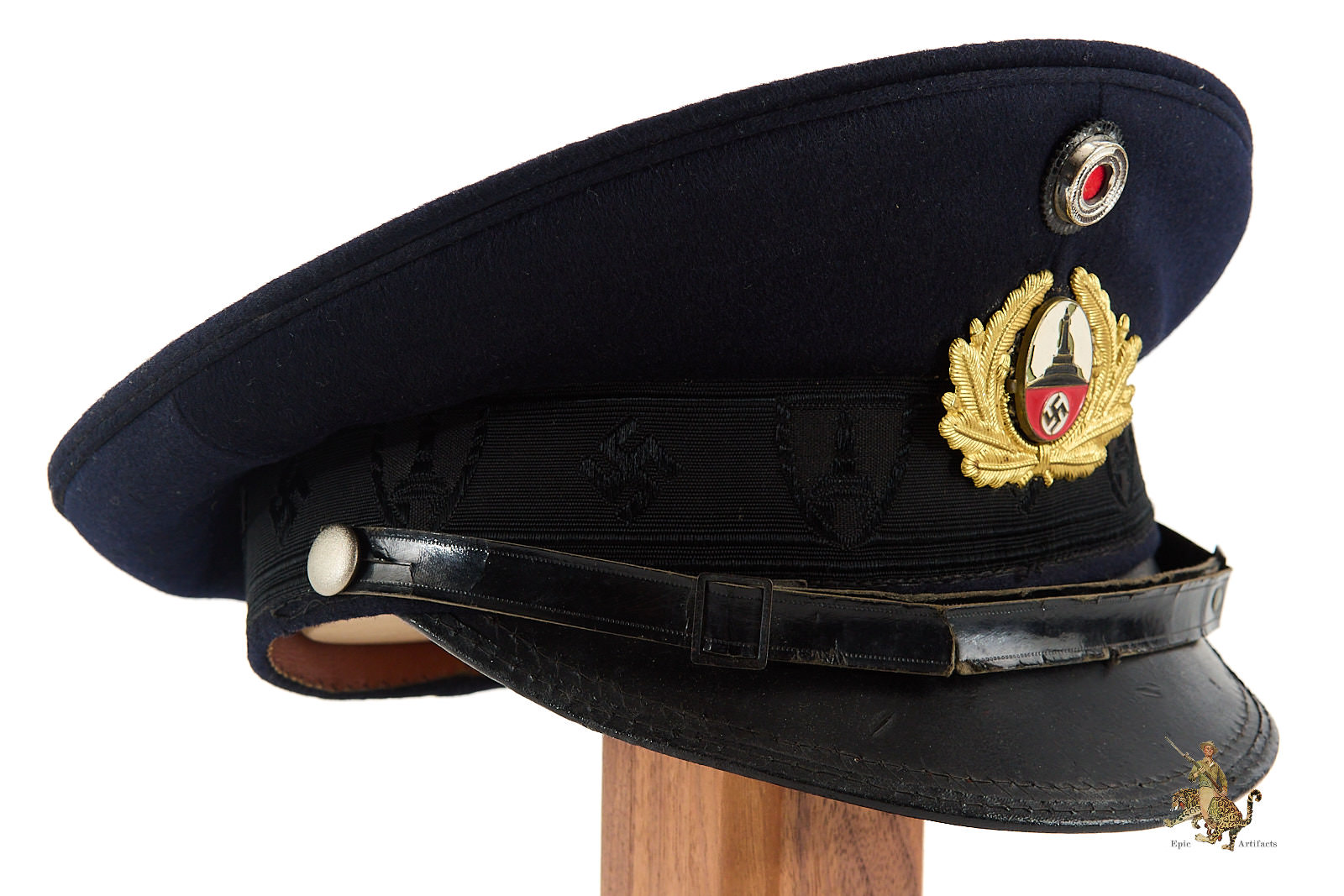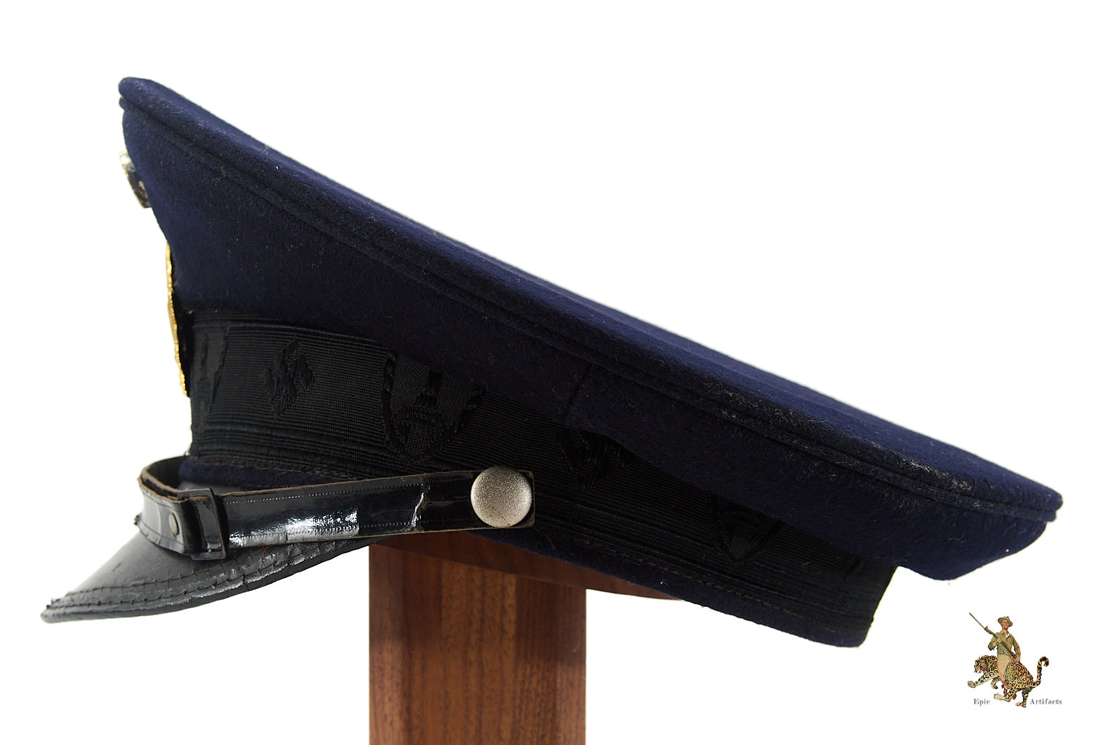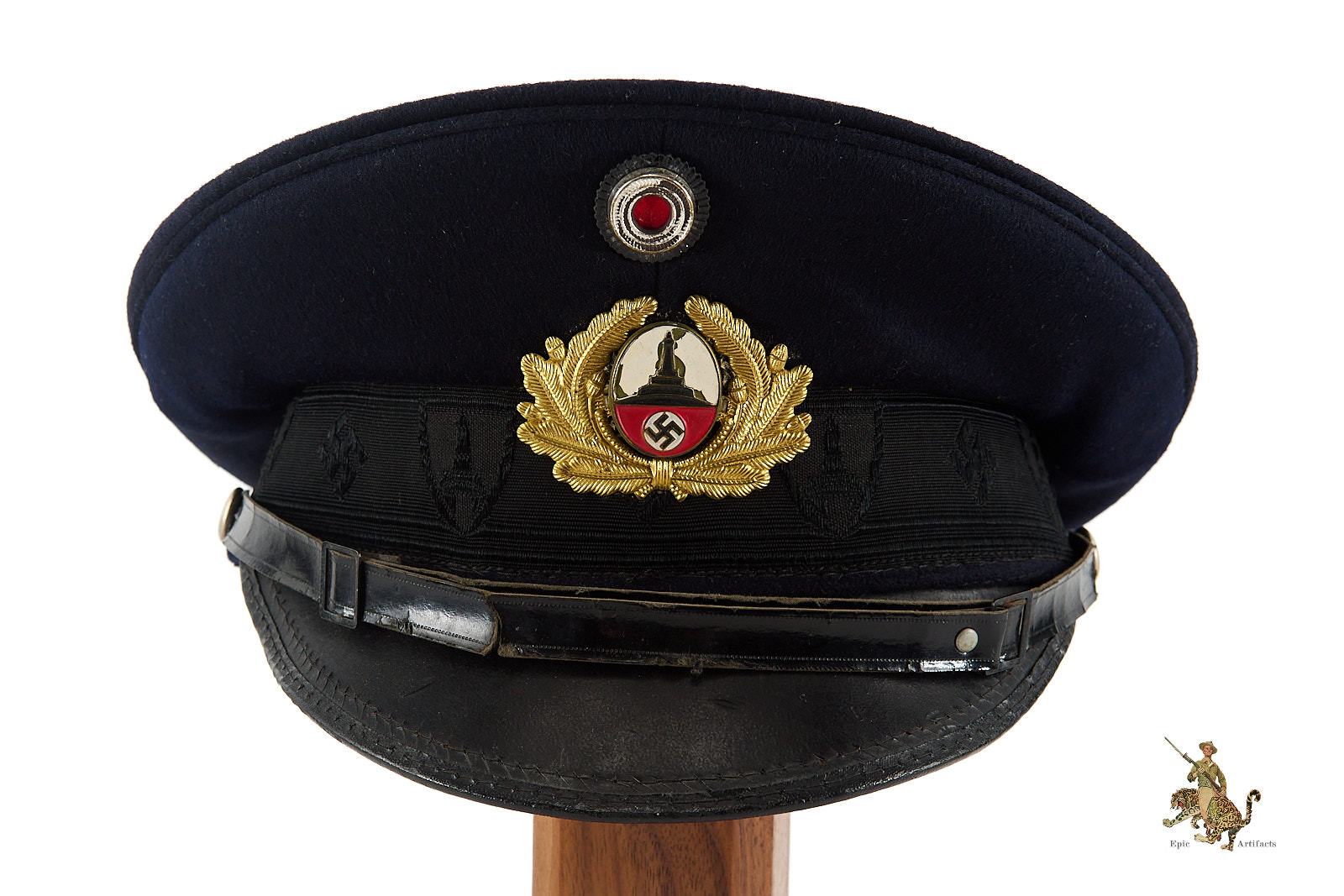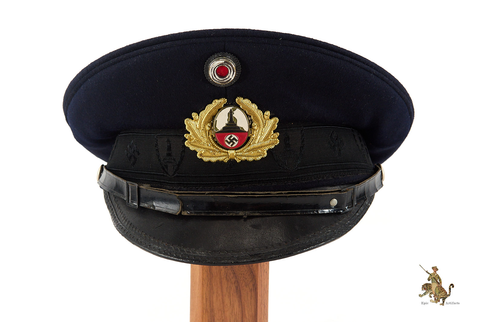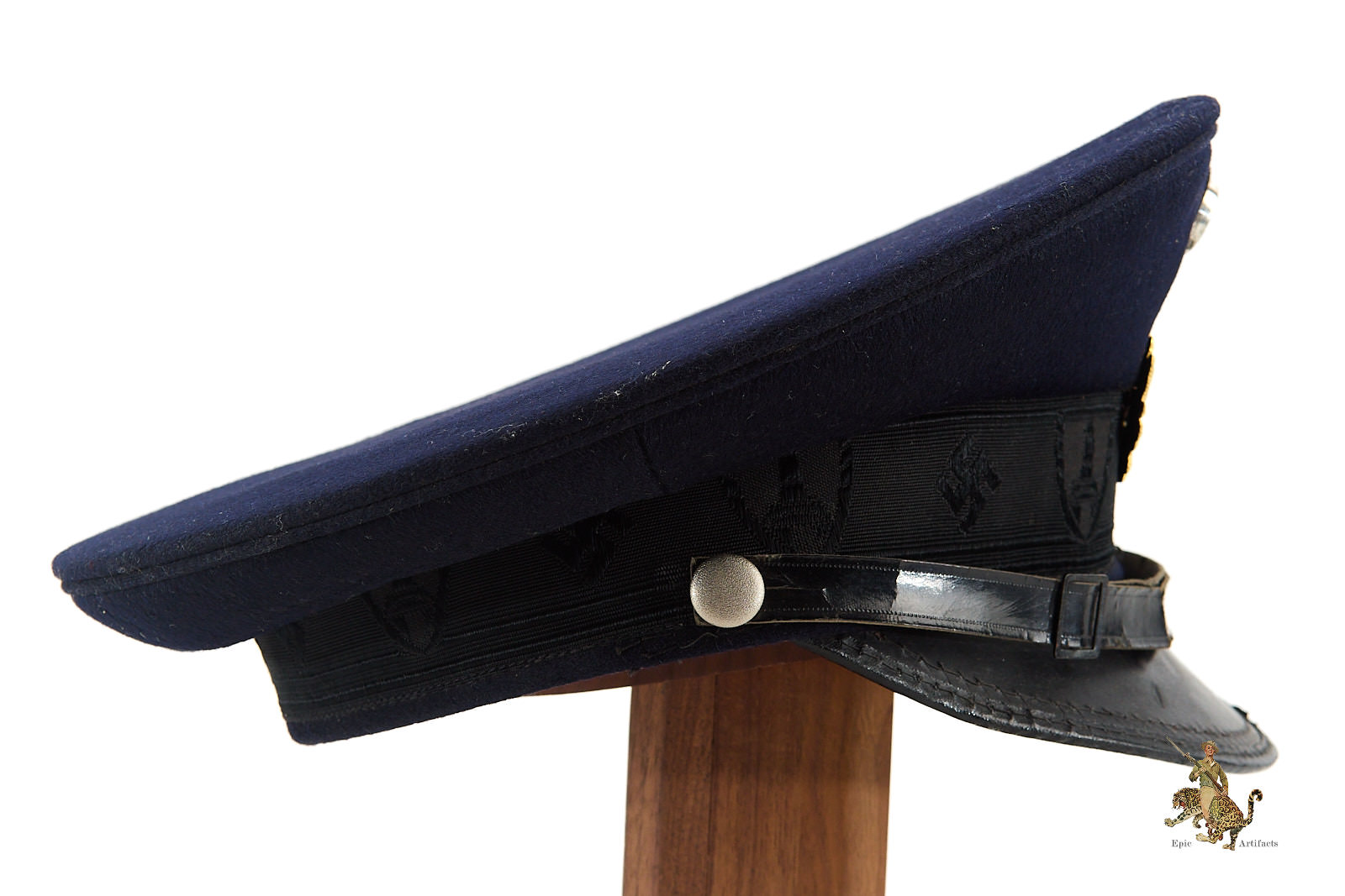 Product Description: A well-preserved German Veterans Kyffhäuserbund Visor Cap, presented in notably strong condition for its age and retaining a refined, period appearance. The dark cloth body remains clean and structurally sound, with only a few minor moth nips discreetly confined beneath folds and not immediately visible when displayed.