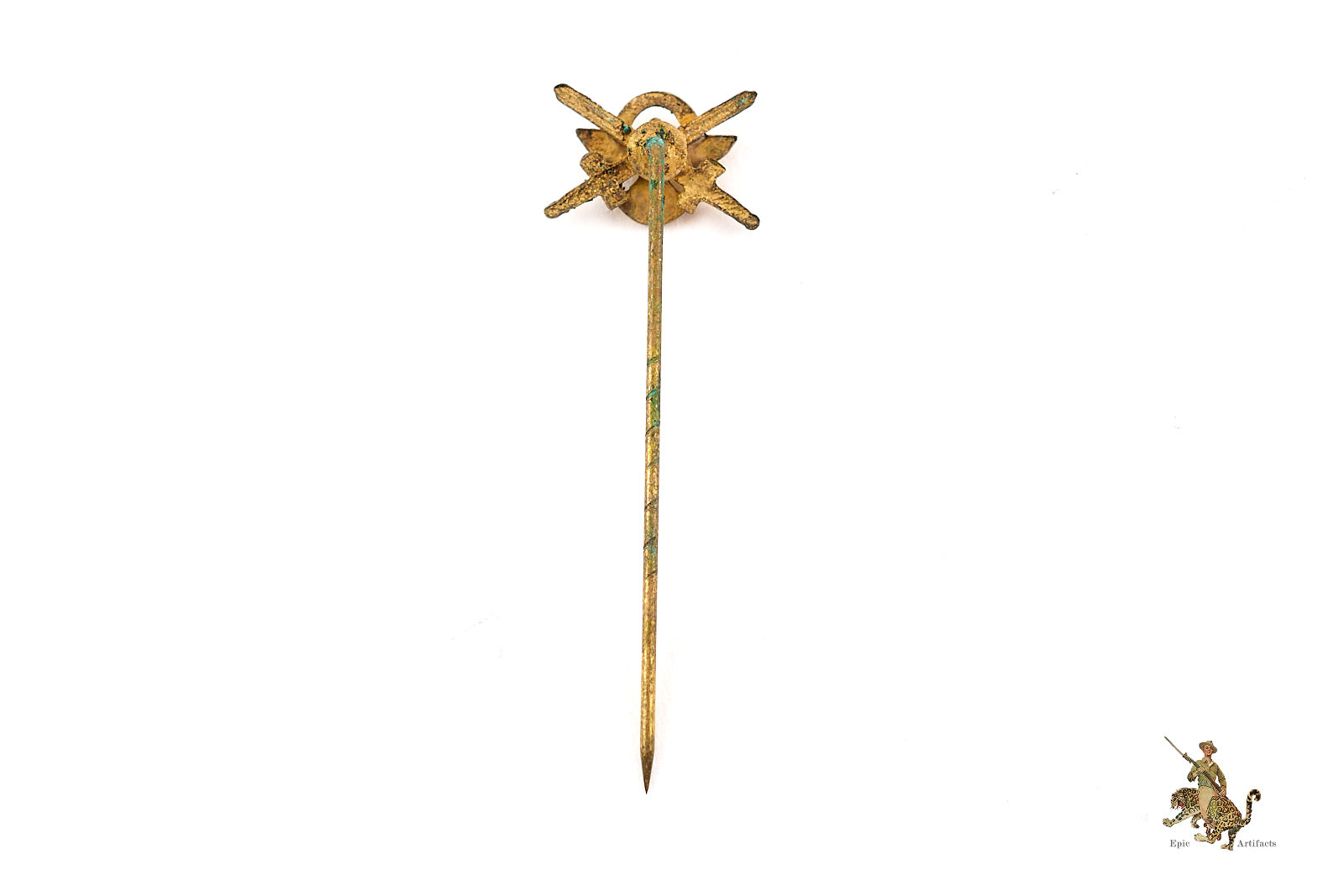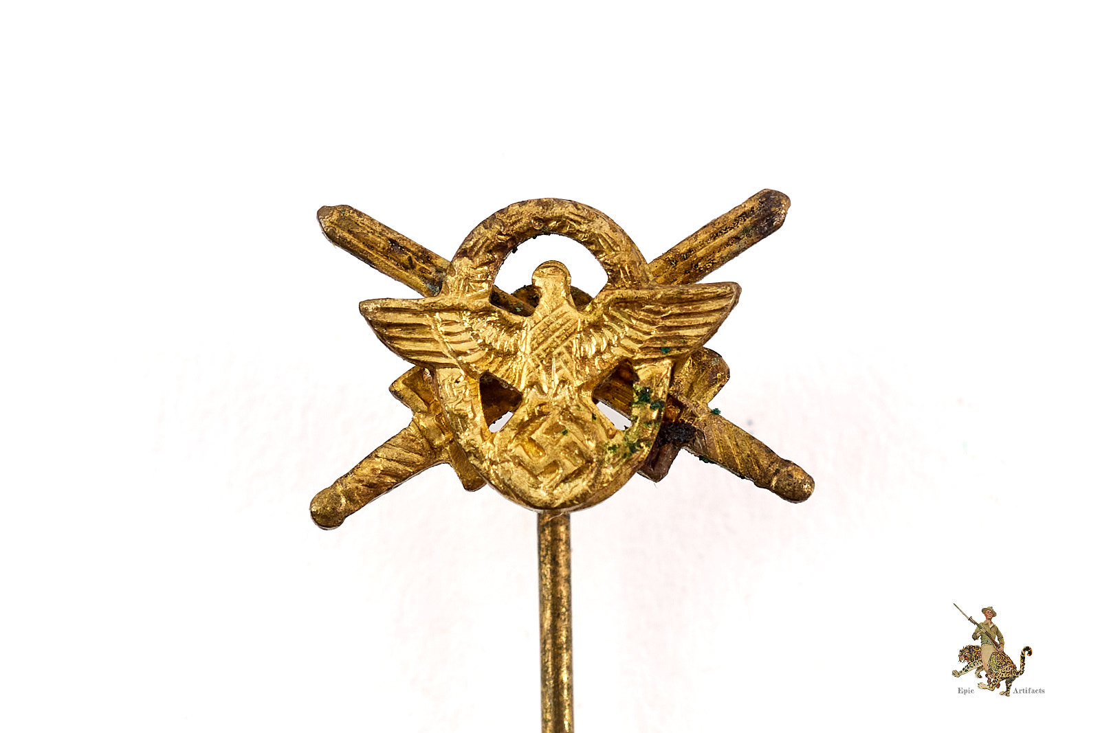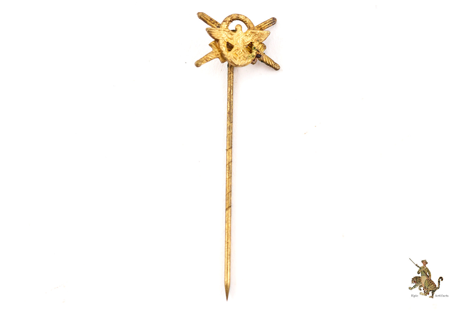 Historical Description:In Germany, during and between the World Wars, stickpins were generally made for wear on civilian clothing, by either men or women. Whereas most civil and military awards intended for uniform wear were in the form of medals or pin-on badges, the simple stickpins were mostly for adorning lapels of suits. A huge variety of these stickpins were produced. There were pins that anyone could buy, that were patriotic or showed support for some specific cause. There were also various membership pins for military, paramilitary, civil and political organizations. Military and civil awards were also produced in stickpin versions. These took the form of miniature versions of the awards, and could either show one individual award, or all the awards that one individual had received. In many cases, German stickpins were made with the same standard of quality as the full-size medals and badges.