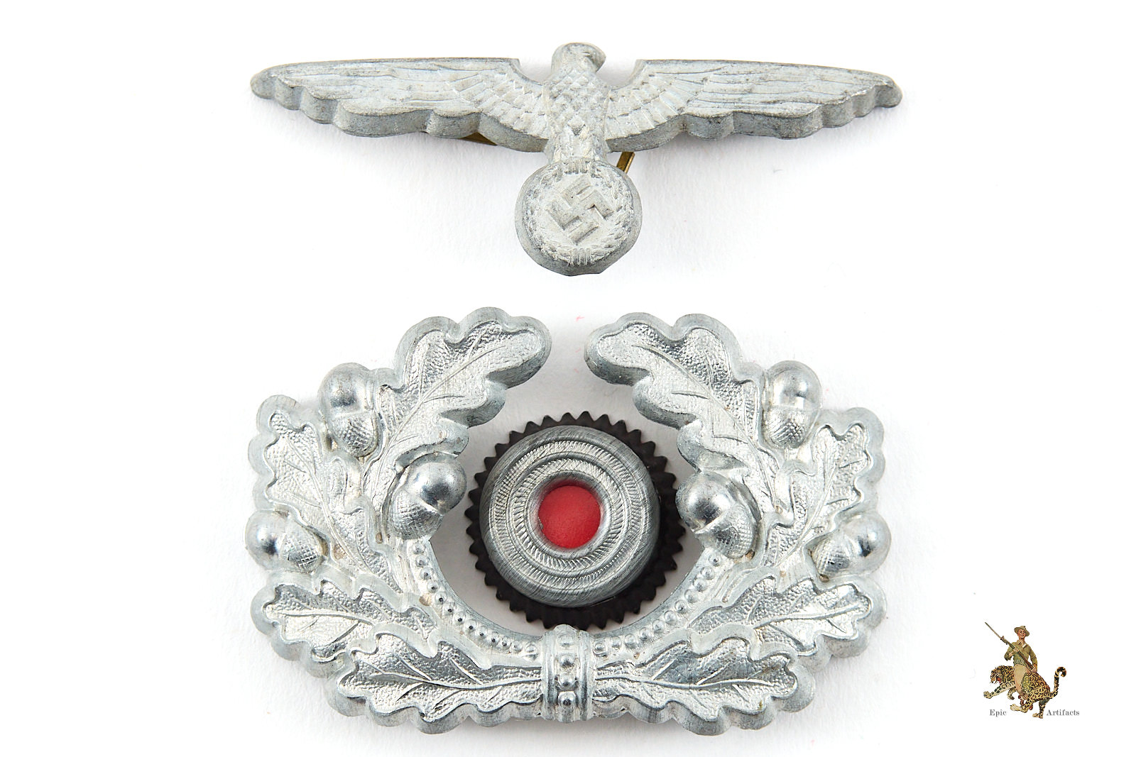 Increasingly difficult to source as a well-matched grouping, this Heer Army Visor Eagle Wreath and Cockade Set represents an excellent opportunity for the discerning collector seeking a quality cap insignia set with strong eye appeal and superior preservation.