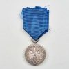 Product Description: This Heer Four Year Long Service Award is a nice, early quality medal. This one was awarded for 4 years of service in the German Armed Forces. The original silver finish is completely intact, with attractive, slight age toning. The award is crisply struck, with nice smooth surfaces, and all of the original detail is intact on both sides. There are no traces of actual wear, and only some extremely minor, tiny marks, mostly to the edges. The original suspension ring is intact, and unmarked. This Heer Four Year Long Service Award is complete with a crisp piece of neatly folded light cornflower blue ribbon. The ribbon appears to have had an eagle device applied to the front, and a pin fitting for affixing it to a uniform on the reverse; these are missing. This is a nice example of this attractive award, that remains in excellent condition.