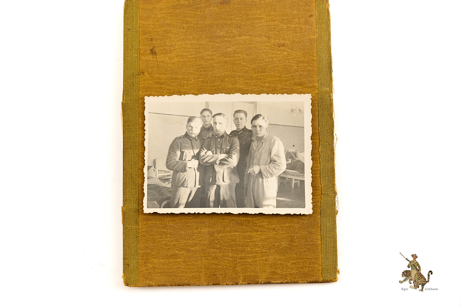 The photos shows the Soldbuch owner Beckermann photographed with 4 other men, a few of which are wearing SS insignia. Photo is in excellent condition and has some personalized writing on back as shown.