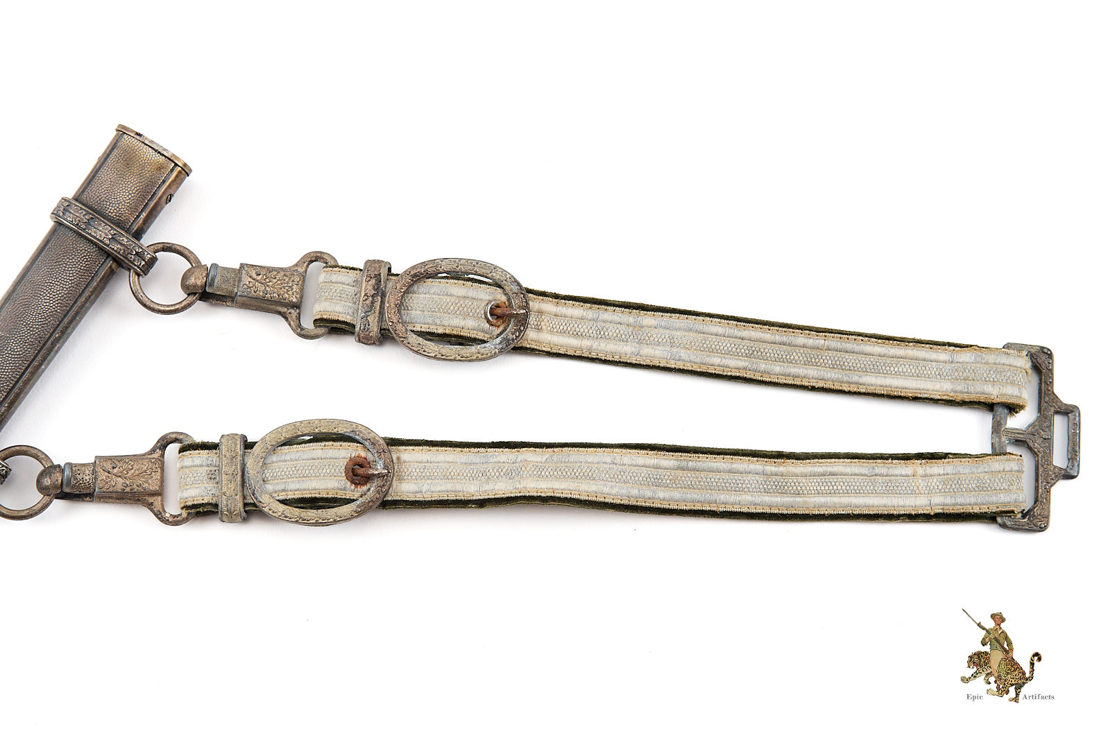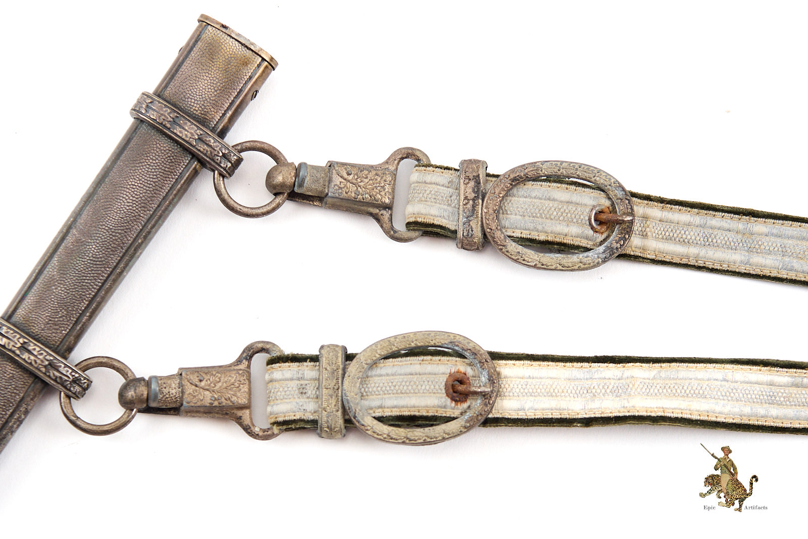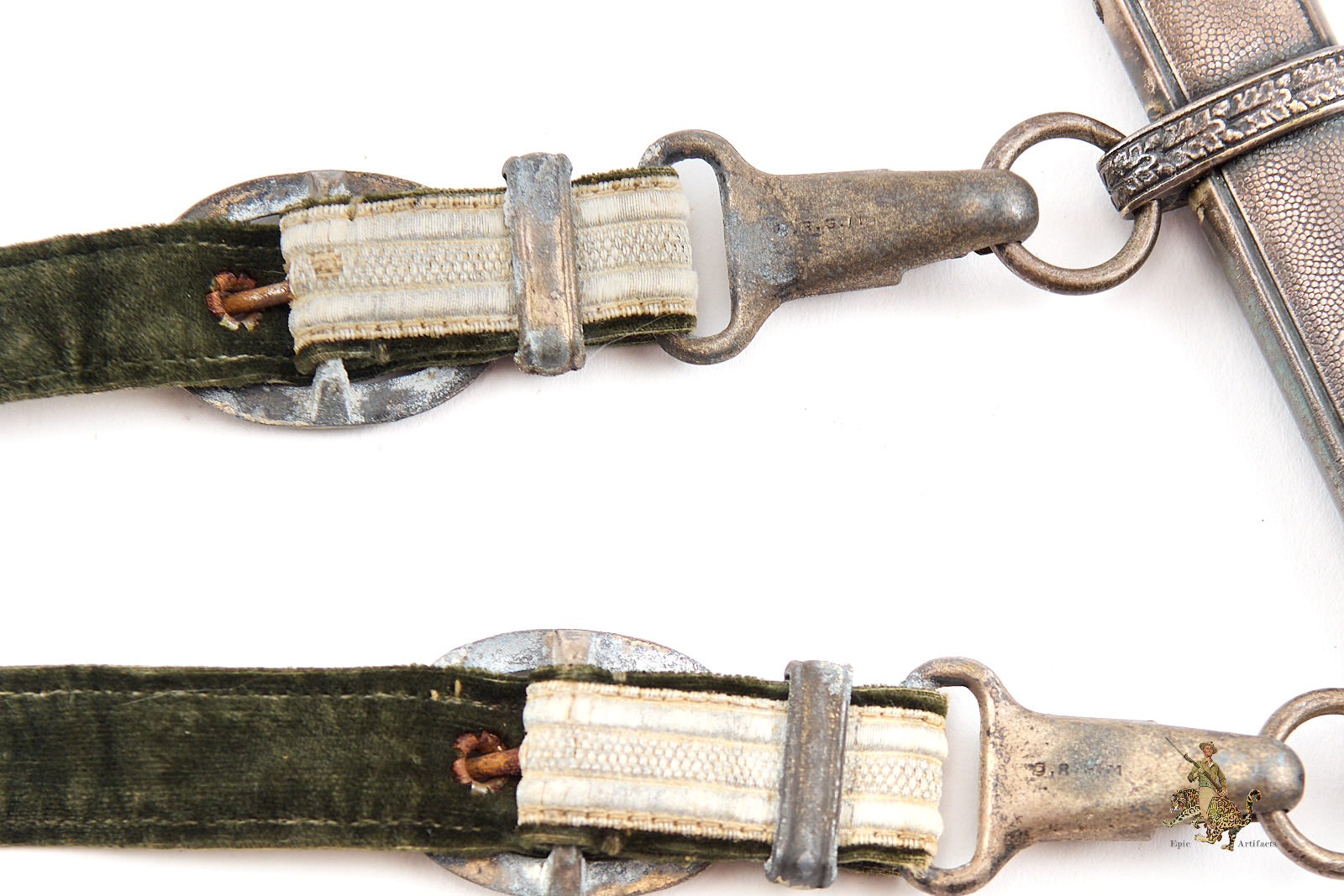A highly attractive ensemble, this Heer Klaas Army Dagger – Hangers & Portepee presents strong visual appeal and craftsmanship, and stands as a well-preserved example suitable for an advanced collection of edged military accoutrements.