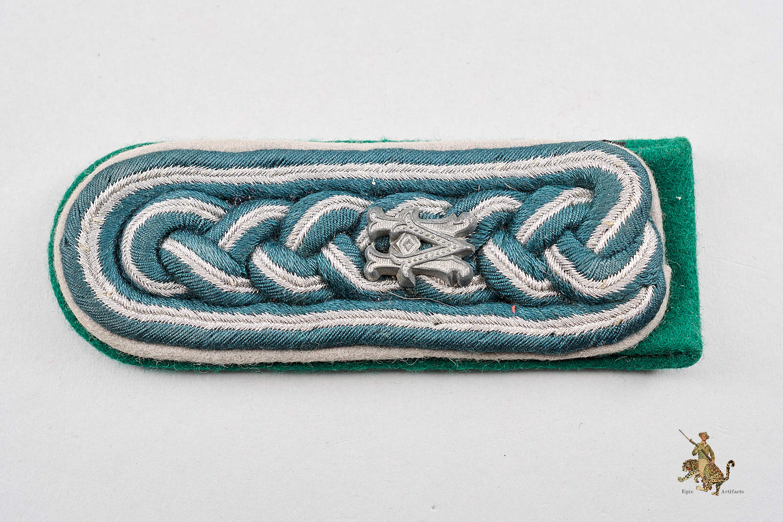 Historical Description: The German military as well as civil, political and paramilitary organizations traditionally used shoulder straps and shoulder boards as uniform insignia, to denote the rank or function of the wearer. After the Nazi rise to power in 1933, there was a tremendous increase in the number of groups and organizations in Germany wearing officially sanctioned uniforms, and most of these organizations used shoulder straps and shoulder boards as a component of their regalia. The exact color of piping utilized, the material color, the type of braid or Tresse that was used, and the number or location of devices and pips present, allow shoulder boards to be tracked to the exact organization that issued them, and often yield even further detail such as the wearer’s rank and even his specific military unit. Normally worn in pairs, the boards were in some cases plain, and in other cases adorned with detailed embroidery or metal emblems. Some shoulder boards were made in the millions, others were specific to a single individual.