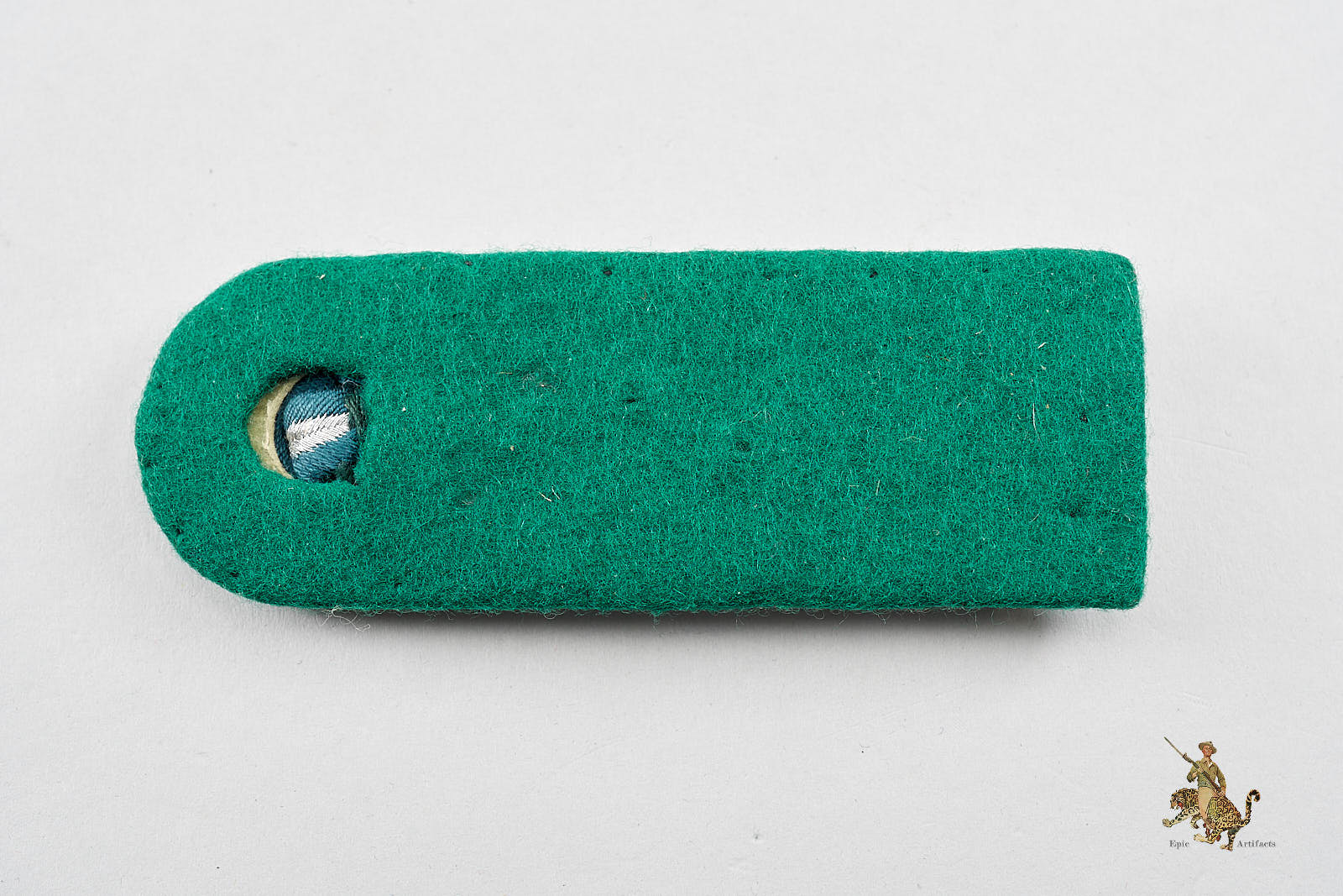 Product Description: This Heeresverwaltung Heer Administration NCO Shoulder Board presents in excellent condition with minor wear.  Board features a green Waffenfarbe wool underlay retaining strong color. The green/silver braid remains intact and in good condition with HV Cypher mounted centrally. Shoulder board remains in excellent condition with no mothing, and only light wear from age.   An excellent, field-worn example of Heeresverwaltung Administration NCO Shoulder Board insignia from WWII, combining authenticity and visual appeal.