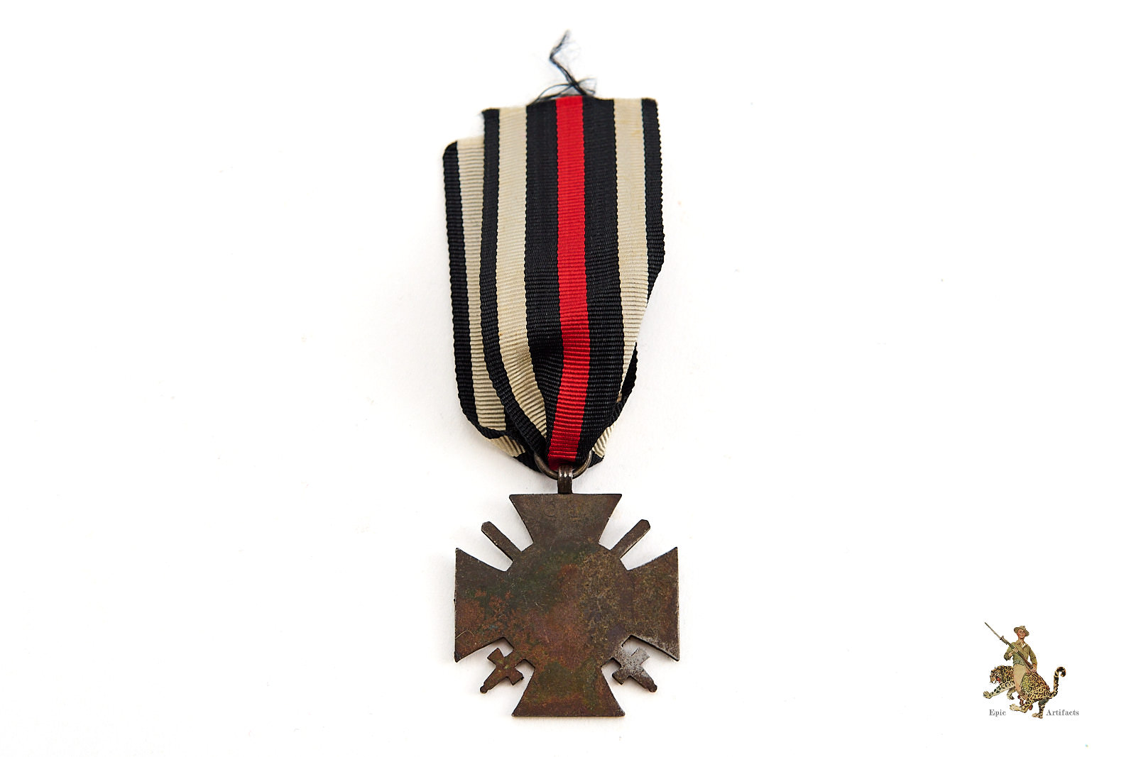 Product Description: A Hindenburg Cross Combatant, marked on the reverse “O.1.”, offered as shown. The medal remains in good condition, exhibiting areas of light corrosion across the surface, consistent with age and period storage. The details remain clear and well-defined.