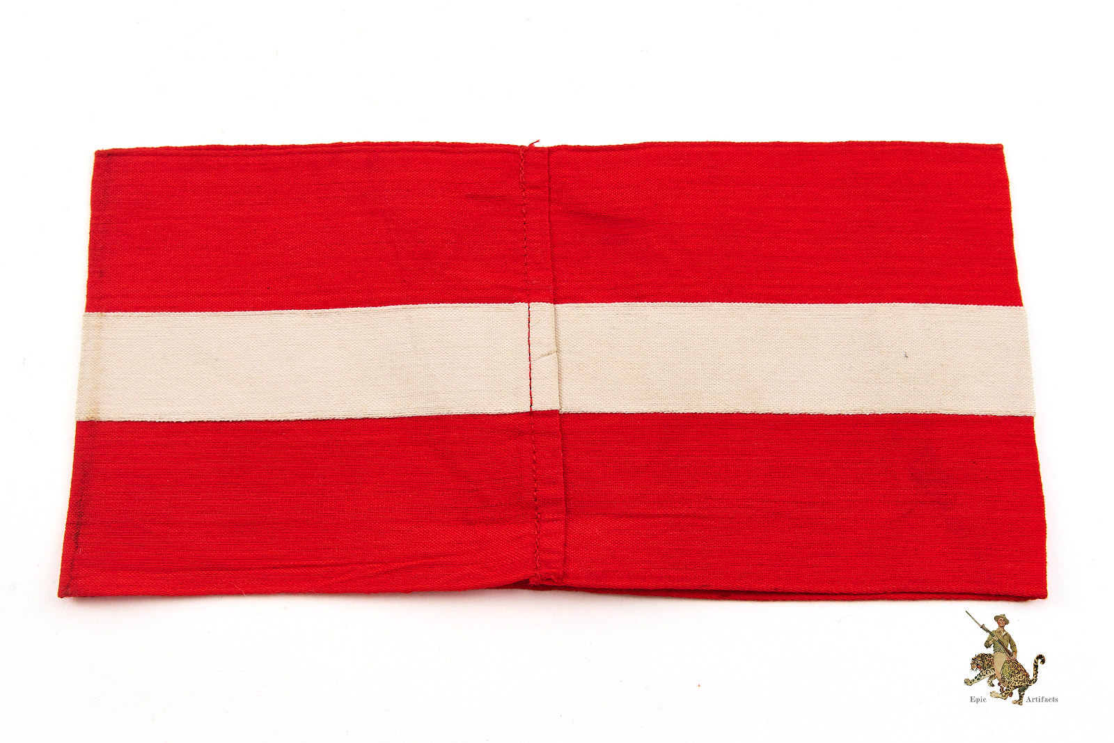 Historical Description: Nearly every military, civil, political and paramilitary organization in existence during the Third Reich used armbands. Armbands were worn on military and civilian uniforms and also on civilian clothes, from suit jackets to work clothing. They were used to denote membership in organizations, to indicate a specific role or function of the bearer, and as insignia of rank. Many organizations would change the design of their armbands over time, which added to the variety produced. These were manufactured in countless variations, ranging from simple printed bands to elaborately hand-embroidered pieces of the highest quality. Some Nazi armbands were worn by all members of large organizations and were made by the millions. Others were intended for use at a specific time and place and were unique. Many types were made in very limited numbers. Some bore metal insignia or special identifiers that indicated the wearer’s rank, unit affiliation, or nationality. Armbands were sometimes but not always marked with ink stamps by the issuing authorities.