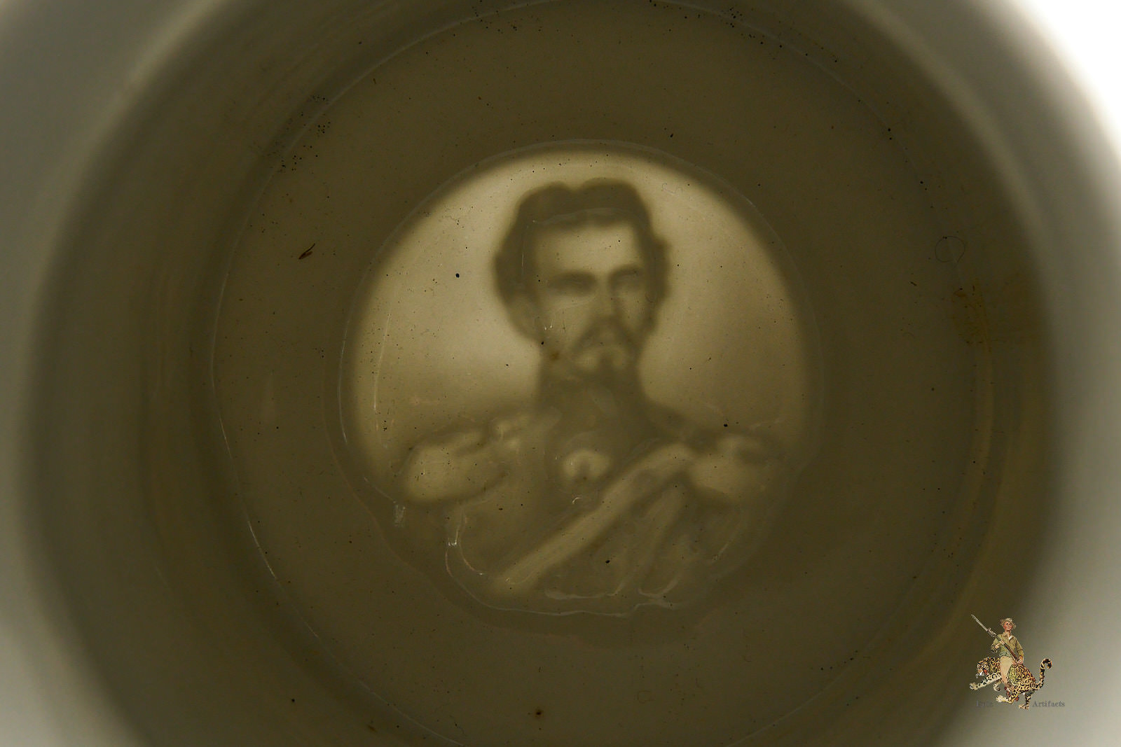 Product Description: A finely preserved IImperial Infantry Regiment No 13 Stein Named, named to Ludwig Lenz, 13th Infantry, covering the service period 1897-1899. Of .5 liter capacity, this example is crafted in porcelain and hand-painted in vibrant colors, depicting detailed scenes of regimental life—field exercises, barracks scenes, and patriotic motifs of the German Empire. The obverse features a meticulously painted unit roster, listing comrades from Lenz’s company, a charming and personal touch typical of these commemorative service pieces. The bottom lithophane shows a single soldier portrait. Possibly Prince Ludwig.