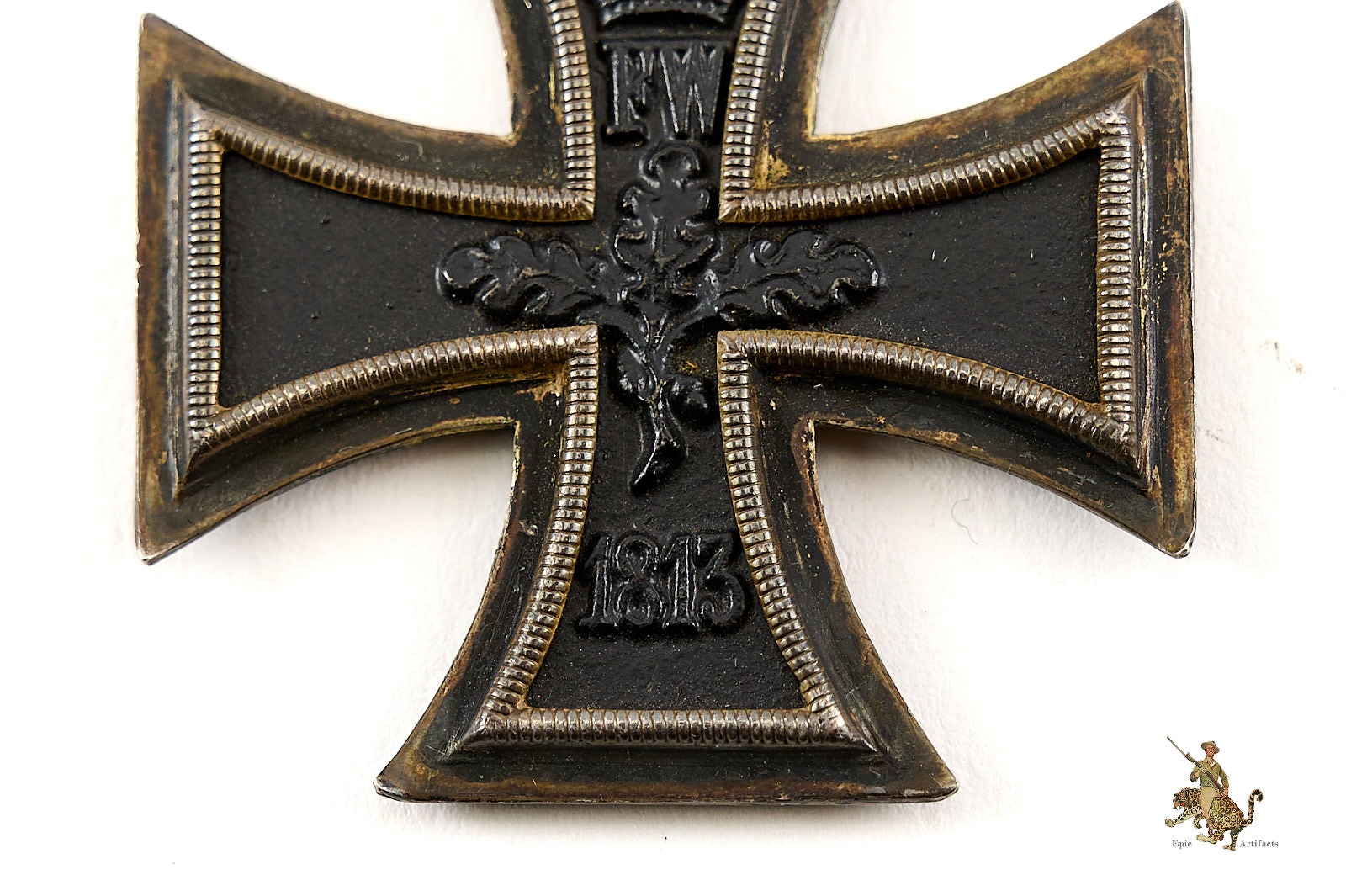 The obverse displays crisp detail to the raised 1914 date and “W” cipher beneath the Prussian crown, while the reverse bears the earlier 1870 date in commemoration of the Iron Cross’s origins. The silvered frame is beautifully toned, with warm patination along the outer edges providing an elegant contrast to the softer luster of the interior beading. Slight curling to the arm tips is noted, consistent with age and handling.