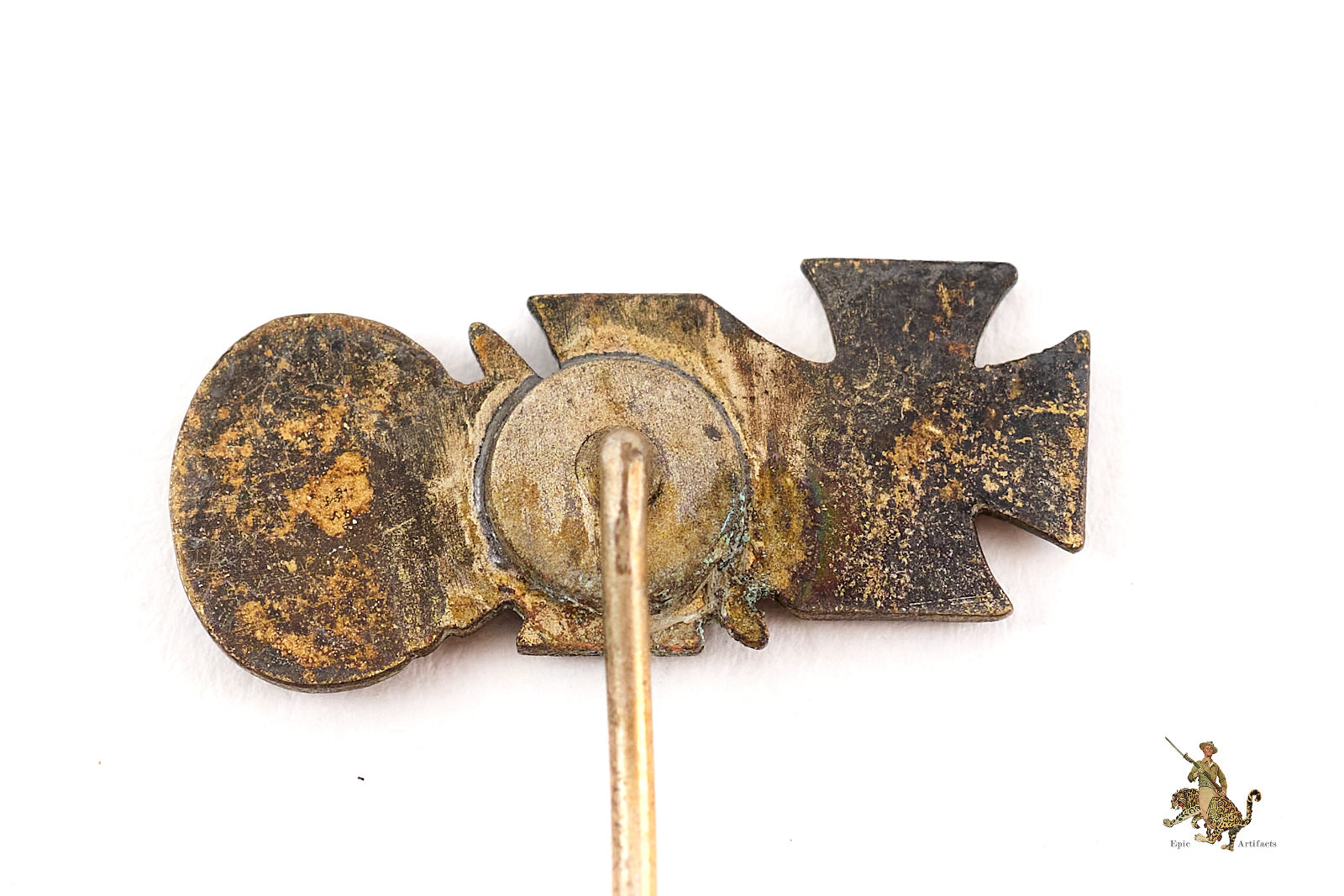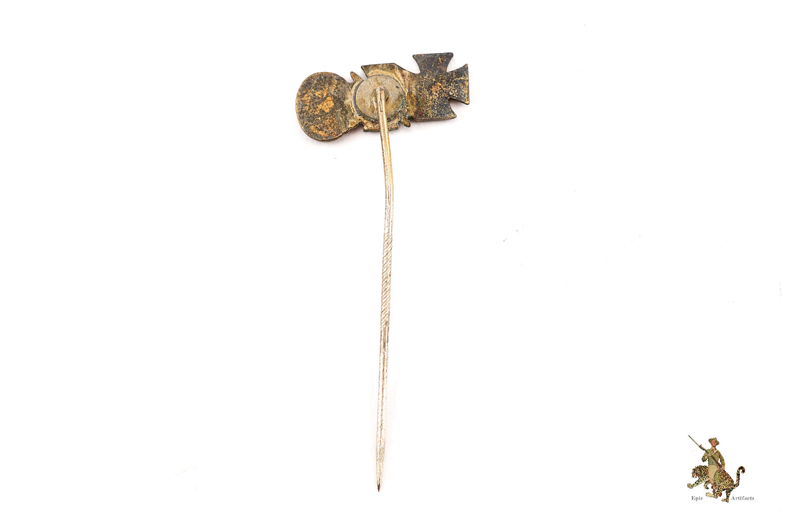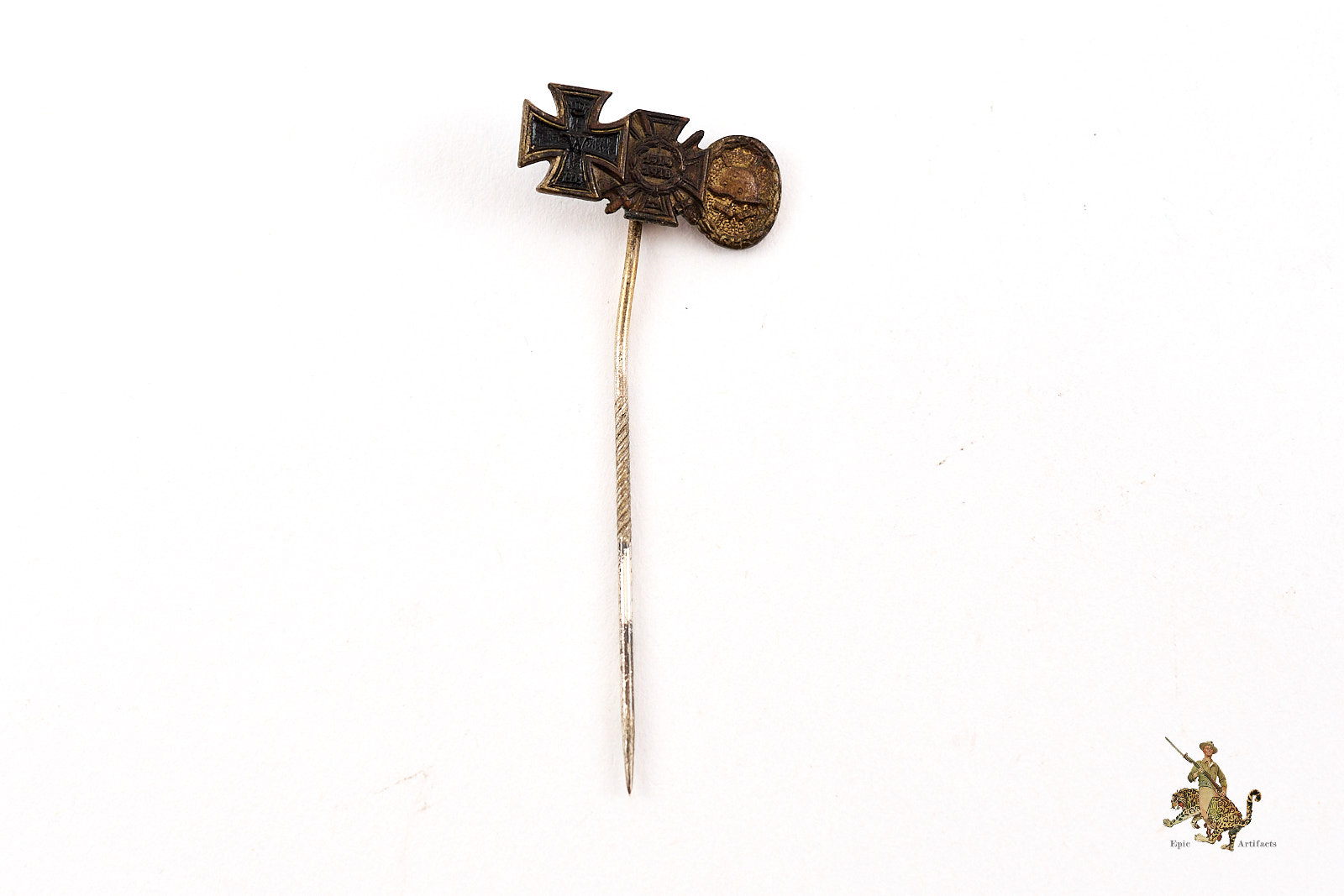 Historical Description:In Germany, during and between the World Wars, stickpins were generally made for wear on civilian clothing, by either men or women. Whereas most civil and military awards intended for uniform wear were in the form of medals or pin-on badges, the simple stickpins were mostly for adorning lapels of suits. A huge variety of these stickpins were produced. There were pins that anyone could buy, that were patriotic or showed support for some specific cause. There were also various membership pins for military, paramilitary, civil and political organizations. Military and civil awards were also produced in stickpin versions. These took the form of miniature versions of the awards, and could either show one individual award, or all the awards that one individual had received. In many cases, German stickpins were made with the same standard of quality as the full-size medals and badges.