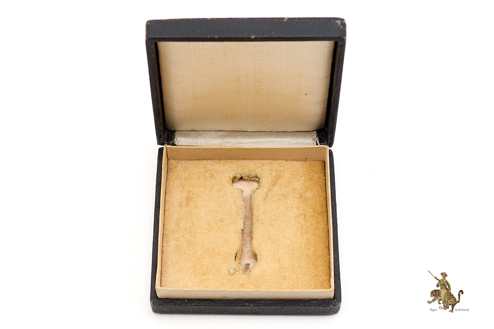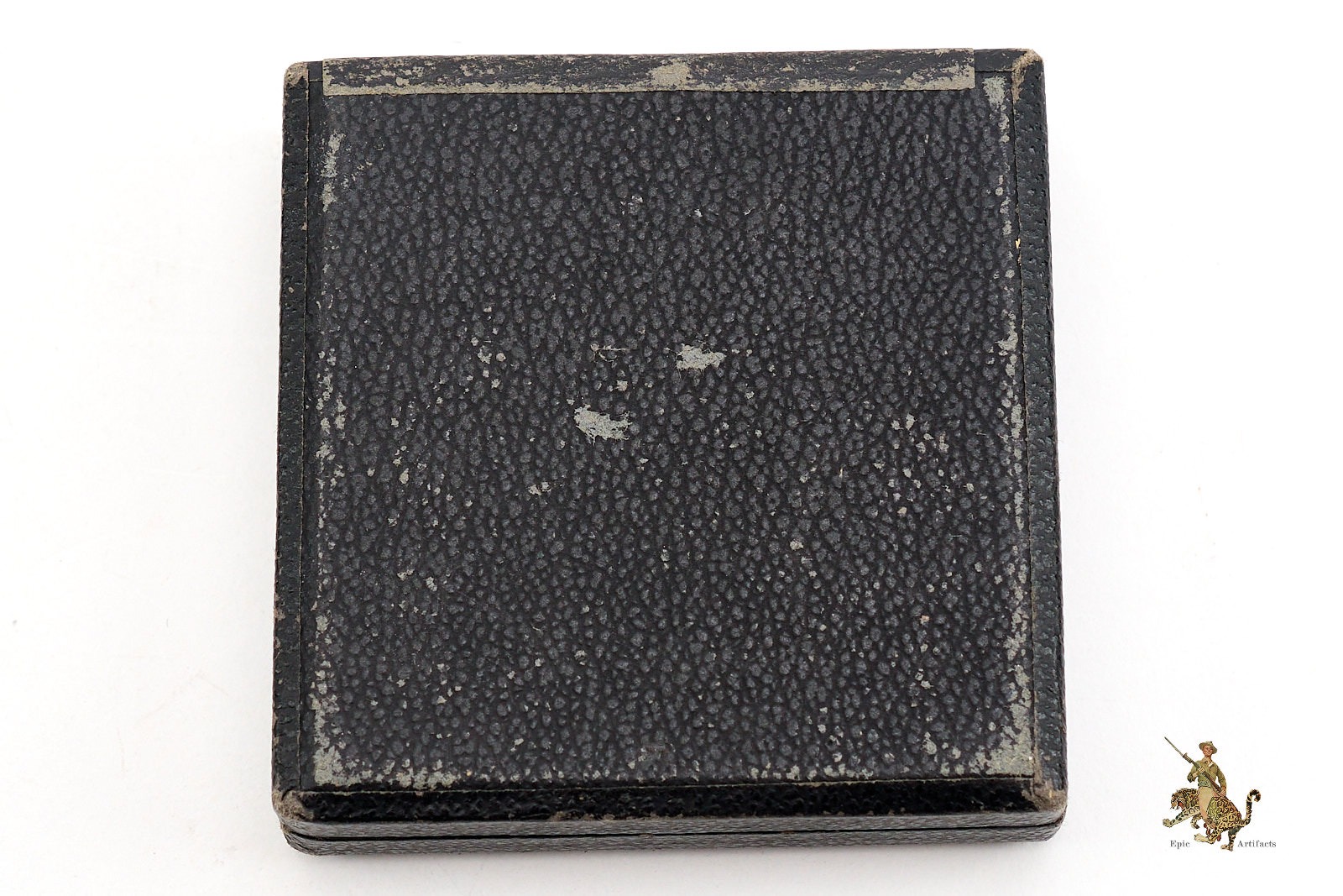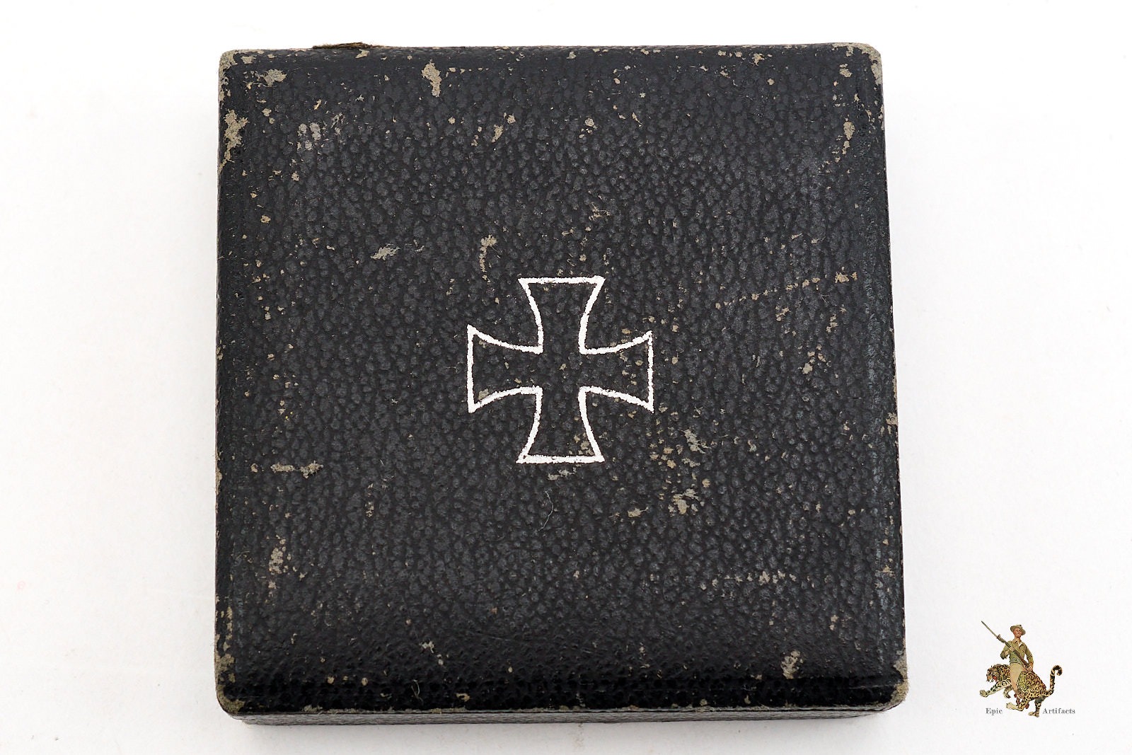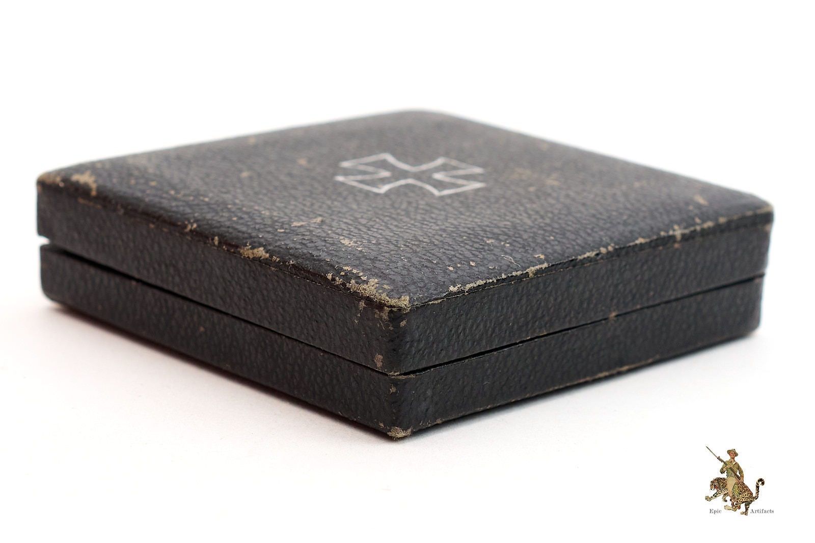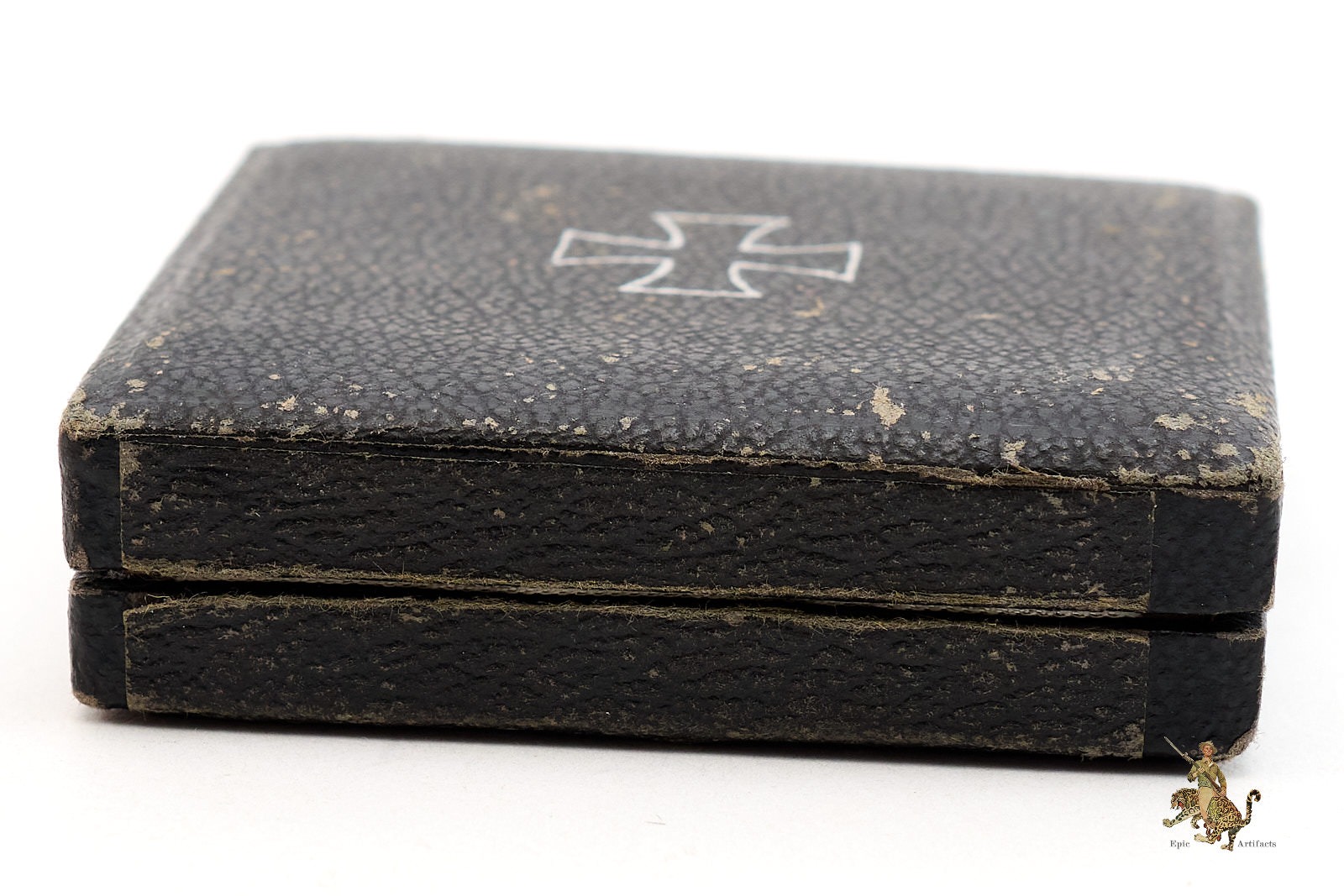 Product Description: Iron Cross 1st Class Case Paper Hinge. Mid-war case of the Iron cross first class with paper and cloth hinge. remains in lightly used condition with some normal wear to the outside, a clean inlay and separate paper hinge. Rear paper seam is split, but cloth inner still intact. Mostly used for Deumer crosses but can fit a few other types as well.