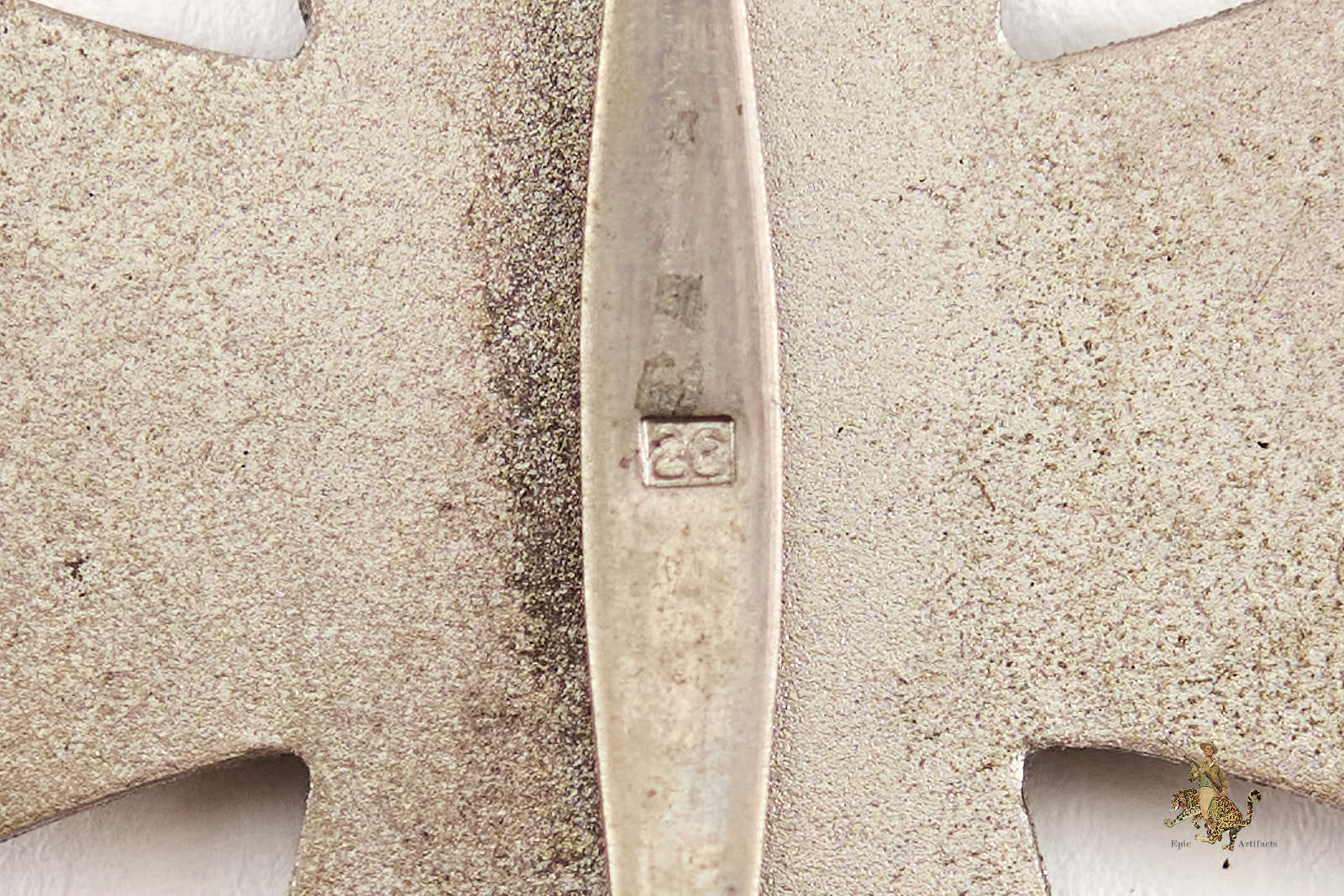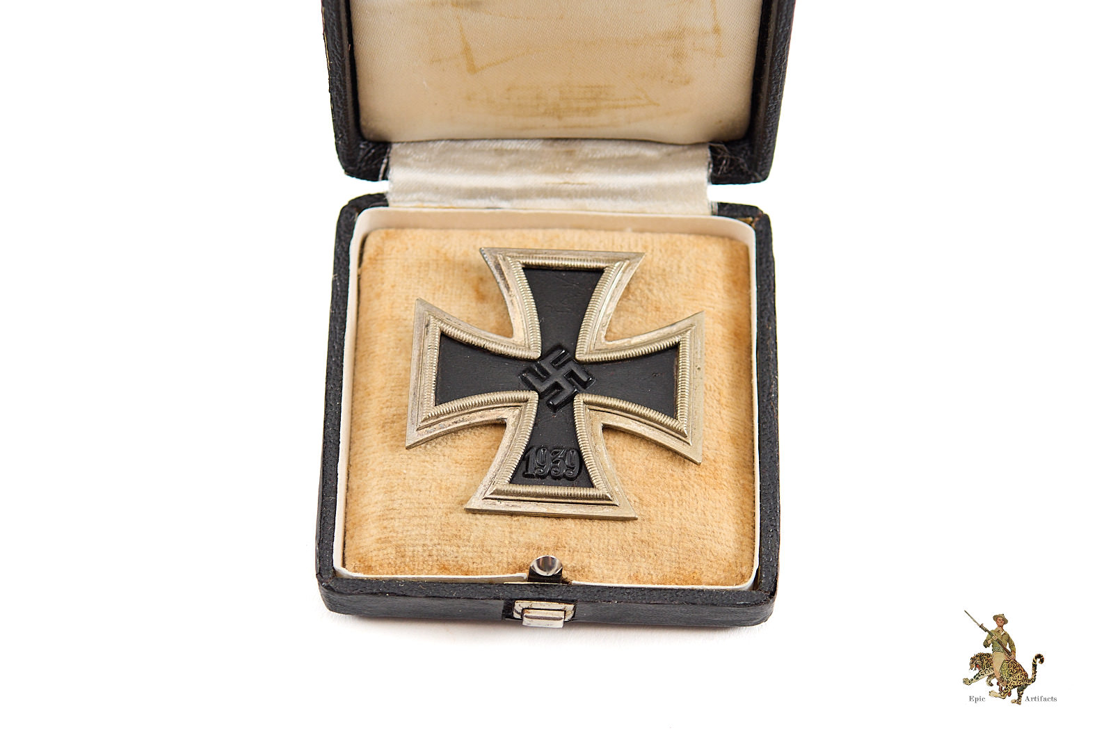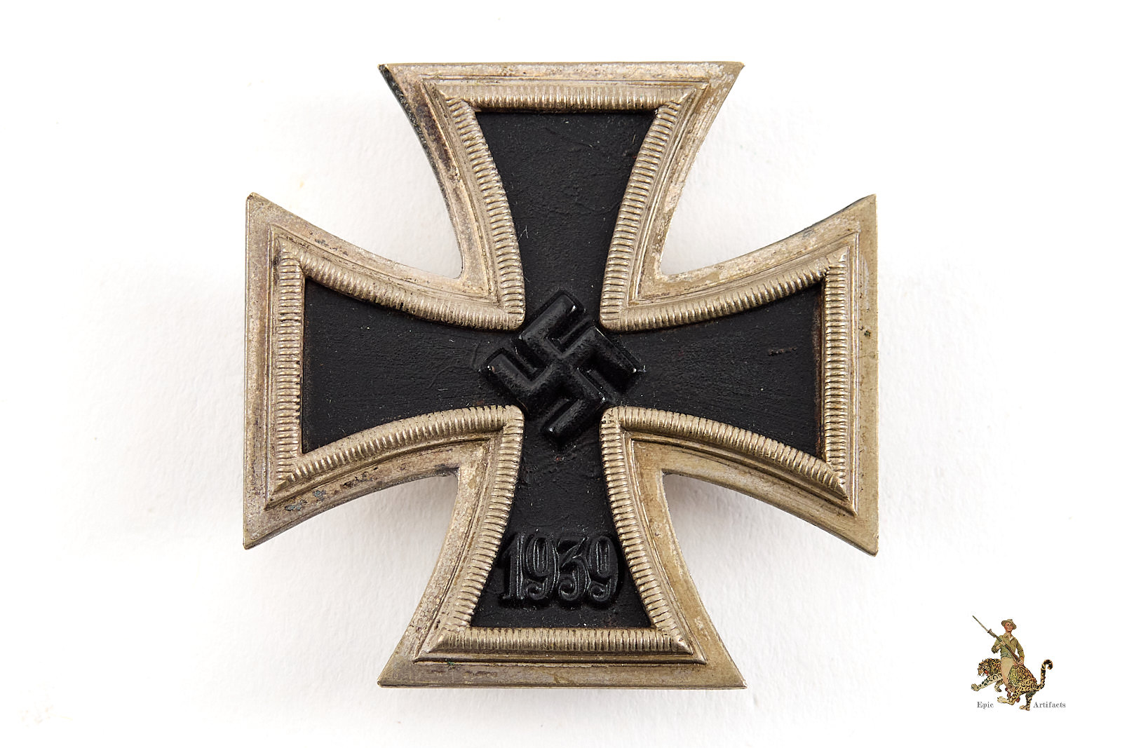 Historical Description: There is no more iconic German military award than the Iron Cross. The long history of this order began during the Napoleonic Wars. King Friedrich Wilhelm III of Prussia instituted the “Eisernes Kreuz” (Iron Cross) in March of 1813. The award criteria changed somewhat with time, but generally speaking, Iron Crosses could be awarded for individual acts of bravery, or for leadership achievements on the battlefield. The design was created by a Karl Friedrich Schinkel, his choice of the black cross with silver outline was derived from the heraldic emblem of the Teutonic Knights. There were a number of different type and grades of Iron Cross awards throughout its long history, but the basic details of the most widely awarded grades: The Iron Cross 1st Class and Iron Cross 2nd Class- remained the same. The first class award was a breast badge, with fittings on the reverse to allow it to be worn on the uniform. These fittings varied widely over time and from maker to maker, and could be a simple in and catch, a screw post and retaining disc, or more elaborate setups. The second class award was suspended from a ribbon, originally in the Prussian colors of black and white, later in the Reich colors of black, red and white. On the original versions of these crosses, in 1813, the front of the iron core of each grade was bare, and only the second class award had ornamentation: a crown over the initials “FW” representing the King, a sprig of oak leaves, and the date 1813. The core was redesigned in 1870, when the cross was re-instituted during the Franco-Prussian War. The reverse ornamentation on the Iron Cross 2nd Class remained the same, but the front of the core on both grades now bore another crown, a “W” representing Kaiser Wilhelm, and the date 1870. This pattern repeated again when the cross was reinstituted for WWI- everything stayed the same, only the date 1870 was replaced with 1914. The final reinstitution of the cross came in 1939. For this version, the front of the core for both grades bore a swastika and the date 1939. The oak leaves, crown and royal initials were removed from the reverse, with only the date 1813 remaining as a reminder of the legacy of this award. In WWII, hundreds of thousands of Iron Cross First Class awards were bestowed, and four and a half million Iron Cross Second Class awards. Iron Crosses were made by a large number of authorized manufacturers Some variants of these awards were mass produced in huge numbers. Others were made in very limited quantities.