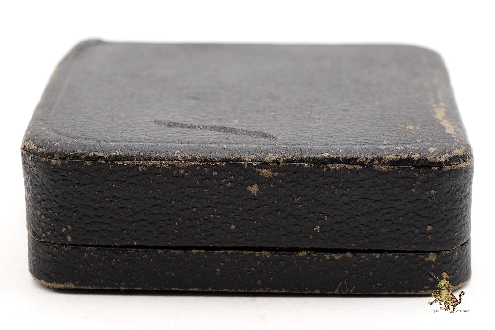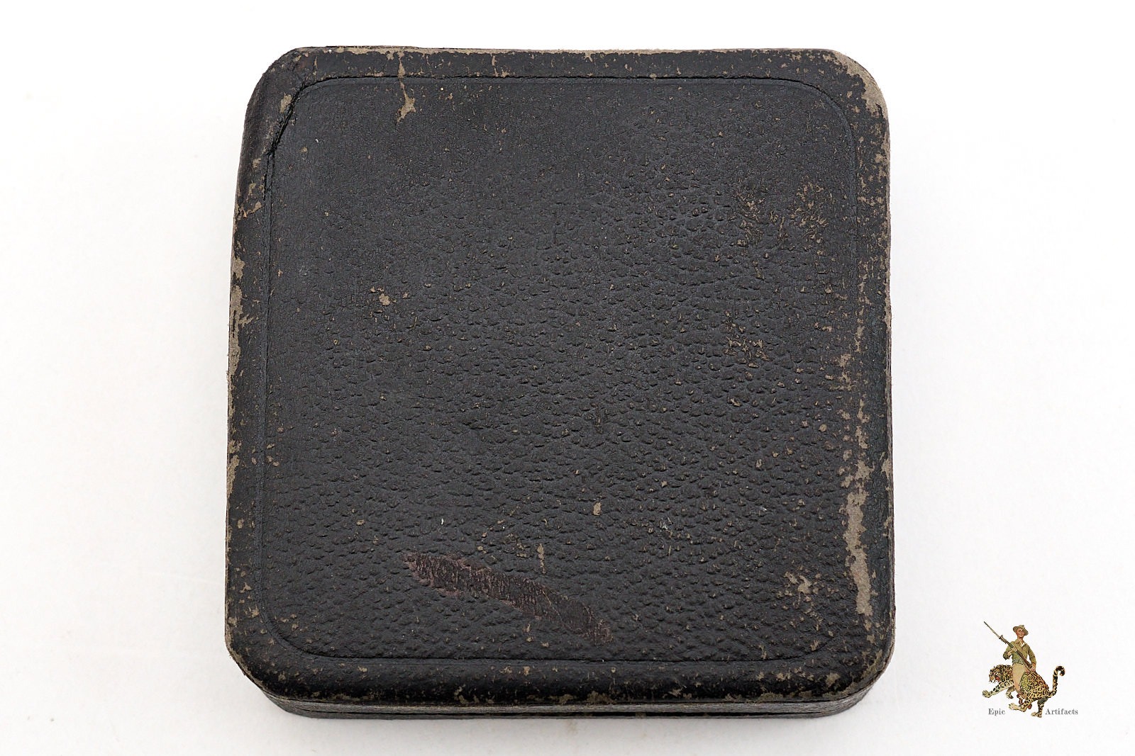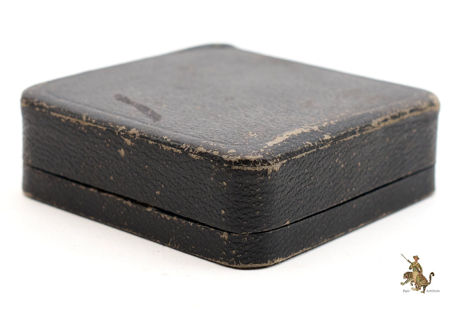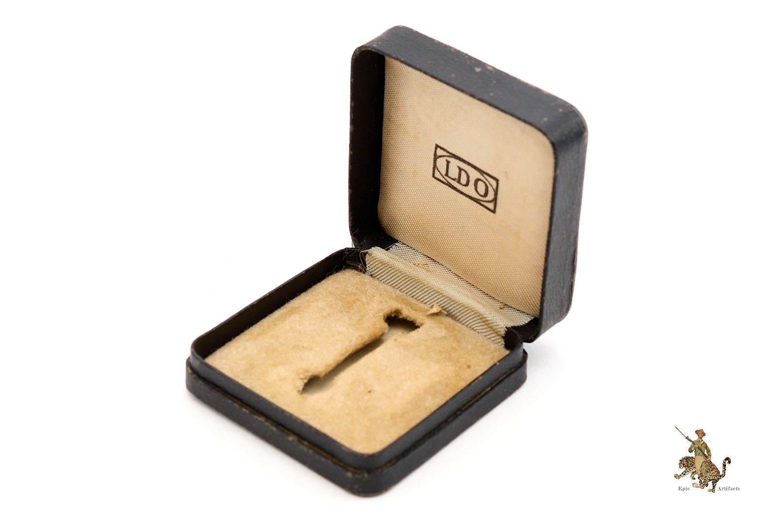 Product Description:This is a beautifully preserved Iron Cross 1st Class LDO Presentation Case, a classic and highly sought-after example of wartime award packaging. The exterior is finished in the typical black leatherette style, showing only minimal handling wear and retaining strong shape and structure. The lid opens to reveal a black print “LDO” logo set into the white satin lining, denoting that this case was issued through the Leistungsgemeinschaft der Deutschen Ordenshersteller (LDO), the official association of German medal manufacturers. The base features a plush velvet insert, perfectly contoured to cradle the Iron Cross, with no fraying and only minor wear and discoloration from age. Paper hinge and closure mechanism function smoothly, and shows minor age wear with no signs of repair. Overall, this Iron Cross 1st Class LDO Case is in excellent condition, an ideal and authentic complement to a loose LDO Iron Cross 1st Class.