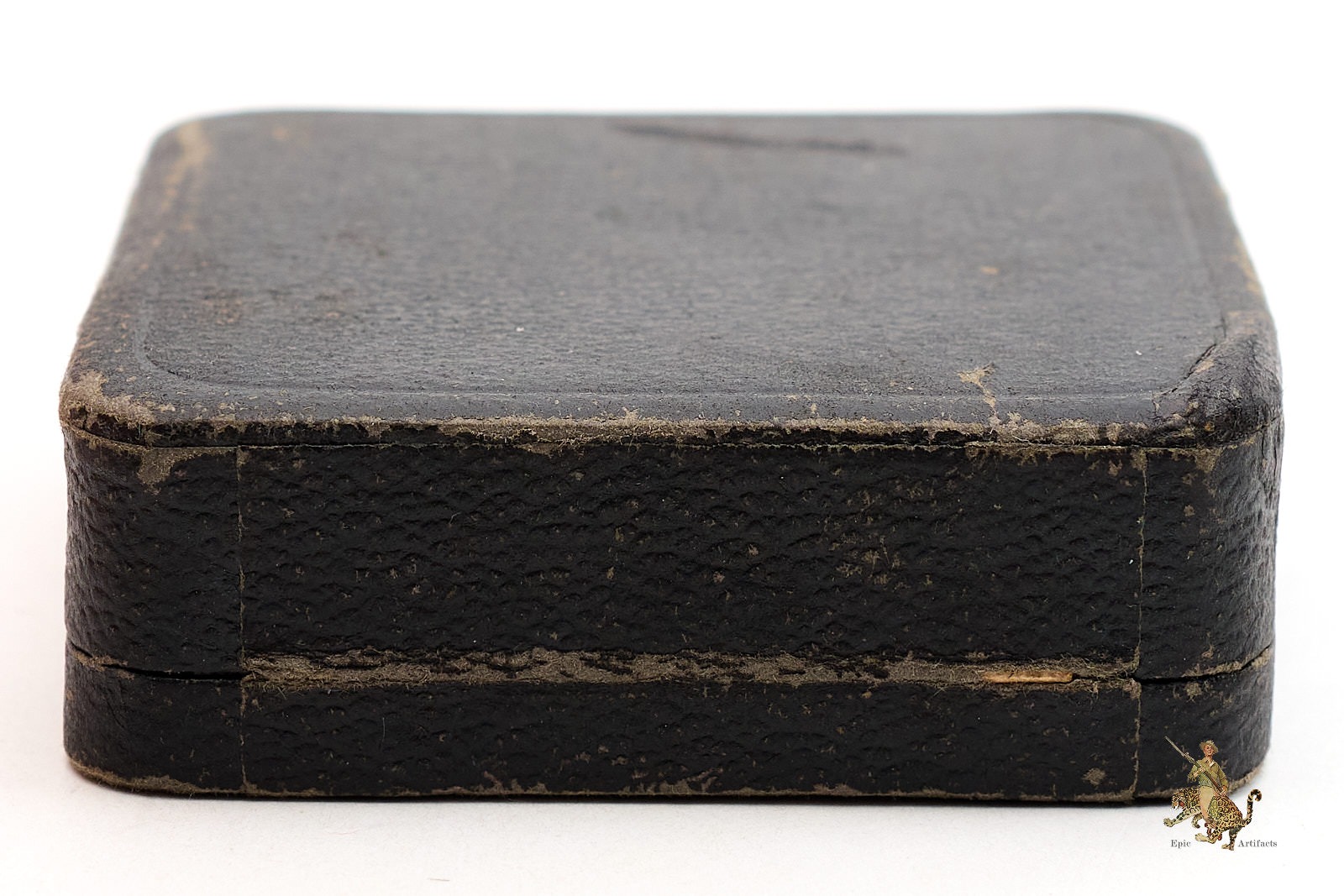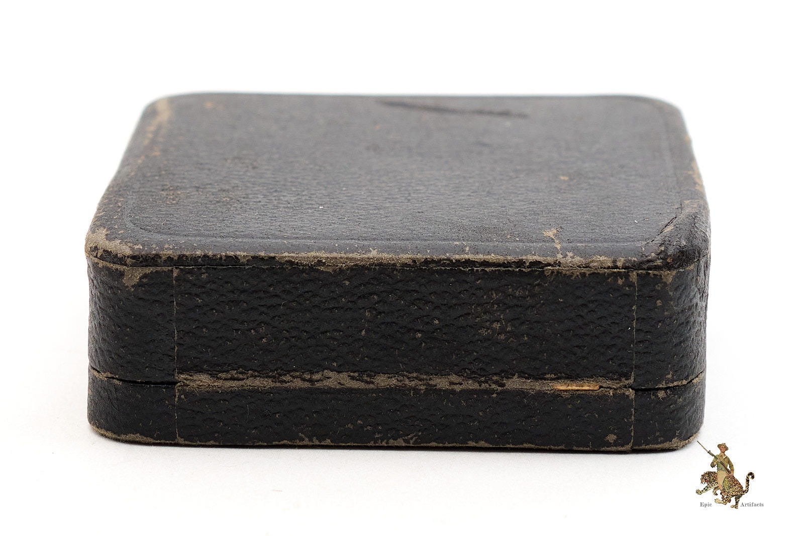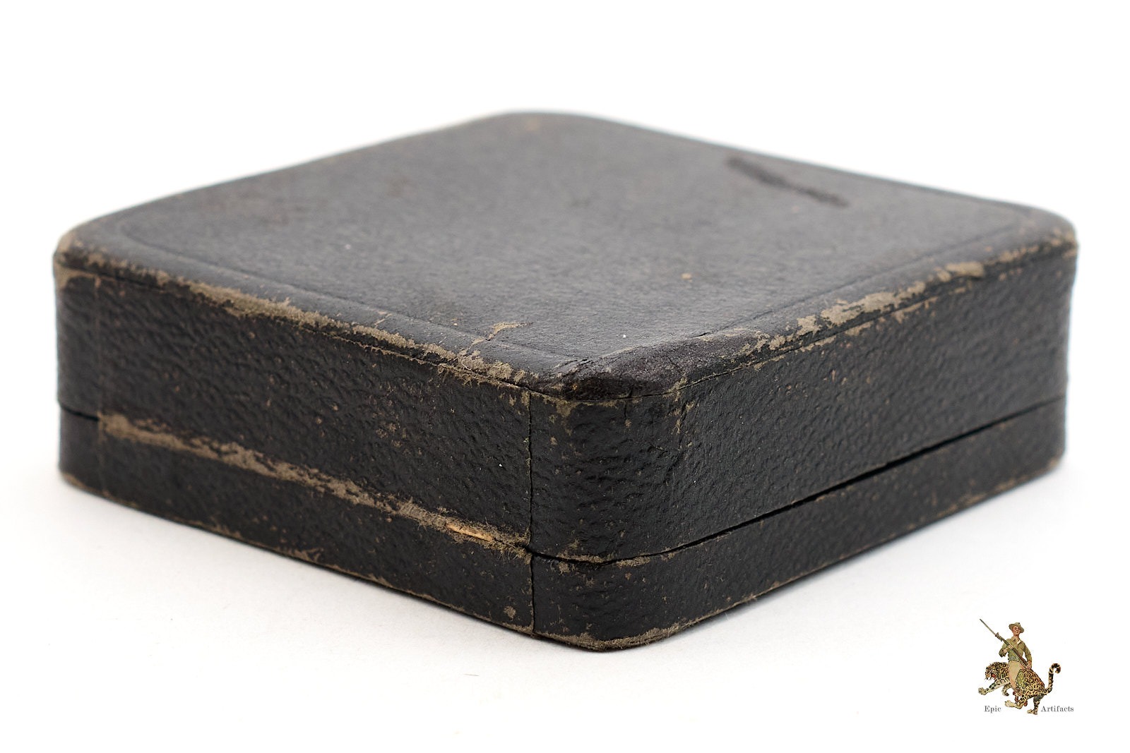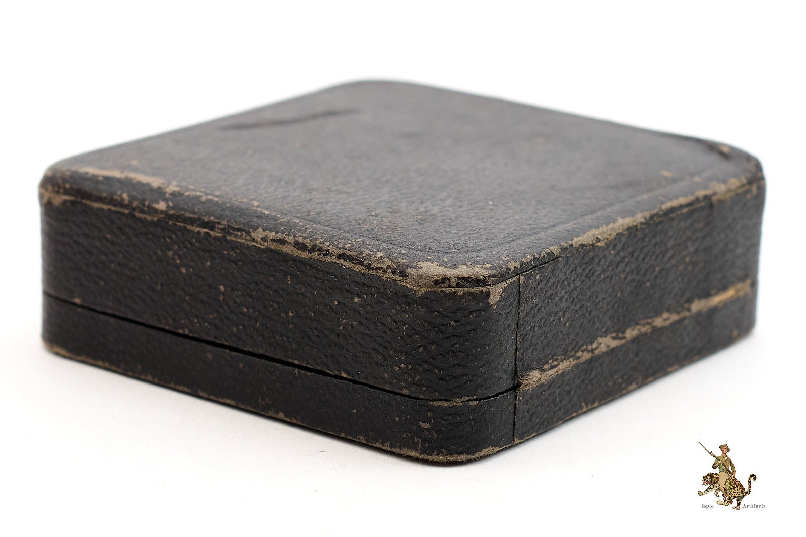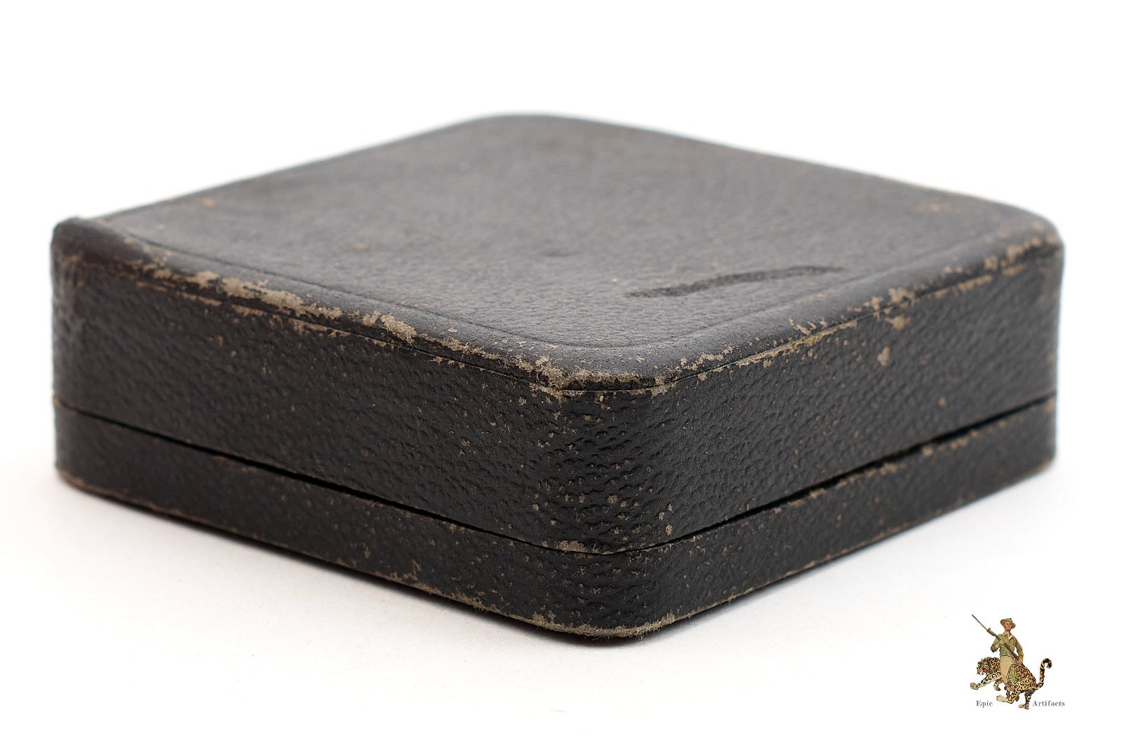 Product Description:This is a beautifully preserved Iron Cross 1st Class LDO Presentation Case, a classic and highly sought-after example of wartime award packaging. The exterior is finished in the typical black leatherette style, showing only minimal handling wear and retaining strong shape and structure. The lid opens to reveal a black print “LDO” logo set into the white satin lining, denoting that this case was issued through the Leistungsgemeinschaft der Deutschen Ordenshersteller (LDO), the official association of German medal manufacturers. The base features a plush velvet insert, perfectly contoured to cradle the Iron Cross, with no fraying and only minor wear and discoloration from age. Paper hinge and closure mechanism function smoothly, and shows minor age wear with no signs of repair. Overall, this Iron Cross 1st Class LDO Case is in excellent condition, an ideal and authentic complement to a loose LDO Iron Cross 1st Class.