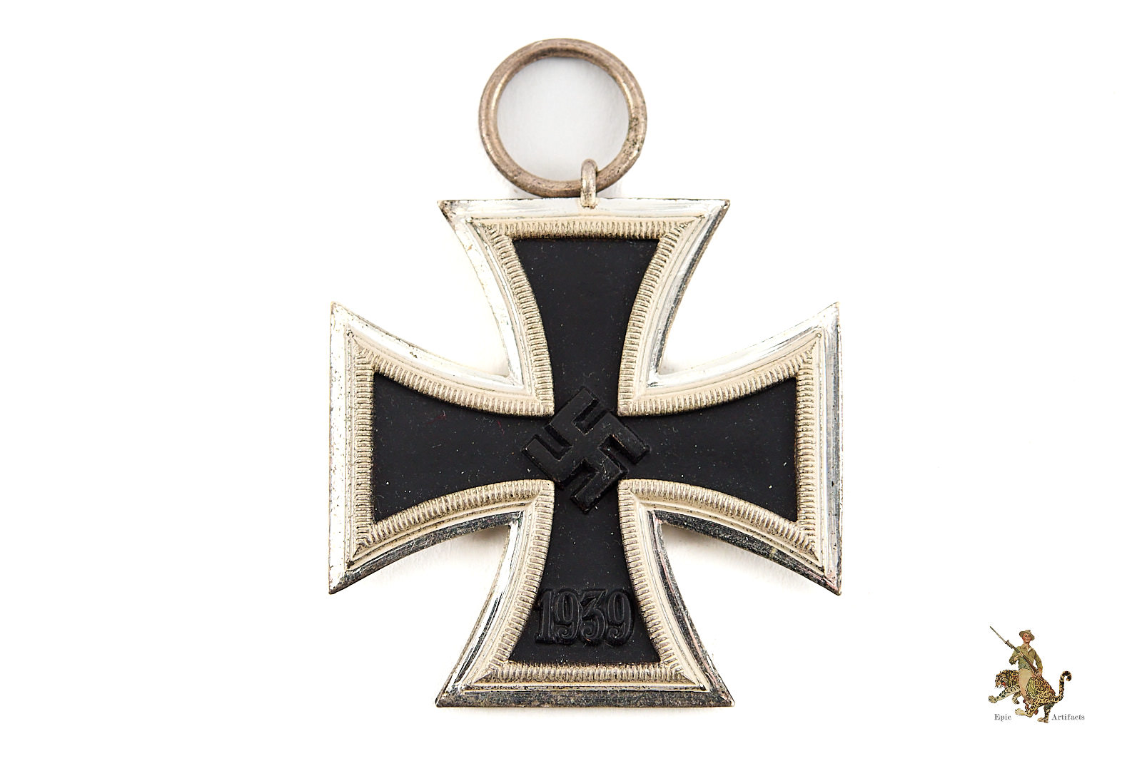 Product Description: An evocative and finely preserved example of this iconic military decoration, the 1939 Iron Cross 2nd Class is of three-piece construction, featuring a magnetic iron core housed within a silvered frame. Ring is unmarked.