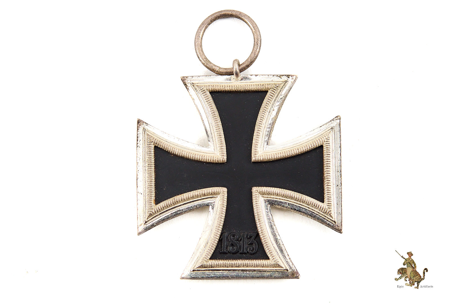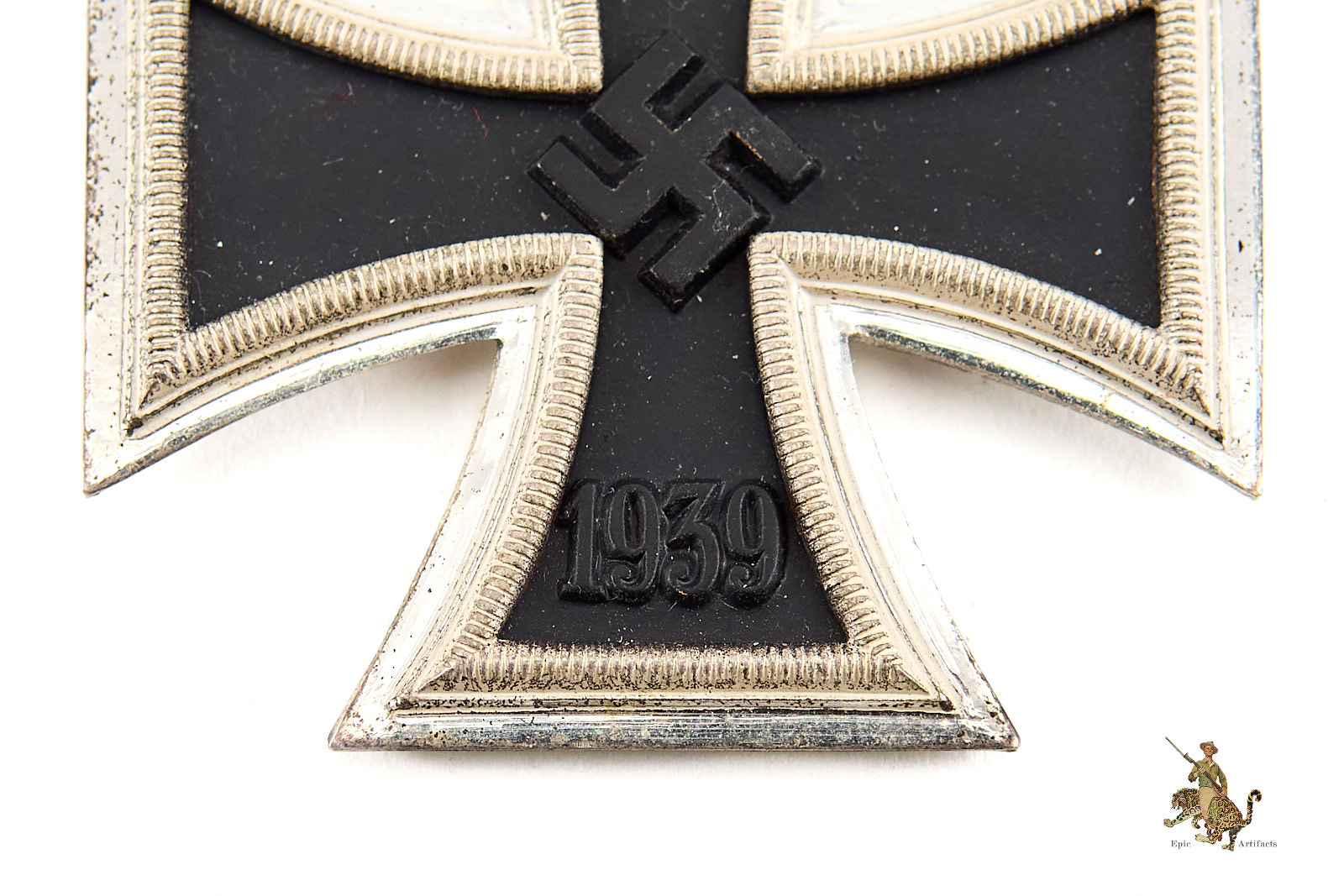 Historical Description: There is no more iconic German military award than the Iron Cross. The long history of this order began during the Napoleonic Wars. King Friedrich Wilhelm III of Prussia instituted the “Eisernes Kreuz” (Iron Cross) in March of 1813. The award criteria changed somewhat with time, but generally speaking, Iron Crosses could be awarded for individual acts of bravery, or for leadership achievements on the battlefield. The design was created by a Karl Friedrich Schinkel, his choice of the black cross with silver outline was derived from the heraldic emblem of the Teutonic Knights. There were a number of different type and grades of Iron Cross awards throughout its long history, but the basic details of the most widely awarded grades: The Iron Cross 1st Class and Iron Cross 2nd Class- remained the same. The first-class award was a breast badge, with fittings on the reverse to allow it to be worn on the uniform. These fittings varied widely over time and from maker to maker, and could be a simple in and catch, a screw post and retaining disc, or more elaborate setups. The second-class award was suspended from a ribbon, originally in the Prussian colors of black and white, later in the Reich colors of black, red and white. On the original versions of these crosses, in 1813, the front of the iron core of each grade was bare, and only the second-class award had ornamentation: a crown over the initials “FW” representing the King, a sprig of oak leaves, and the date 1813. The core was redesigned in 1870, when the cross was re-instituted during the Franco-Prussian War. The reverse ornamentation on the Iron Cross 2nd Class remained the same, but the front of the core on both grades now bore another crown, a “W” representing Kaiser Wilhelm, and the date 1870. This pattern repeated again when the cross was reinstituted for WWI- everything stayed the same, only the date 1870 was replaced with 1914. The final reinstitution of the cross came in 1939. For this version, the front of the core for both grades bore a swastika and the date 1939. The oak leaves, crown and royal initials were removed from the reverse, with only the date 1813 remaining as a reminder of the legacy of this award. In WWII, hundreds of thousands of Iron Cross First Class awards were bestowed, and four and a half million Iron Cross Second Class awards. Iron Crosses were made by a large number of authorized manufacturers Some variants of these awards were mass produced in huge numbers. Others were made in very limited quantities.