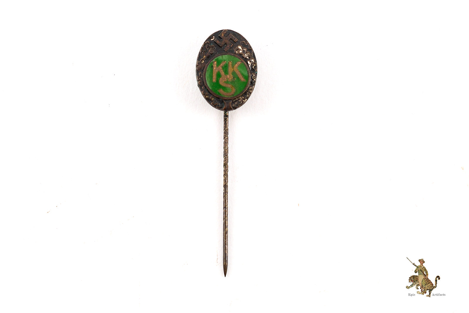 Historical Description:In Germany, during and between the World Wars, stickpins were generally made for wear on civilian clothing, by either men or women. Whereas most civil and military awards intended for uniform wear were in the form of medals or pin-on badges, the simple stickpins were mostly for adorning lapels of suits. A huge variety of these stickpins were produced. There were pins that anyone could buy, that were patriotic or showed support for some specific cause. There were also various membership pins for military, paramilitary, civil and political organizations. Military and civil awards were also produced in stickpin versions. These took the form of miniature versions of the awards, and could either show one individual award, or all the awards that one individual had received. In many cases, German stickpins were made with the same standard of quality as the full-size medals and badges.