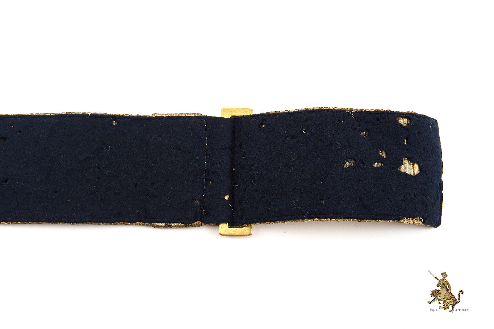 The interior wool backing shows evident moth damage throughout, noted for accuracy, though this does not detract from the belt’s strong visual appeal when displayed. Both original loops for attaching hangers remain intact and securely affixed. Overall, an appealing and display-worthy Kriegsmarine Line Officer Brocade Belt, particularly well suited for presentation on a mannequin or within a naval uniform grouping.