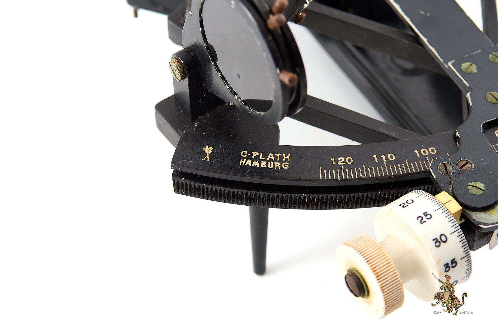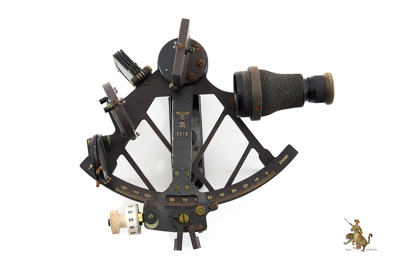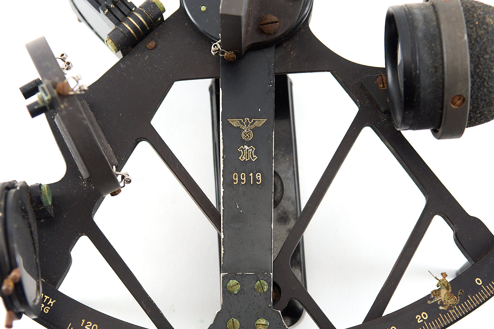 Historical Description: During the Second World War, the German Kriegsmarine relied heavily on precise navigational instruments to conduct operations across the Atlantic, Baltic, and North Seas, particularly for U-boat deployments and surface fleet movements. Sextants, chronometers, compasses, and alidades were essential tools for determining position, course, and distance under conditions where electronic navigation aids were limited or unavailable. Crafted by renowned manufacturers such as C. Plath of Hamburg, these instruments combined mechanical precision with durable materials, ensuring reliability in harsh maritime environments. Sextants in particular allowed officers to perform celestial navigation, a critical skill for maintaining operational security while avoiding detection by Allied forces.